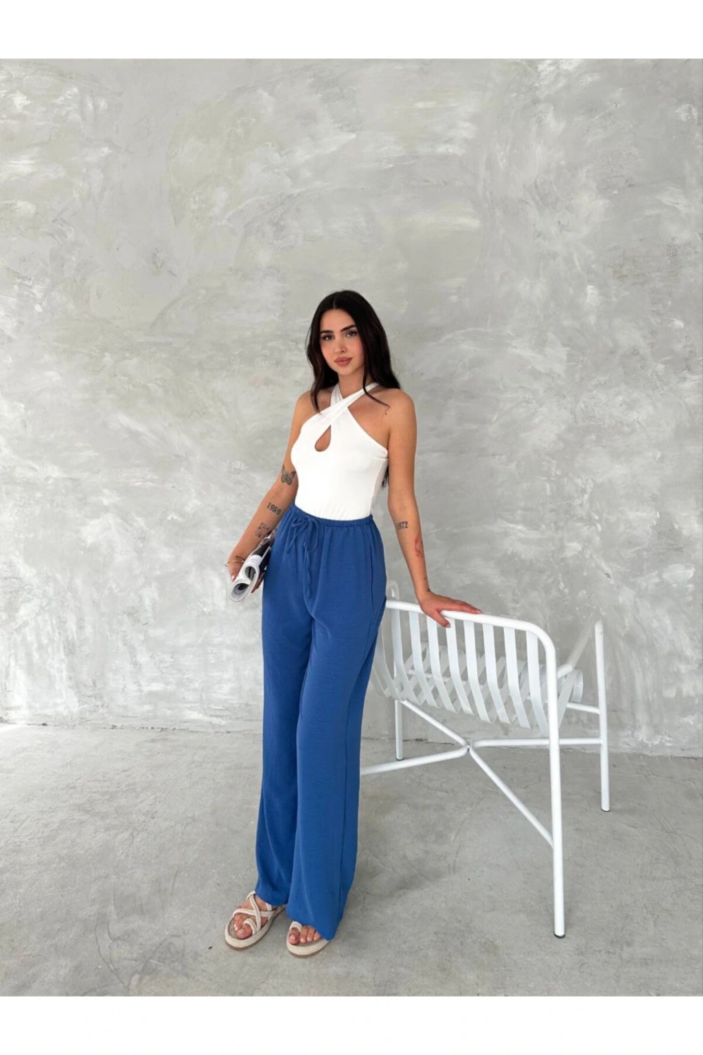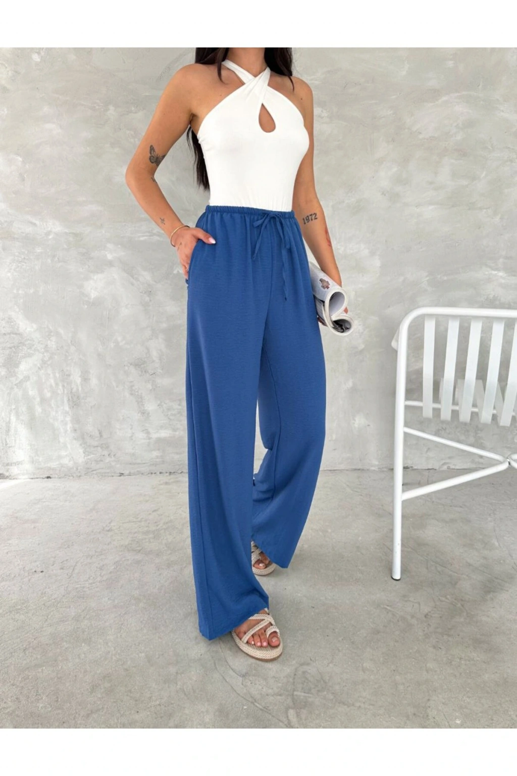 - Rahatlık ve şıklığı bir arada sunan beli lastikli geniş paça pantolon, günlük kullanım için idealdir.; - Her mevsim tercih edilebilen orta kalınlıkta kumaşı ile dört mevsim konfor sağlar.; - Pratik çift cepli tasarımı sayesinde küçük eşyalarınızı yanınızda taşımanız kolaylaşır.; - Baskısız ve sade görünümüyle her türlü üst giyimle uyumlu bir kombin oluşturur.; - Bağcıklı kemer detayı ile belinizi istediğiniz gibi ayarlayabilirsiniz; böylece kişisel tarzınıza göre şekillendirebilirsiniz.; - Aerobin dokuma tipi hafifliği ve nefes alabilir yapısıyla gün boyu rahat etmenizi sağlar.; - Basic koleksiyonun parçası olarak minimalist tasarım anlayışını benimserken, cool & comfort persona ile modern bir stil sunar.; - Yüksek bel kesimi sayesinde vücut hatlarınıza zarifçe oturarak feminen bir siluet çizer.; - Yetişkinler için özel olarak tasarlanmış bu pantolon, hem işlevsellik hem de estetik açıdan beklentilerinizi karşılar.; - Kadın ve kız kullanıcılarına hitap eden bu model, casual ortamlarda rahatlıkla tercih edilebilir.; - Türkiye menşeli olmasıyla yerel üretim avantajlarından faydalanırken, dokuma materyali dayanıklılığı arttırır.; - Regular kalıp ile vücudu saran ancak sıkmayan yapıda olup hareket özgürlüğünüzü kısıtlamaz.; - Düz deseniyle zamansız parçalar arasında yerini alarak gardrobunuzda vazgeçilmez bir parça haline gelir.; - Geniş paça tasarımı modern trendleri yansıtırken aynı zamanda konforlu adımlar atmanız için geniş alan sunar.