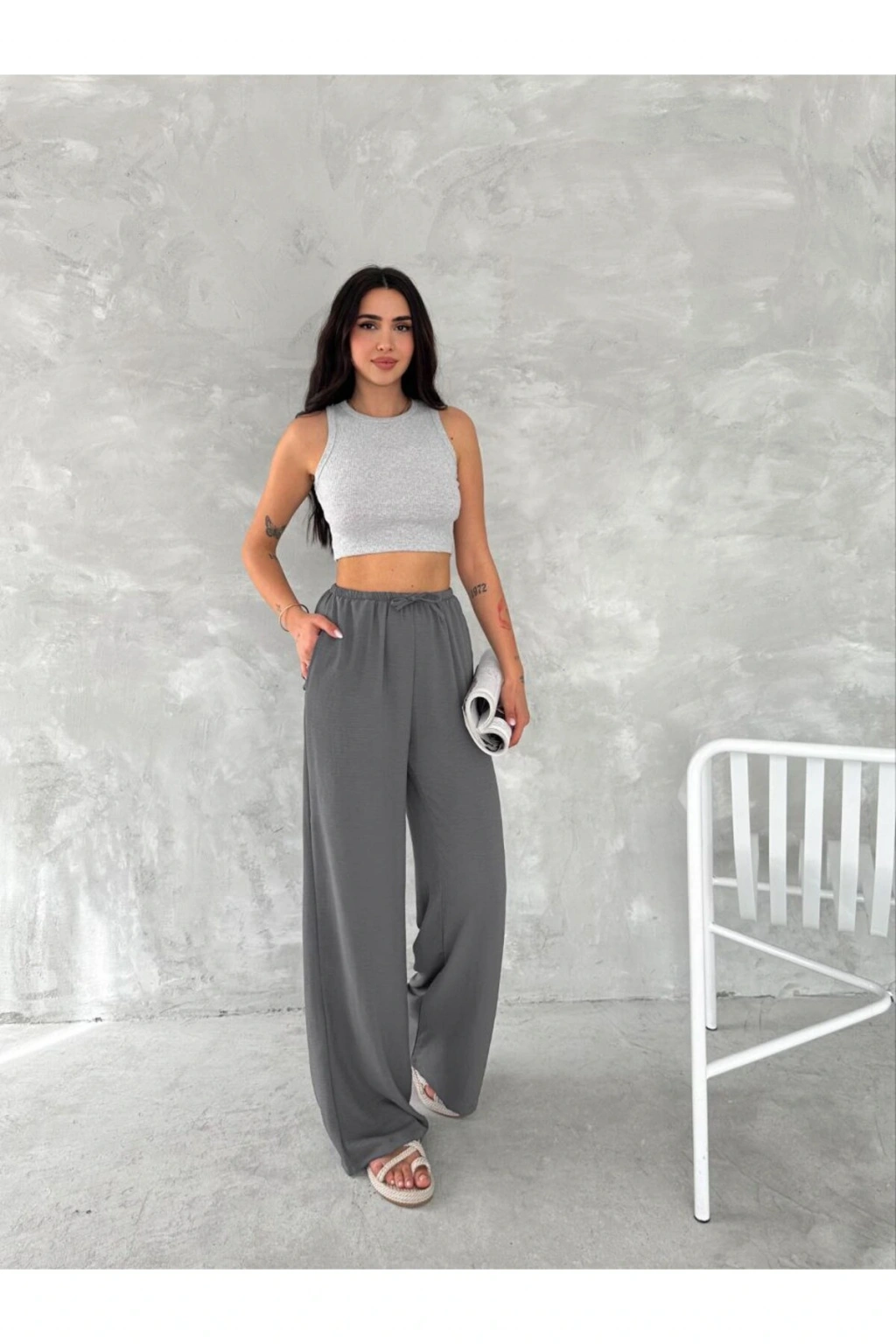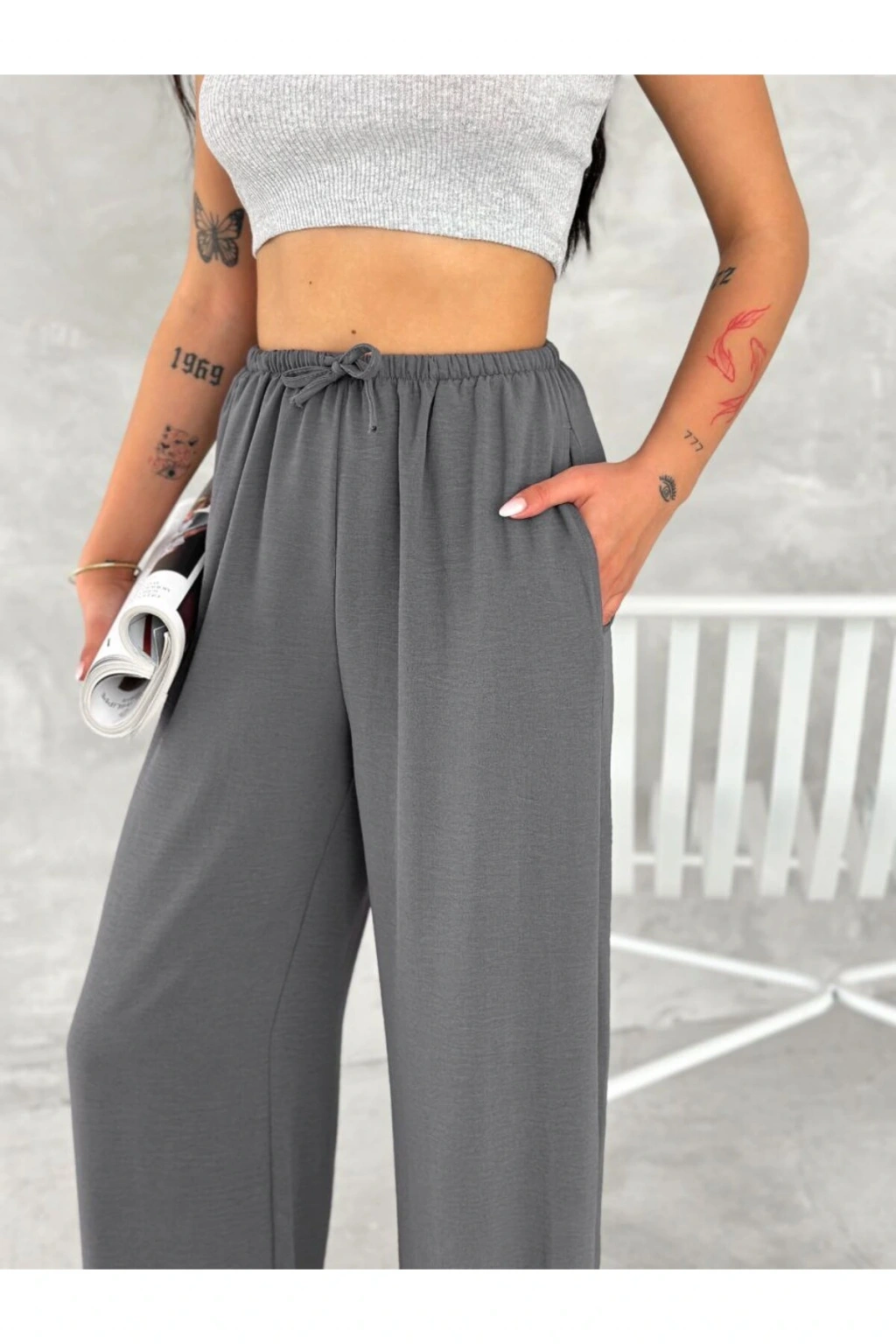 Beli Lastikli Geniş Paça Kumaş Pantolon