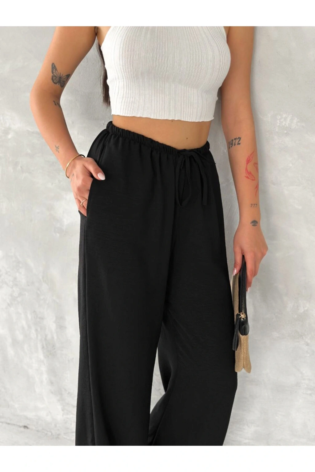 Beli Lastikli Geniş Paça Kumaş Pantolon