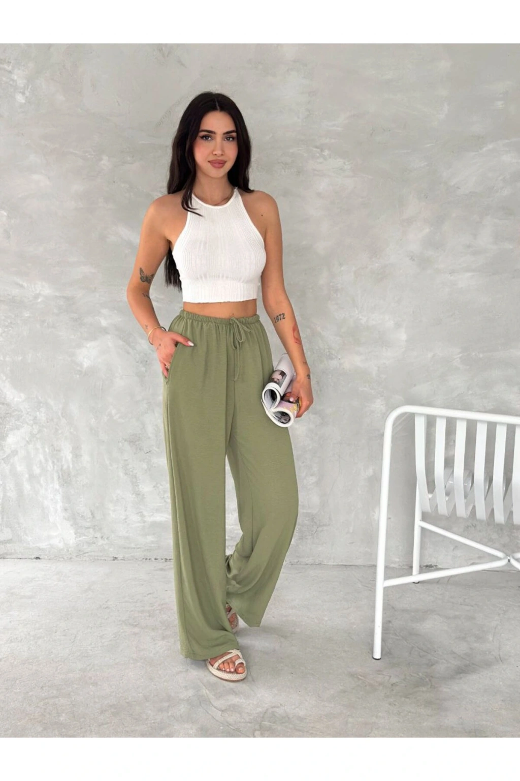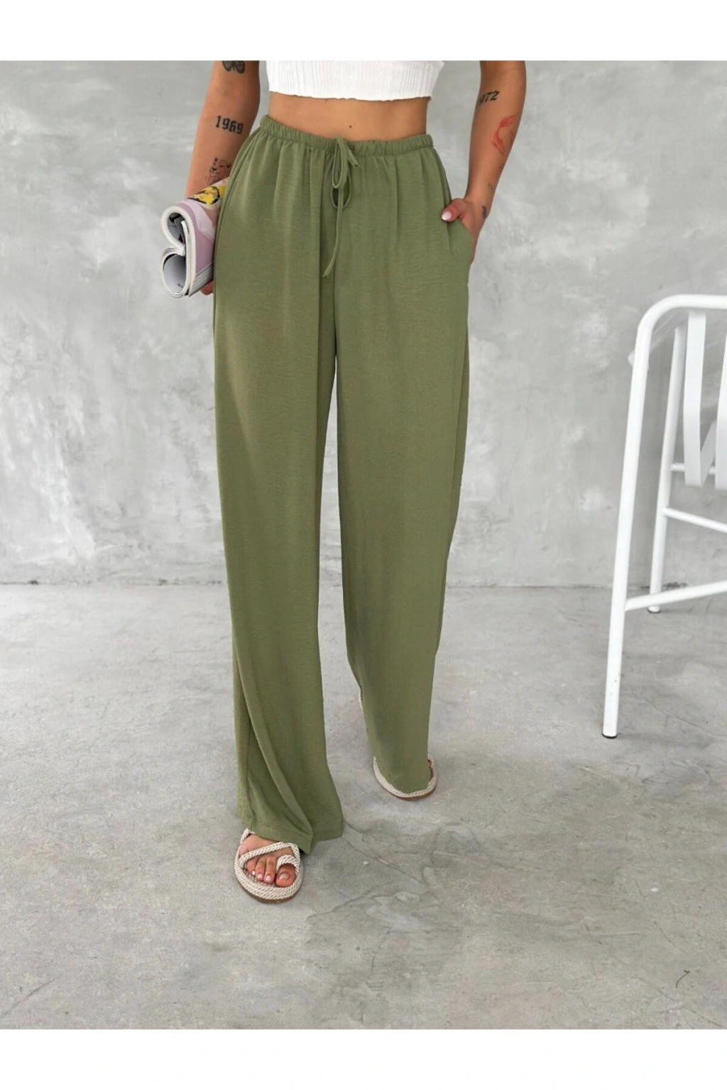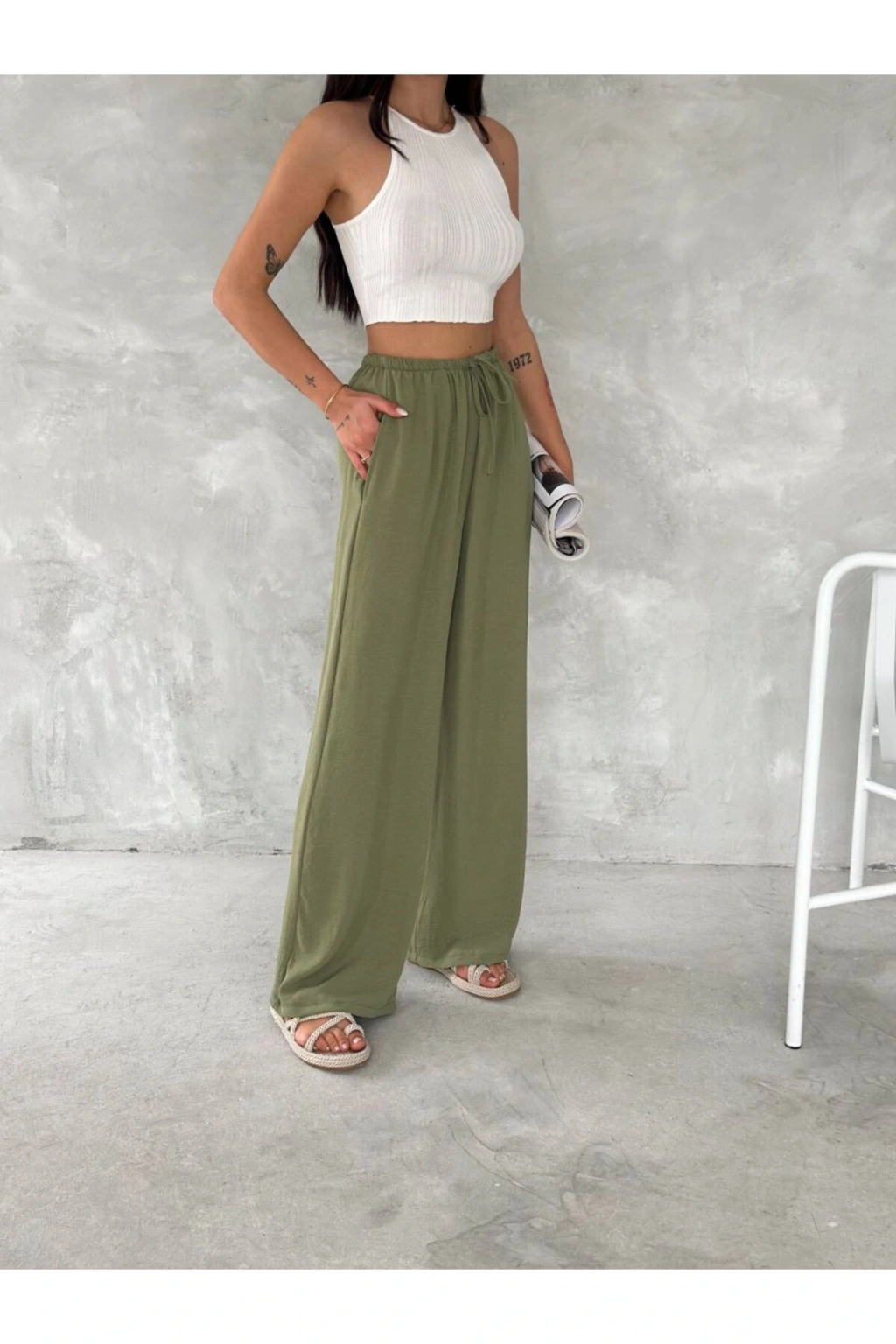 Beli Lastikli Geniş Paça Kumaş Pantolon
