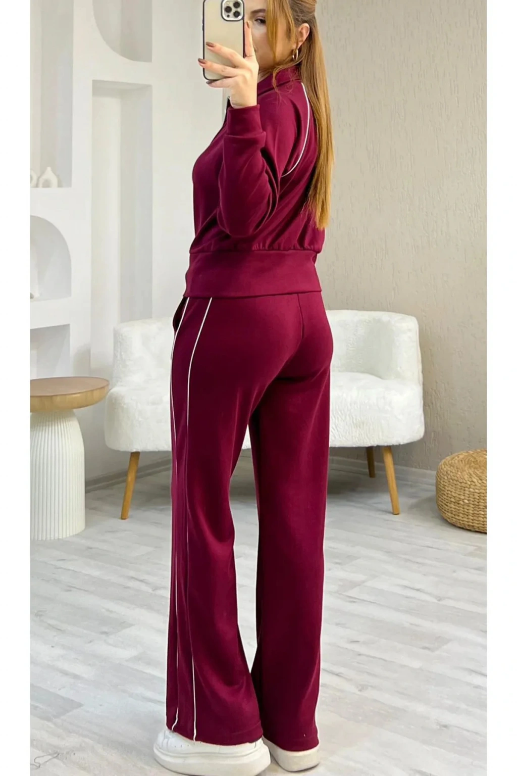 Bordo Modal Kumaş Şeritli Eşofman Takımı