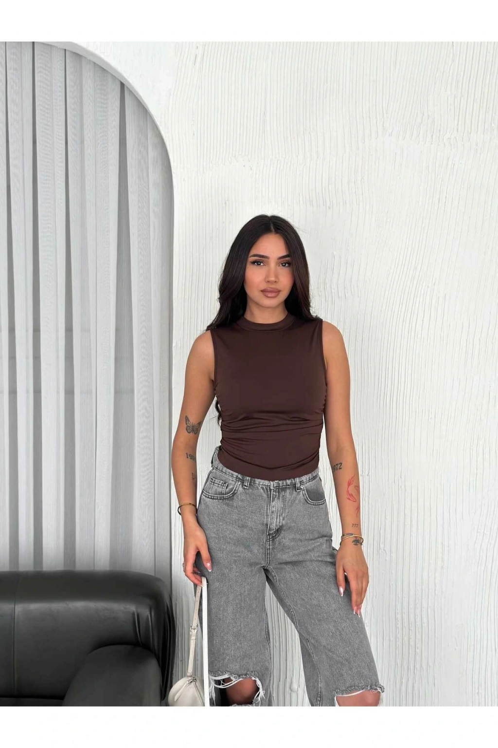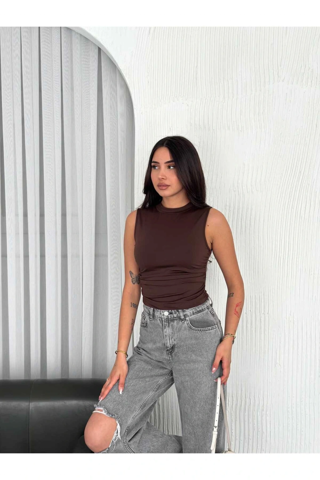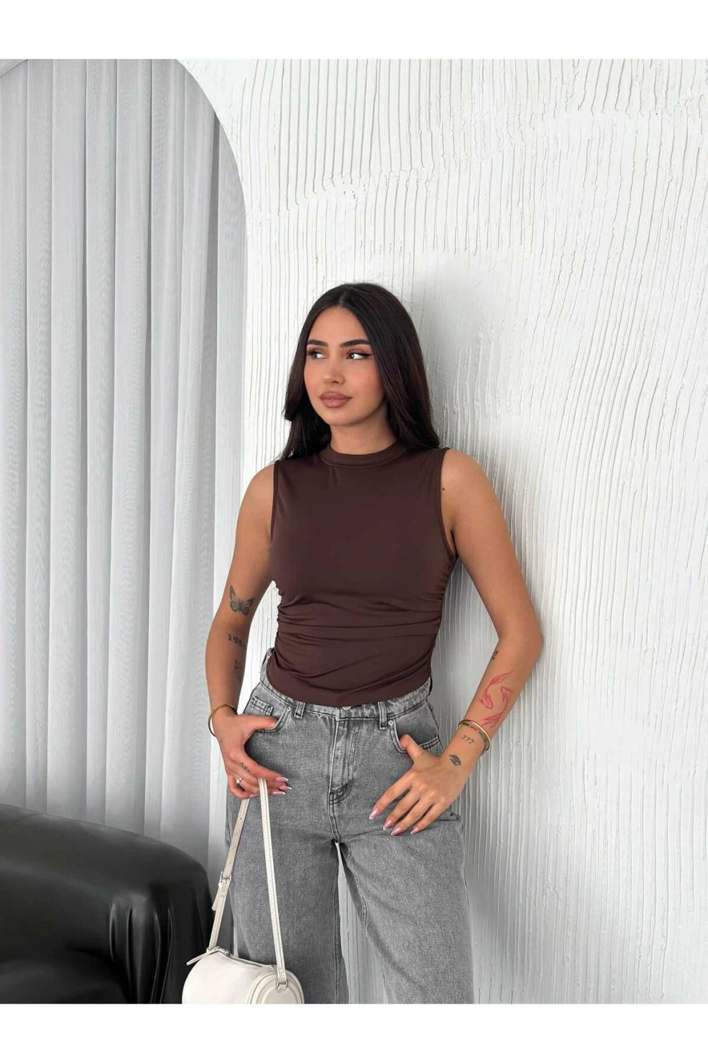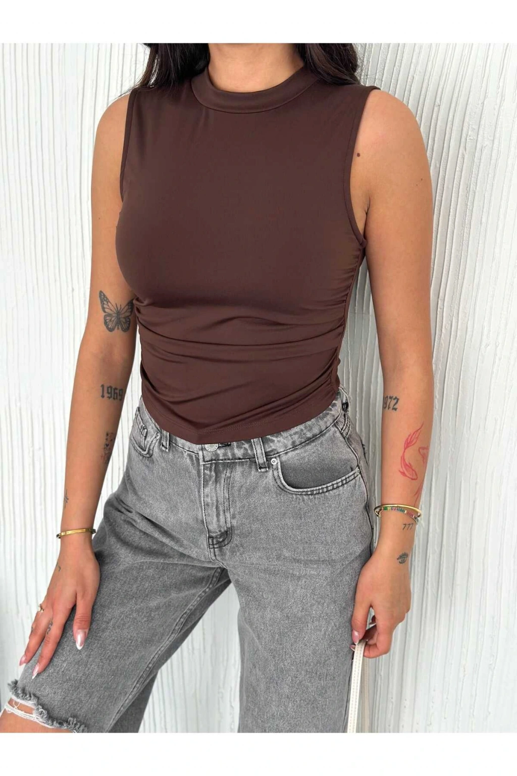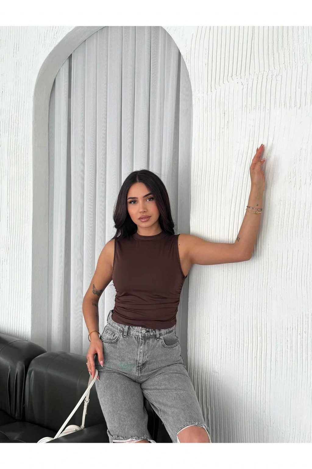 - Her mevsim rahatlıkla tercih edilebilen, zamansız tasarımıyla dikkat çeken büzgü detaylı kolsuz bluz.; - Cepsiz yapısı ile minimalist bir görünüm sunar ve günlük kullanım için idealdir.; - Baskısız tasarım sayesinde sade ve şık bir stil oluştururken, her türlü kombinle uyum sağlar.; - Orta kalınlığındaki kumaşı mevsim geçişlerinde konforlu bir deneyim vaat eder.; - Mono kapama özelliğiyle pratik kullanım sunarken, kolayca giyilip çıkarılabilir.; - Sürdürülebilirlik detayına önem vermeyen bu bluz, çevreye duyarlı tüketicilere hitap etmez.; - Büzgü detayları sayesinde vücut hatlarını zarifçe sararak feminen bir siluet çizer.; - Astarsız yapısıyla hafif ve ferah bir his bırakırken iç göstermez; böylece özgürce hareket etme imkanı tanır.; - Cool & comfort persona'sına sahip olan bu bluz, hem gündüz hem de gece ortamları için uygundur.; - Basic koleksiyonun sadeliğini yansıtan düz deseniyle gardrobunuzda temel parça olarak yerini alır.; - Tekli paketiyle ihtiyacınız olan tek şey bu bluz olacak şekilde tasarlanmıştır; ekstra eşya taşıma derdi olmadan konforun keyfini çıkartabilirsiniz.; - Türkiye'de üretilmiş olmasıyla yerel üretim avantajlarından faydalanırken kalite standartlarına uygunluğu garanti altına alınır.; - Örme kumaşı sayesinde esneklik kazandırarak gün boyu rahat etmenizi sağlar; likra materyali ise formunu korumasına yardımcı olur.; - Bisiklet yakası modern çizgileriyle güncel moda akımlarıyla uyum içinde duruş sergiler.; - Kolsuz tasarım kolay kombinlenebilirlik sunarken, modal dokuma tipi yumuşak dokusuyla teninize nazikçe dokunur.; - Yetişkinlerin günlük ihtiyaçlarına yönelik olarak tasarlanmıştır; her yaştan kadınların gardrobunda temel taşlarından biri haline gelmeye adaydır.; - Normal boy kesimiyle farklı vücut tiplerine uyum sağlayarak herkes tarafından rahatlıkla tercih edilebilir.; - Slim kalıp ile modern ve şık görünümün yanında vücut hatlarınıza mükemmel oturan yapıda üretilmiştir.
