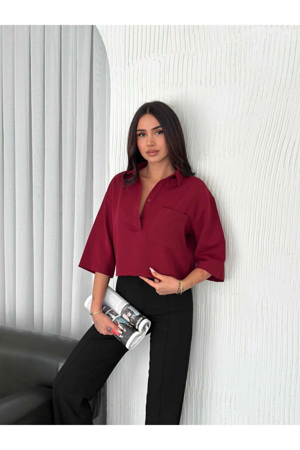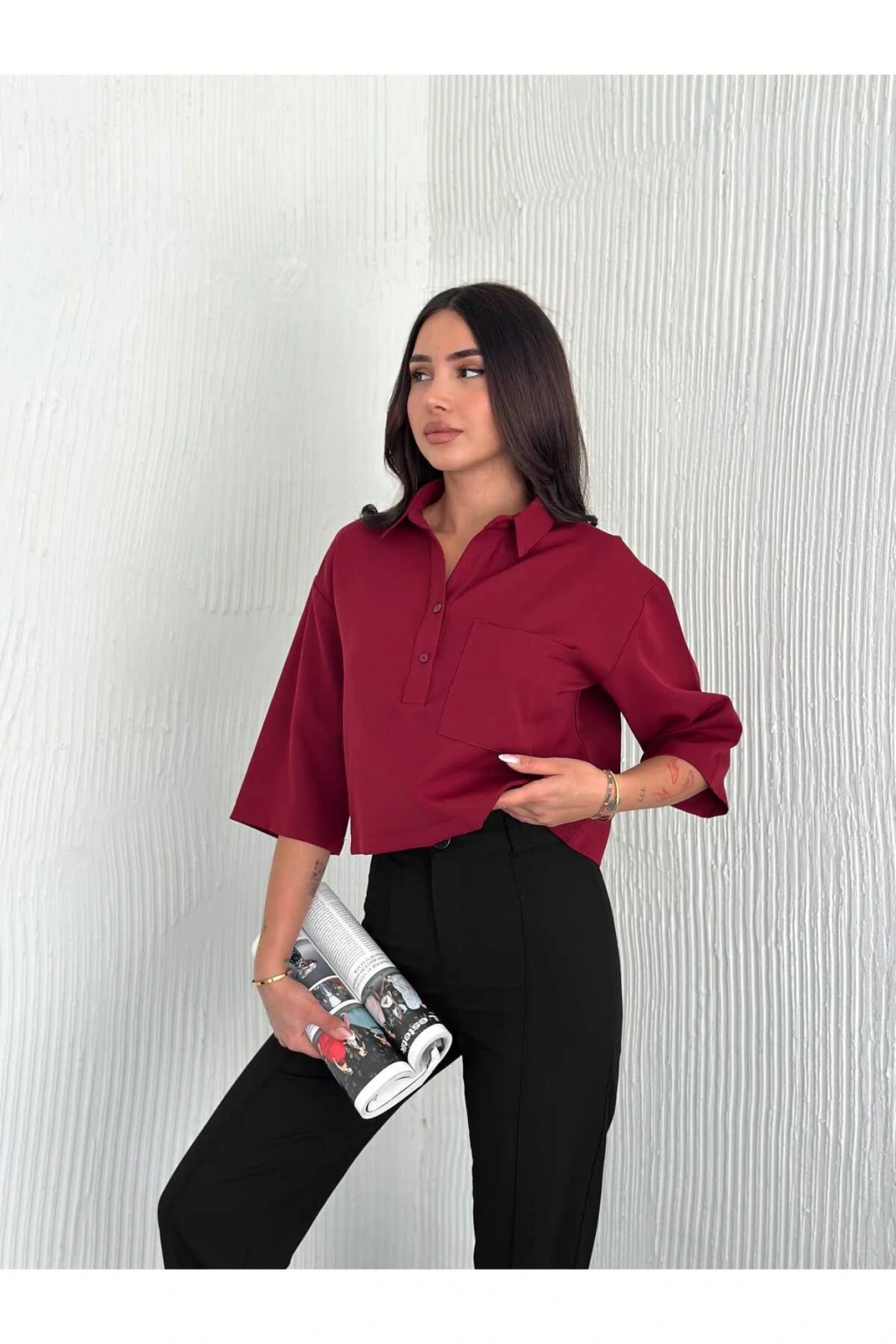 - Rahat ve şık bir görünüm sunan crop gömlek, günlük kullanım için idealdir.; - Yarım pat düğme kapama detayı ile pratik kullanım sağlar.; - Sade ve düz tasarımıyla her türlü kombinle uyum içindedir.; - Düğmeli yapısı sayesinde kolayca giyilip çıkarılabilir.; - Her mevsim tercih edilebilen çok yönlülükteki tasarım, gardırobunuzun vazgeçilmez parçası olacak.; - Tekli paket içeriğiyle ihtiyacınız olan tek ürünü elde etmenizi sağlar.; - Yetişkinler için tasarlanmış bu ürün, casual tarzınıza modern bir dokunuş ekler.; - Türkiye'de üretilmiş olmasıyla yerel üretim avantajından faydalanmanızı sağlar.; - Kısa kollu ve gömlek yakası ile yaz ayları için serin tutarken, kış aylarında da katmanlı giyimde rahatlık sunar.; - Casual ortamlarda konforlu ve stil sahibi görünmenize yardımcı olur.; - Kısa kol boyu sayesinde hareket özgürlüğü tanırken, düz deseniyle zamansız bir şıklık vaat eder.