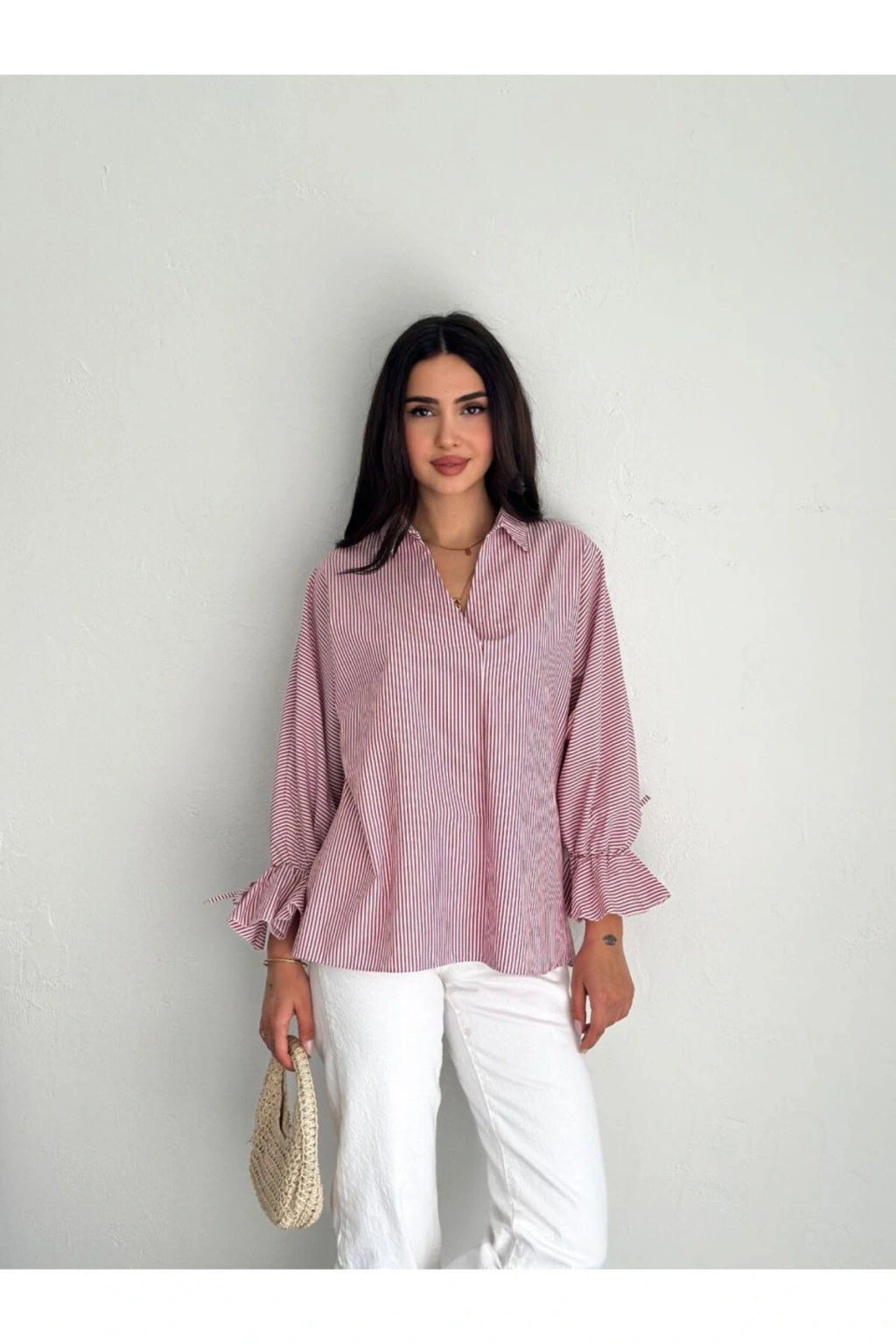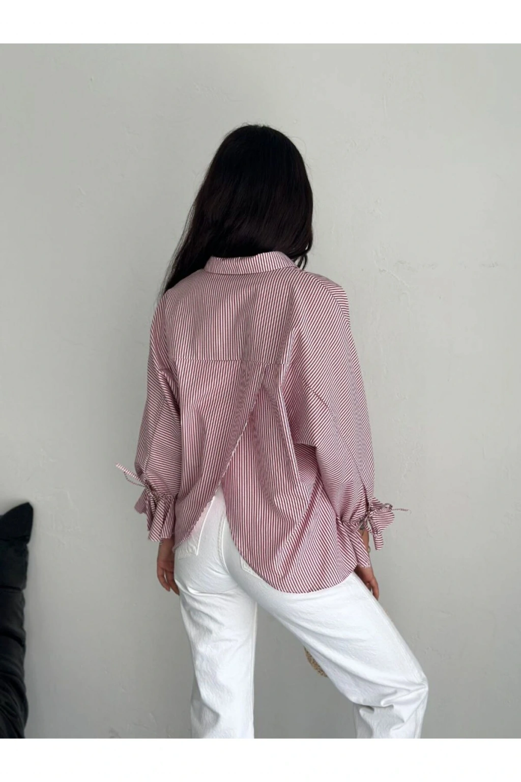 Çizgi Desenli Kolu Bağlamalı Bluz Gömlek