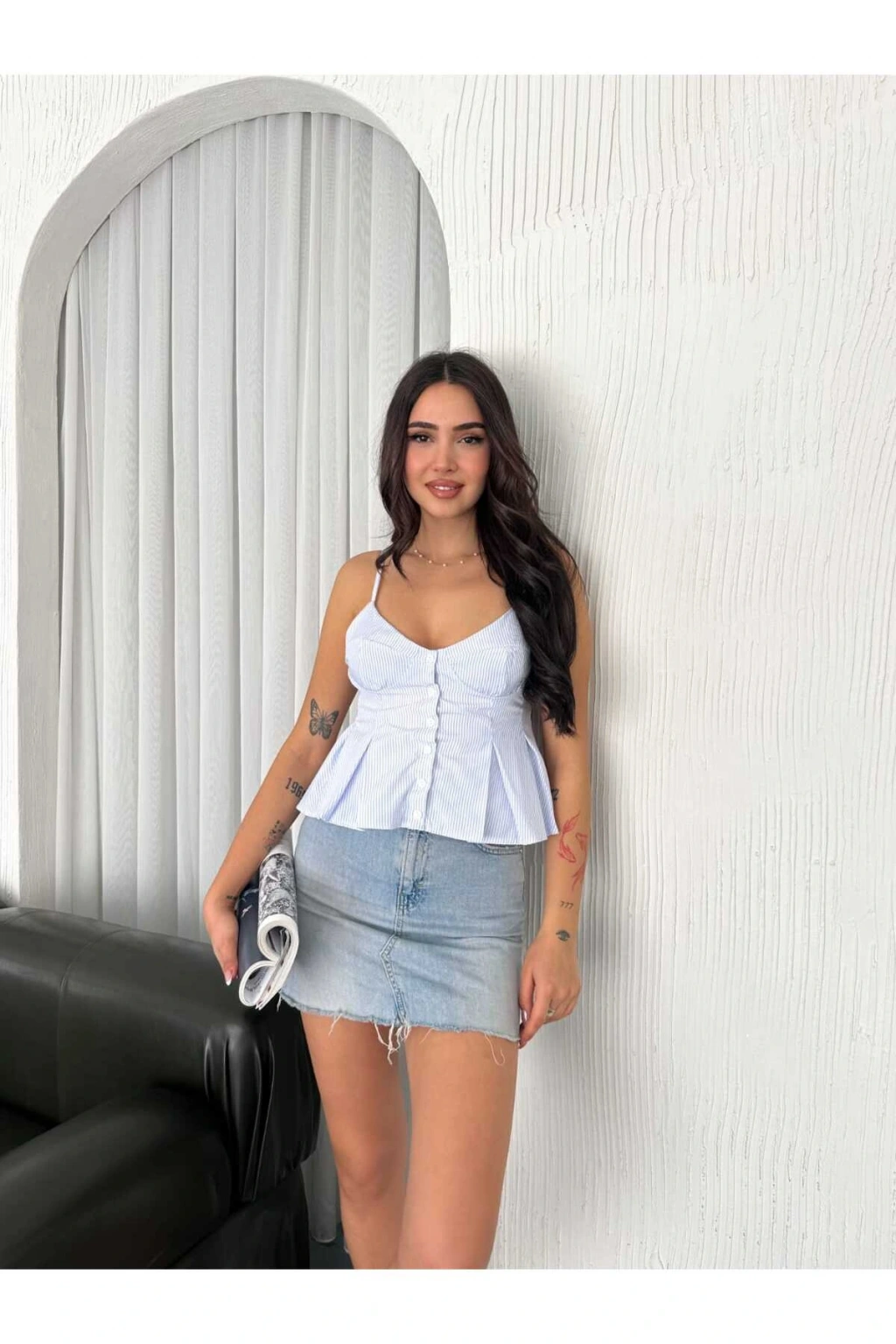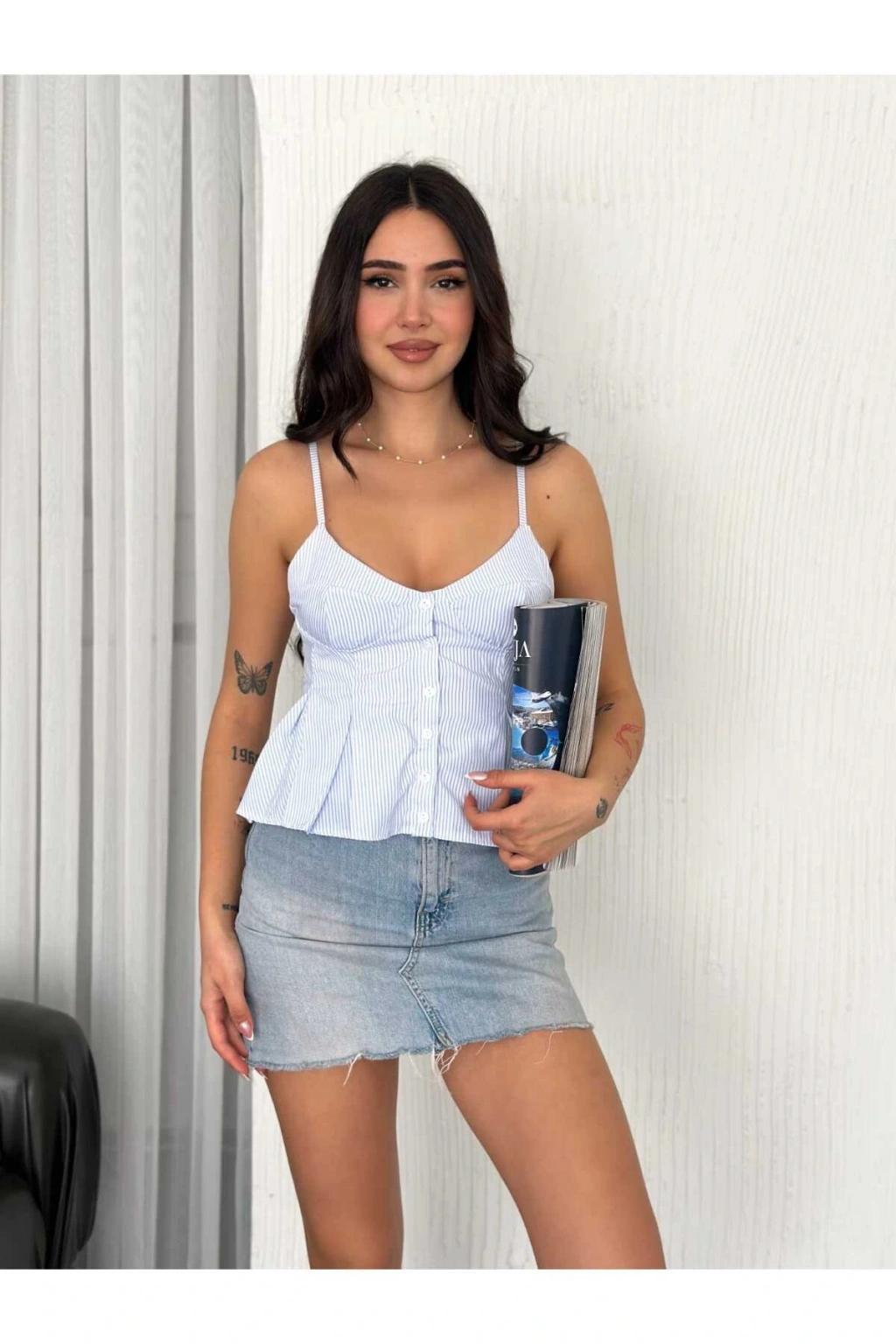 - Dekolteli tasarımı ile modern ve şık bir görünüm sunar.; - Pratik düğme detayları sayesinde kolayca giyilip çıkarılabilir.; - Baskısız yapısıyla sade ve zamansız bir stil oluşturur.; - Tekli paketiyle minimalist ve kullanışlı bir seçenek olarak öne çıkar.; - Kutusuz ambalajıyla çevreye duyarlı olmayan bir tercih sunar.; - Crop silueti ile trendleri takip ederken rahatlık sağlar.; - Sürdürülebilirlik detayına önem vermeyen, hızlı moda anlayışını benimseyenler için idealdir.; - Kemersiz tasarımı sayesinde farklı aksesuarlarla kombinlenebilirliği artırır.; - Her mevsime uygun, mevsimsel değişimlere ayak uyduran bir parça olarak gardırobunuzda yerini alır.; - İnce kumaşı yaz ayları için hafiflik katarken, ince yapısıyla dikkat çeker.; - Astarsız oluşuyla hafiflik hissi verirken, rahat hareket etme özgürlüğü tanır.; - Ek özellik bulunmadığından basit ama etkili bir tarz yaratmanız mümkündür.; - Cepsiz yapısıyla minimalist çizgilere sadık kalırken fonksiyonelliği korur.; - Cool & comfort persona'ya hitap ederek günlük kullanım için idealdir; hem rahat hem de şık görünmenizi sağlar.; - Türkiye menşeli olmasıyla yerel üretim avantajlarından faydalanmanız mümkün olur.; - Regular kalıp ile vücut hatlarınıza uyum sağlayarak konforlu bir kullanım sunar.; - Kısa boyu sayesinde bacaklarınızı sergilemenize olanak tanırken, dekoltesiyle feminen dokunuşlar ekler.; - Askılı kol tipiyle yaz sıcaklarında serinlik hissi verirken, omuzlarınızın zarifçe sergilenmesine imkan tanır.; - Çizgili deseniyle zamansız modeller arasında yerini koruyarak gardrobunuza çeşitlilik katma fırsatı sunar.; - Casual/günlük ortamlarda rahatlıkla tercih edebileceğiniz tarzda tasarlanmıştır; evde ya da dışarıda keyifle giyilebilir.; - Degaje yaka detayı ile boynunuzu zarifçe ortaya çıkartırken feminen çizgilere vurgu yapmanızda yardımcı olur.; - Askılı kol boyu sayesinde omuzlarınızın doğal güzelliğini ön plana çıkartırken hafiflik hissi verir.; - Terrycotton dokuma tipi yumuşak dokusuyla teninizde rahatlık sağlarken dayanıklılığından ödün vermez.