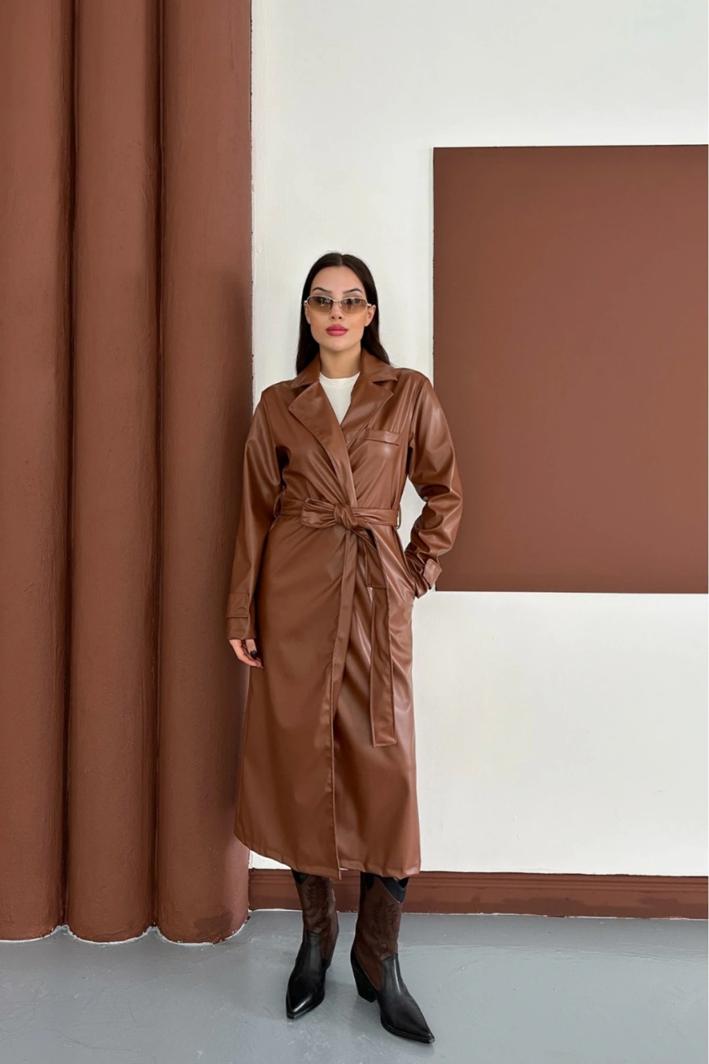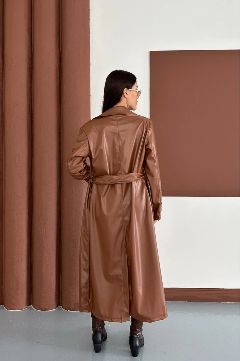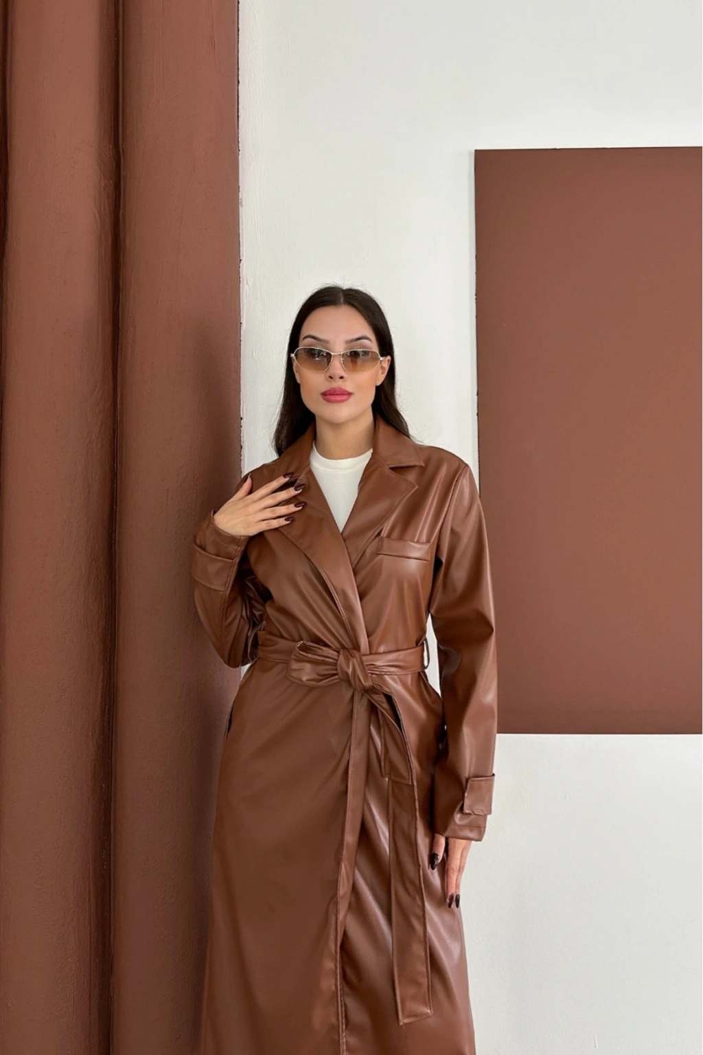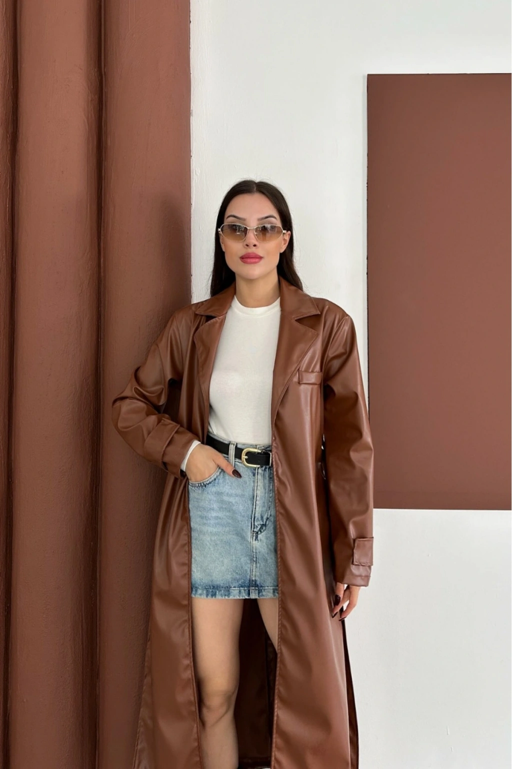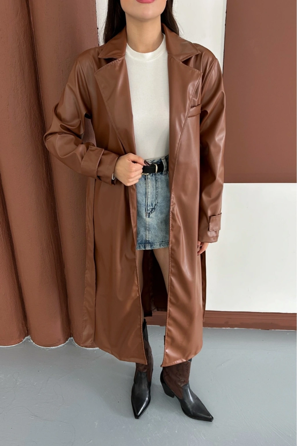 - Klasik ve zamansız tasarımıyla her gardıropta yerini alacak düz desenli deri trençkot, şıklığı ve rahatlığı bir arada sunar.; - Tek parça halinde gelen bu trençkot, kolay kullanım için pratik bir paket içeriğiyle gelir.; - Çift cepli yapısı ile hem fonksiyonel hem de estetik bir görünüm sağlar.; - Uzun kollu tasarımı ile mevsim geçişlerinde ideal koruma ve şıklık sunar.; - Orta kalınlığı sayesinde ne çok sıcak tutar ne de çok soğuk tutar, mevsim geçişlerinde ideal konforu sağlar.; - Düz kesimi ve sade tasarımıyla her tür kombinle uyum sağlayarak günlük kullanım için idealdir.; - Kuşak detayı belinizi vurgulayarak feminen bir siluet oluştururken aynı zamanda ayarlama imkanı sunar.; - Basic koleksiyonun bir parçası olarak, her yaş grubuna hitap eden geniş bir kullanıcı yelpazesine sahiptir.; - Cool & Comfort kişiliğiyle modern ve rahat bir tarz yaratmanız için tasarlanmıştır.; - Casual ortamlarda rahatlıkla tercih edebileceğiniz günlük giyim için uygundur.; - Ek özellik bulunmamaktadır; sadelikten yana olanların tercihi.; - Tüm yaş gruplarına uygun olarak tasarlanmıştır; gençten yetişkine herkes için uygundur.; - Kış sezonunda sıcak tutacak ideal bir seçenektir.; - Türkiye menşeli olmasıyla yerli üretim kalitesini ve işçiliğini yansıtır.; - Midi boyu ile hem şık hem de modern bir görünüm kazandırır.; - Regular kalıbı sayesinde rahat hareket etme özgürlüğü sağlar.; - Suni deri kumaşı dayanıklılık ve kolay bakım avantajları sunarken, gerçek derinin estetiğini yakalamak isteyenler için idealdir.; - Yetişkin kadın/kız cinsiyet ayrımı gözetmeksizin herkes tarafından tercih edilebilir.; - Standart kol tipiyle klasik trençkot görünümünü korurken konforlu bir kullanım vaat eder.; - Suni deriden üretilmiş materyali ile hayvan dostu bir seçenek olarak öne çıkarken uzun ömürlüdür.; - Ceket yakası ile resmiyetten casual giyime kadar geniş kullanım alanına sahiptir.; - Astarsız yapısıyla hafiflik ve nefes alabilirlik sağlar.