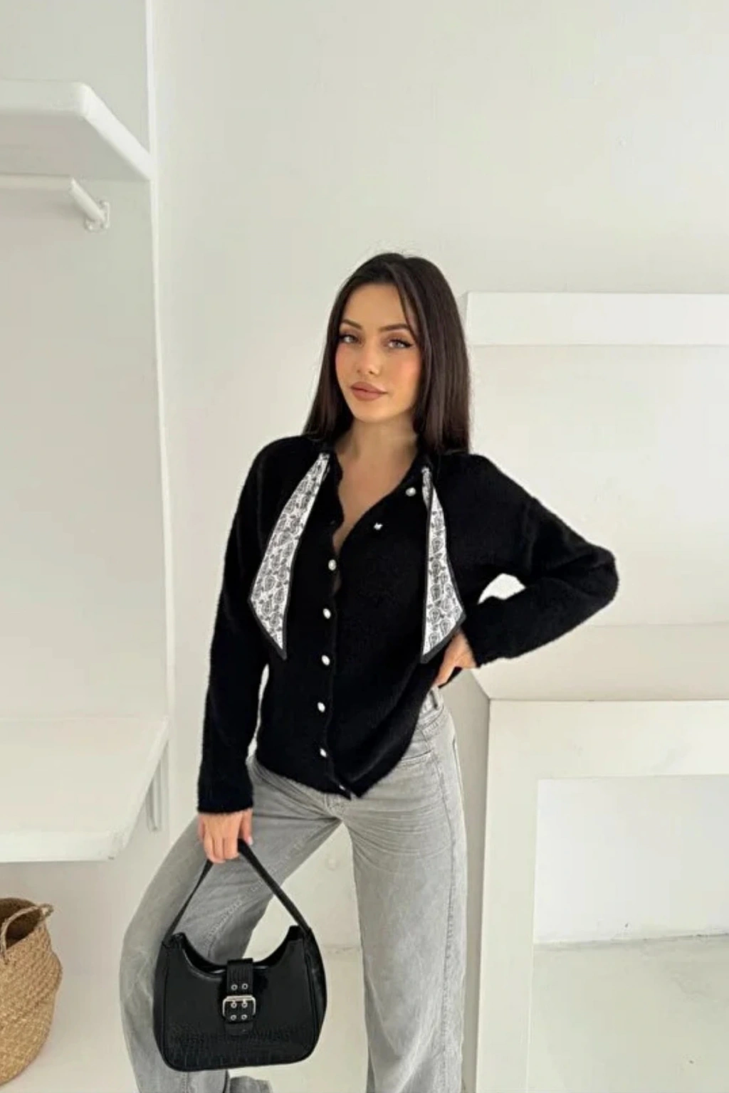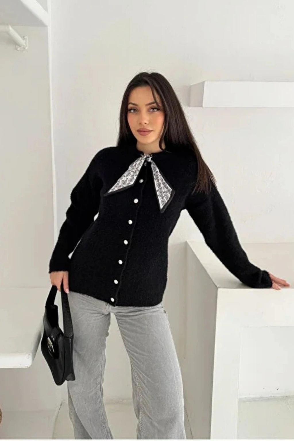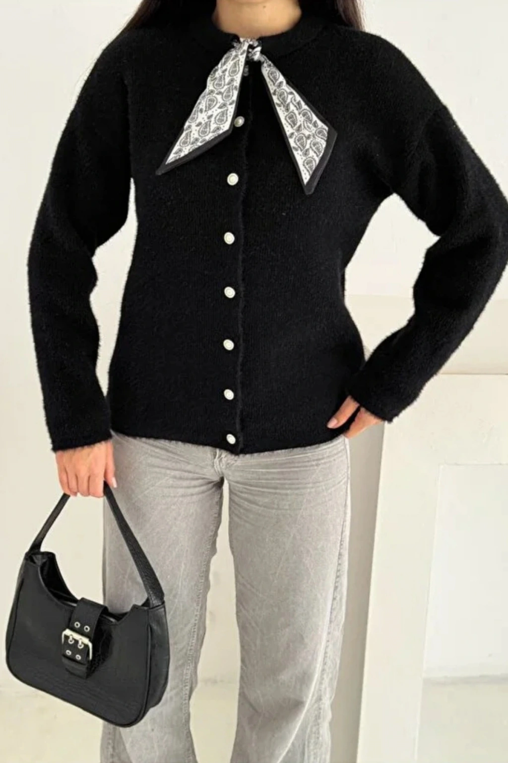 - Basic ve cool bir tarz için ideal, düz kesim fular detaylı triko hırka.; - Uzun kollu ve fular yaka tasarımı ile hem şık hem de rahat bir kullanım sunar.; - Örgü dokuma tipi, dayanıklılığı ve konforu bir arada garanti eder.; - Cepsiz tasarımı ile minimalist bir görünüm kazandırırken, düğmeli kapama pratiklik sağlar.; - Tüm sezonlar boyunca rahatlıkla tercih edilebilecek orta kalınlıkta triko kumaştan üretilmiştir.; - Tüylenme yapmayan kumaşı sayesinde uzun süreli kullanım için idealdir.; - Casual ortamlarda günlük kullanım için uygundur; rahat kalıbı ile gün boyu konfor sağlar.; - Kemersiz tasarım, vücut hatlarını zarifçe sararak feminen bir siluet oluşturur.; - TR menşeli olmasıyla yerel üretim desteklenir ve kaliteyi ön planda tutar.;
