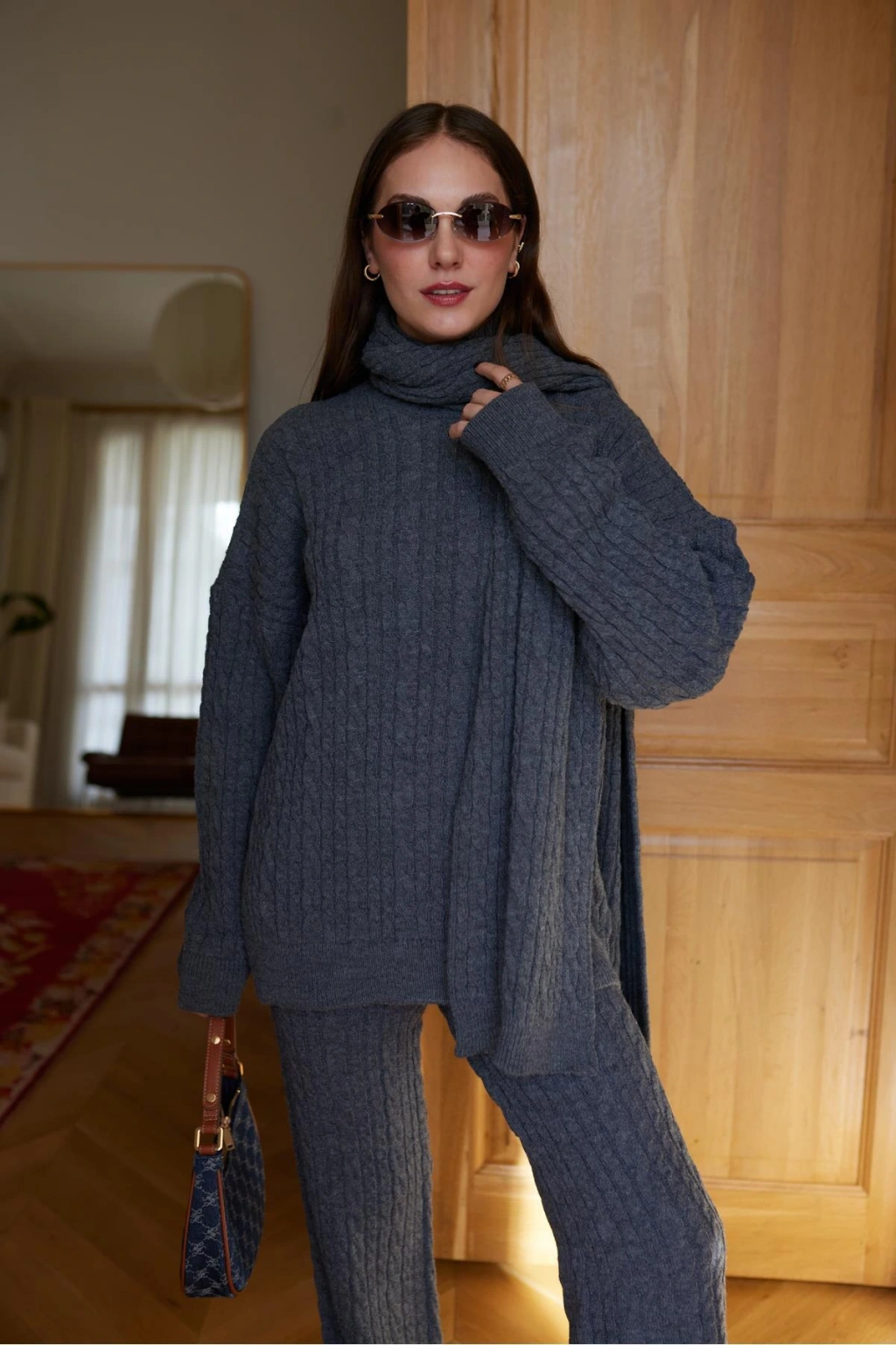 - Rahat ve şık bir görünüm sunan, genç tarzını yansıtan triko pantolon takımı.; - Uzun boy kesimi ile hem konforlu hem de stil sahibi bir kullanım sağlar.; - Örme kumaşı sayesinde esnek yapısıyla gün boyu rahat hareket etme olanağı tanır.; - Saç örgüsü deseniyle modern ve trend bir görünüm kazandırırken, ekru rengiyle kolayca kombinlenebilir.; - Yüksek bel tasarımı sayesinde vücut hatlarını zarifçe sararak feminen bir siluet oluşturur.; - Kemersiz yapısı ile pratik kullanım sunarken, standart kol tipi günlük aktivitelerde idealdir.; - Kazaklı pantolonlu alt-üst takım olarak tasarlanmıştır; böylece soğuk havalarda sıcaklık ve şıklığı bir arada yaşatır.; - Triko görünümlü dokumasıyla kalın yapısı, kış aylarında vazgeçilmez bir tercih haline gelir.; - Cepsiz tasarımının yanında geniş paça detayları modern çizgilere sahipken, boğazlı yaka tipiyle sofistike bir dokunuş katmaktadır.; - 3 parça set içeren bu ürün, farklı ihtiyaçlara uygun seçenekler sunarak gardrobunuzu zenginleştirir.; - Günlük kullanım için ideal olan casual tarzıyla her ortamda rahatlıkla tercih edilebilir.; - Tüm yaş gruplarına hitap eden geniş beden skalasıyla herkes için uygunluk gösterir.; - Likra materyali sayesinde uzun süreli kullanımda bile formunu koruyarak dayanıklılık vaad eder.