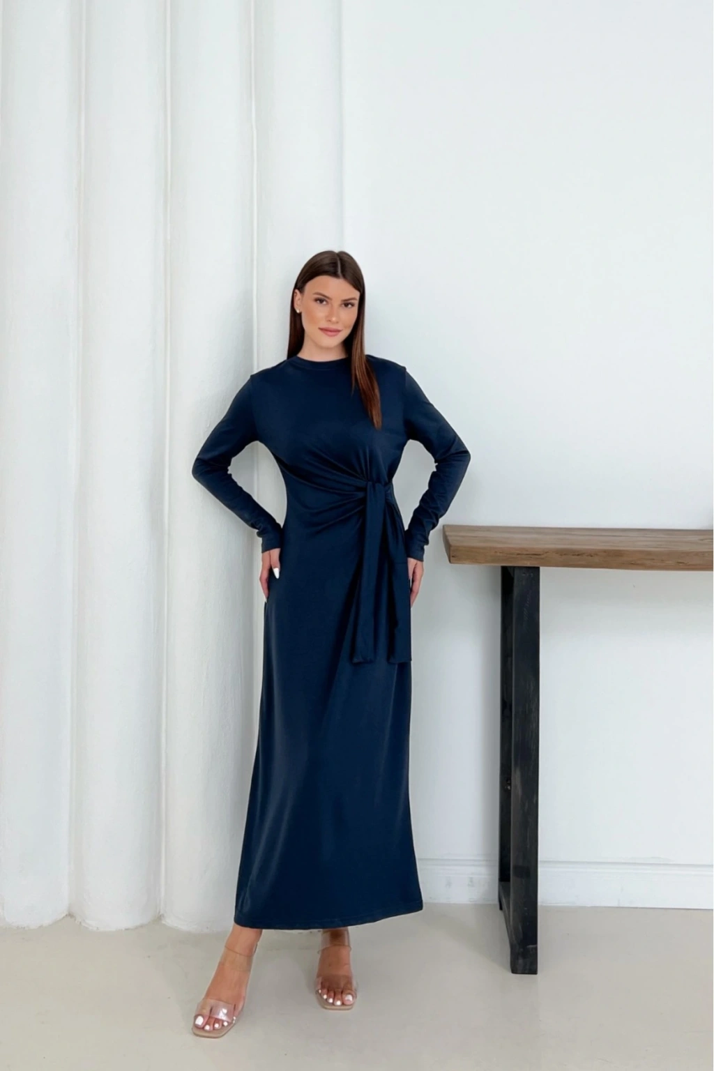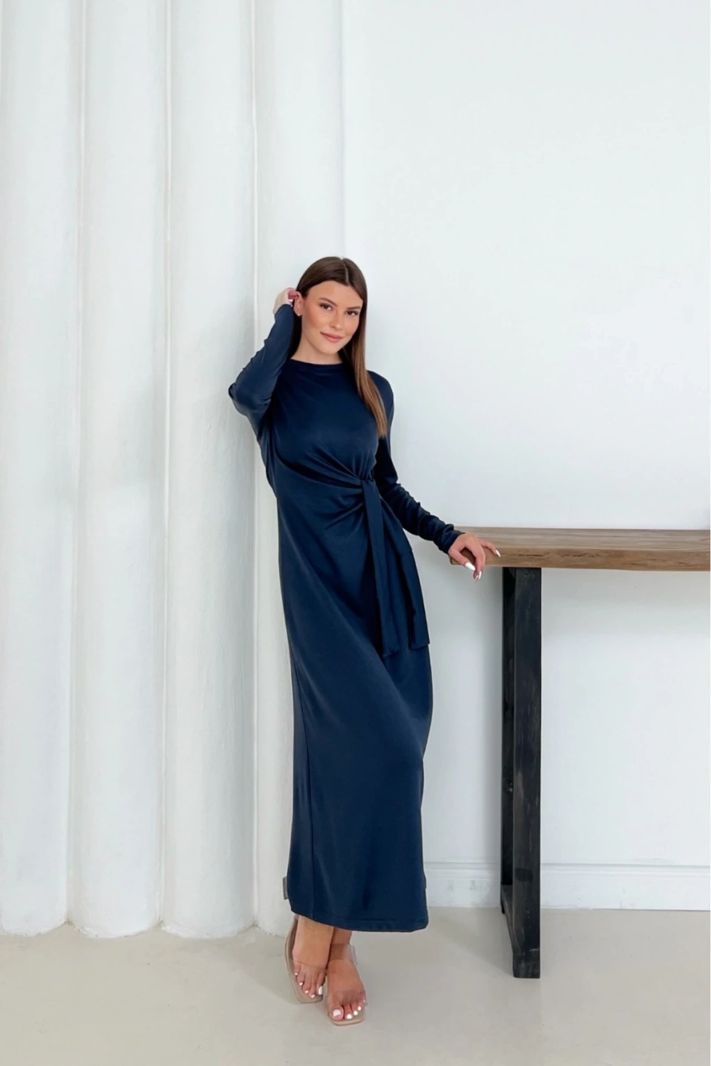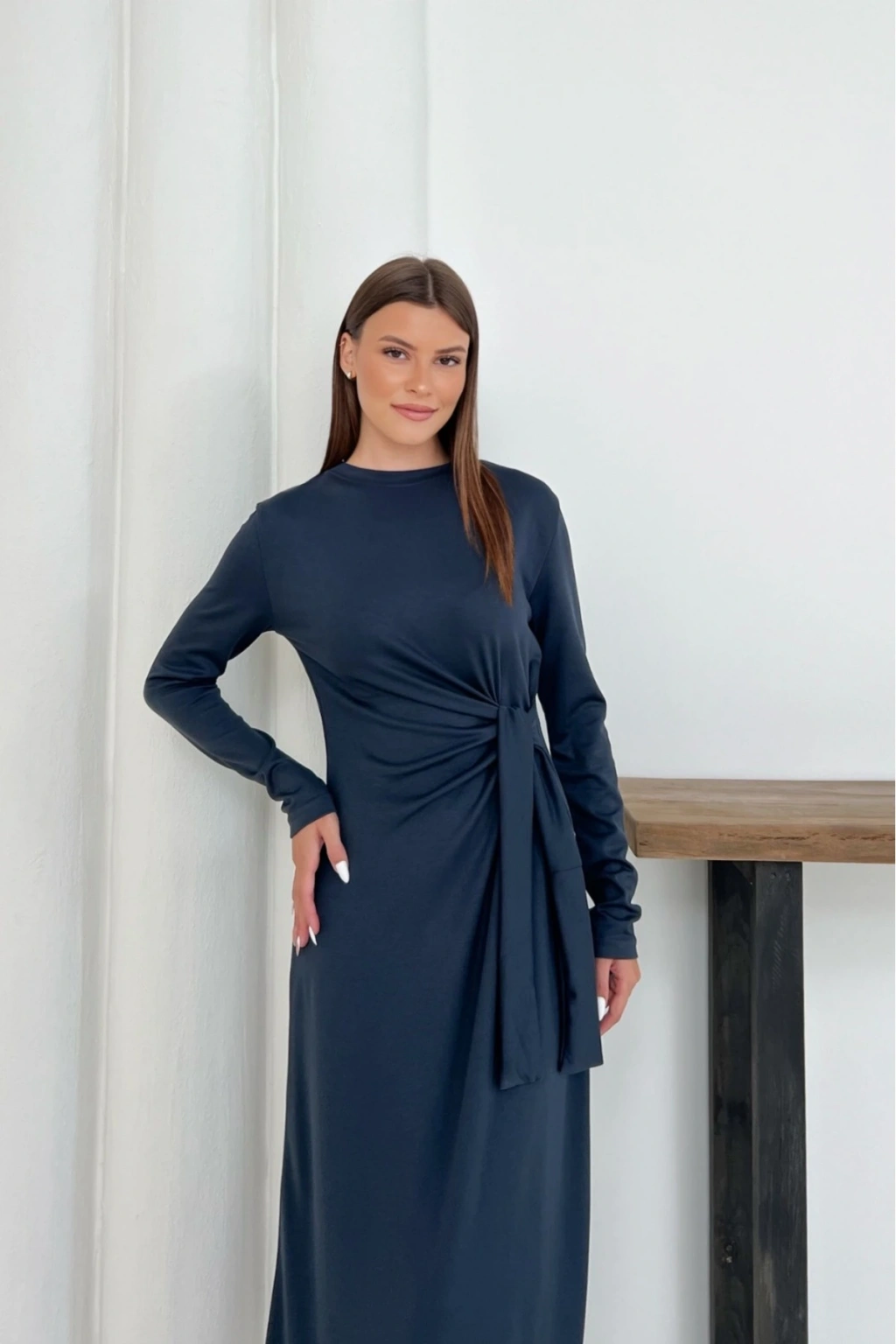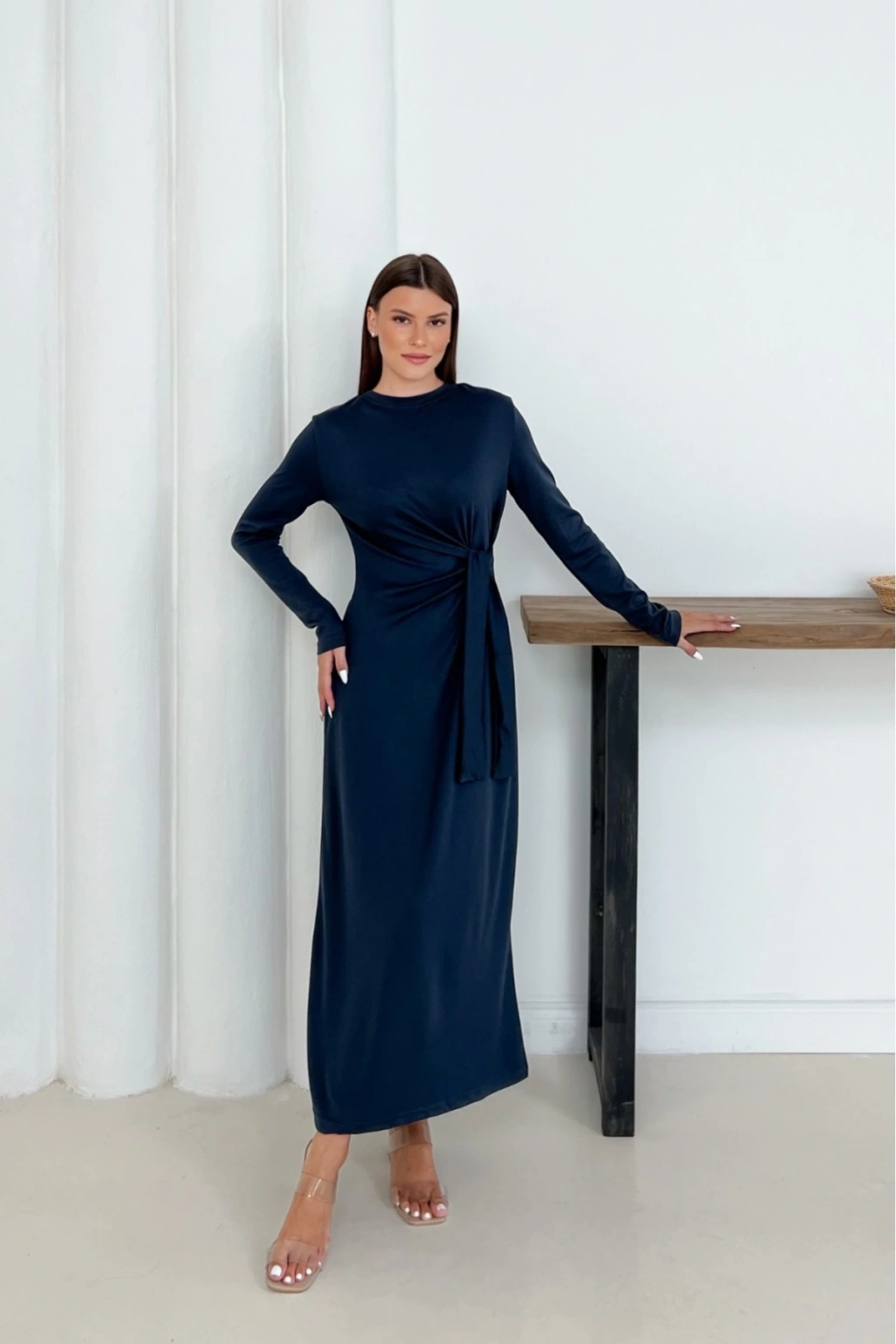 - Orta kalınlıkta modal kumaştan üretilmiş, rahatlıkla günlük kullanım için ideal.; - Basic siluetiyle her vücut tipine uyum sağlayarak şık bir görünüm sunar.; - Kapamasız tasarımı sayesinde pratik kullanım imkanı tanırken, kuşak detayı ile belinizi zarifçe vurgular.; - Sürdürülebilirlik konusuna önem vermeyen bu elbise, çevreye duyarlı tercihler yapmak isteyenler için uygun değildir.; - Casual koleksiyonun parçası olarak tasarlanmıştır; ilkbahar ve sonbahar mevsimleri için mükemmel bir seçenektir.; - Tekli paketiyle kolayca satın alınabilir ve ihtiyacınıza göre hemen kullanmaya başlayabilirsiniz.; - İç göstermeyen yapısıyla rahatlığınızdan ödün vermeden şıklığınızı korumanızı sağlar.; - Baskısız deseniyle sadelikten yana olanların beğenisini kazanacak şekilde dizayn edilmiştir.; - Uzun boyu sayesinde hem konforlu hem de estetik bir duruş sergilerken, yetişkin yaş grubuna hitap eder.; - TR menşeli olup yerel üretim avantajıyla ekonomimize katkıda bulunurken aynı zamanda kalite standartlarından da ödün vermez.; - Örme dokuma tipi ile esneklik kazandırarak hareket özgürlüğünüzü arttırır.; - Astarsız oluşuyla hafifliği ön plana çıkartarak gün boyu rahat etmenize yardımcı olur.; - Kuşak detayına sahip olmasıyla farklı kombinasyonlar oluşturmanız için esneklik sunarken, uzun kol boyu soğuk havalarda bile sizi sıcak tutacaktır.; - Bisiklet yakası modern ve minimalist tarzını yansıtırken, düz deseniyle kolayca diğer aksesuarlarla eşleştirilebilir.