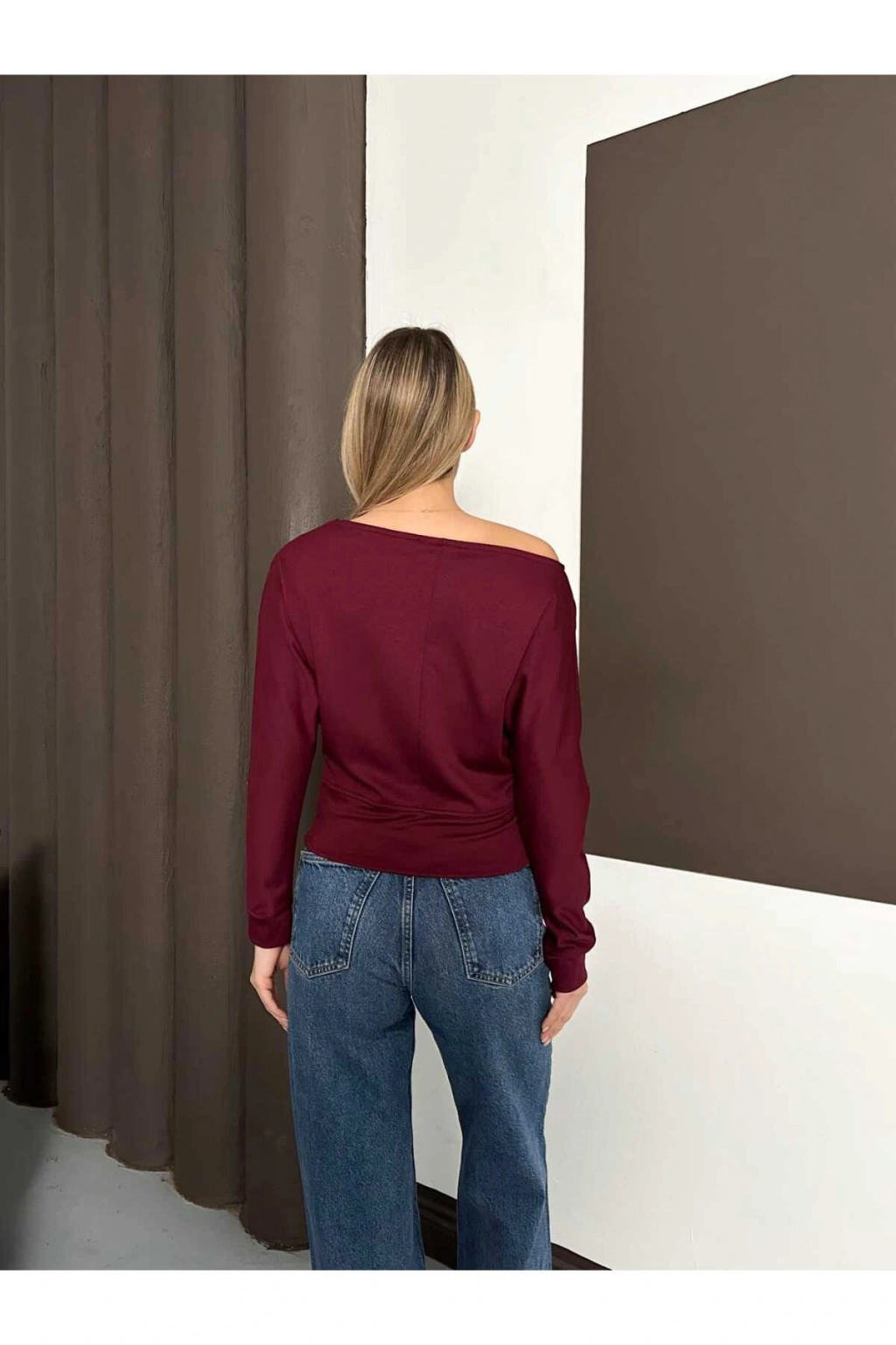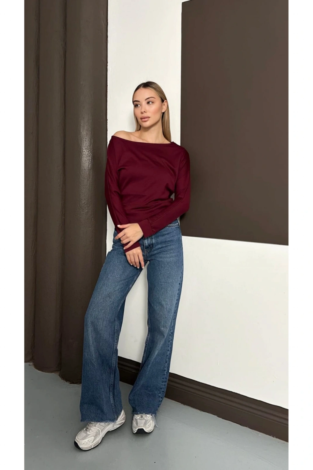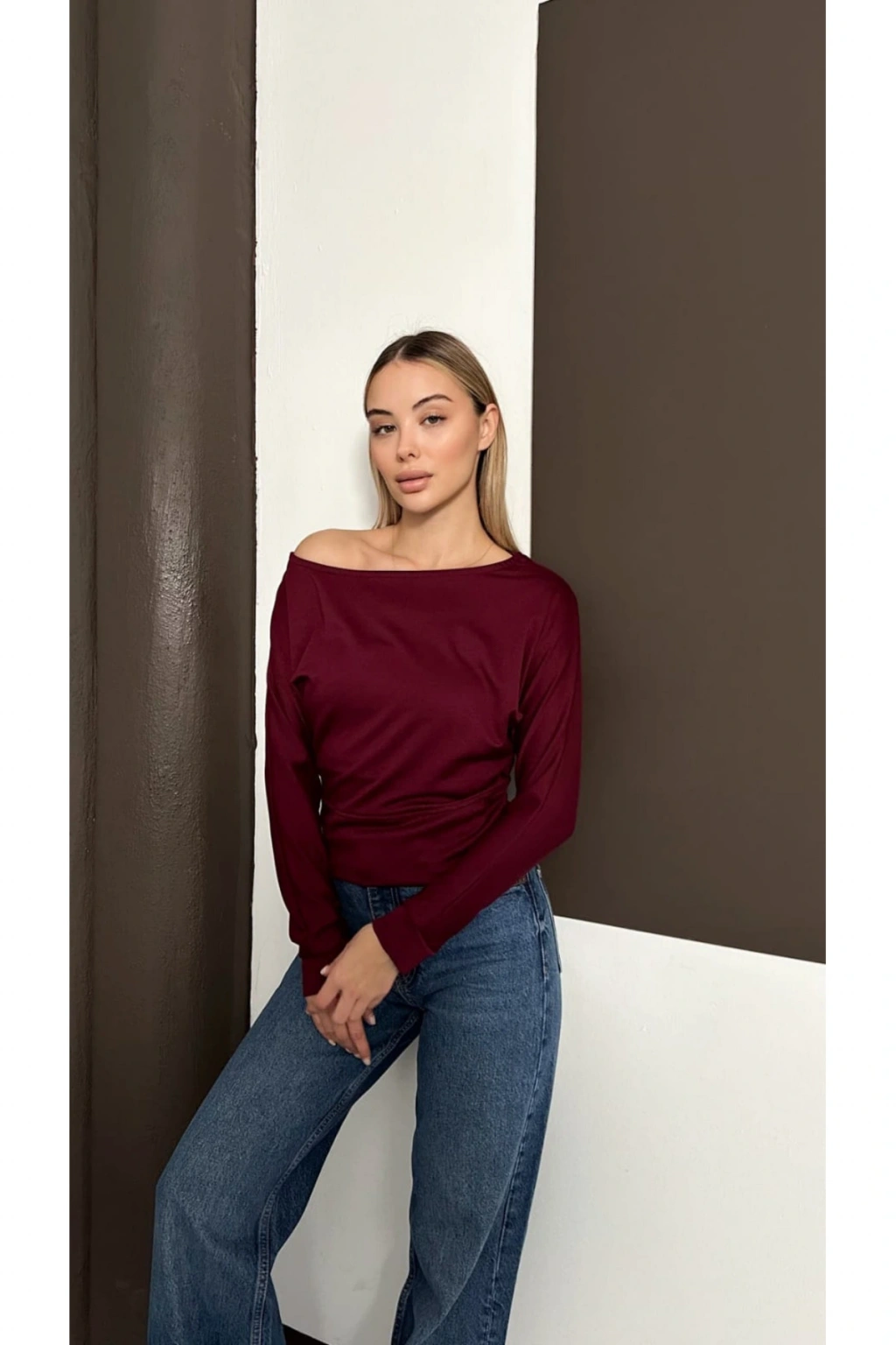 Kadın Bordo Kayık Yaka Yarasa Kol Bluz