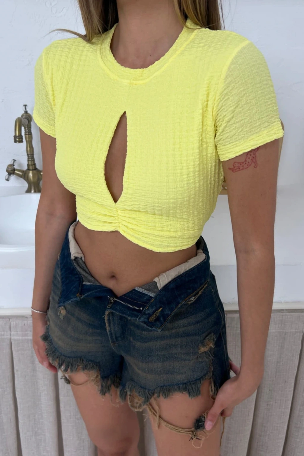 Kadın Bubble Kumaş Göğüs Dekolteli Crop