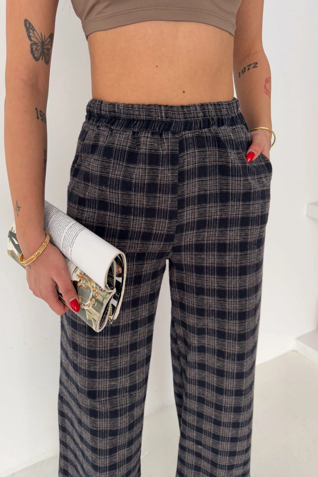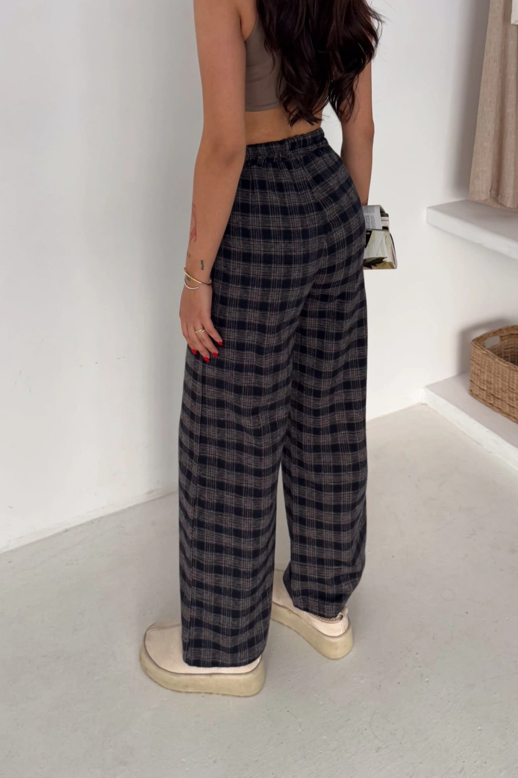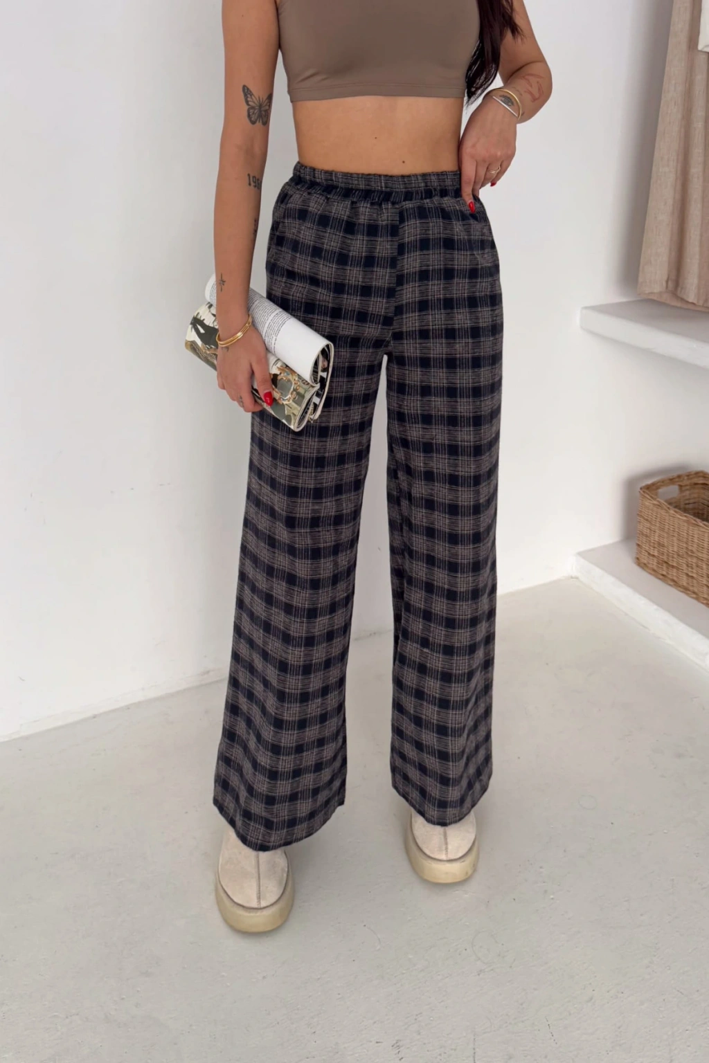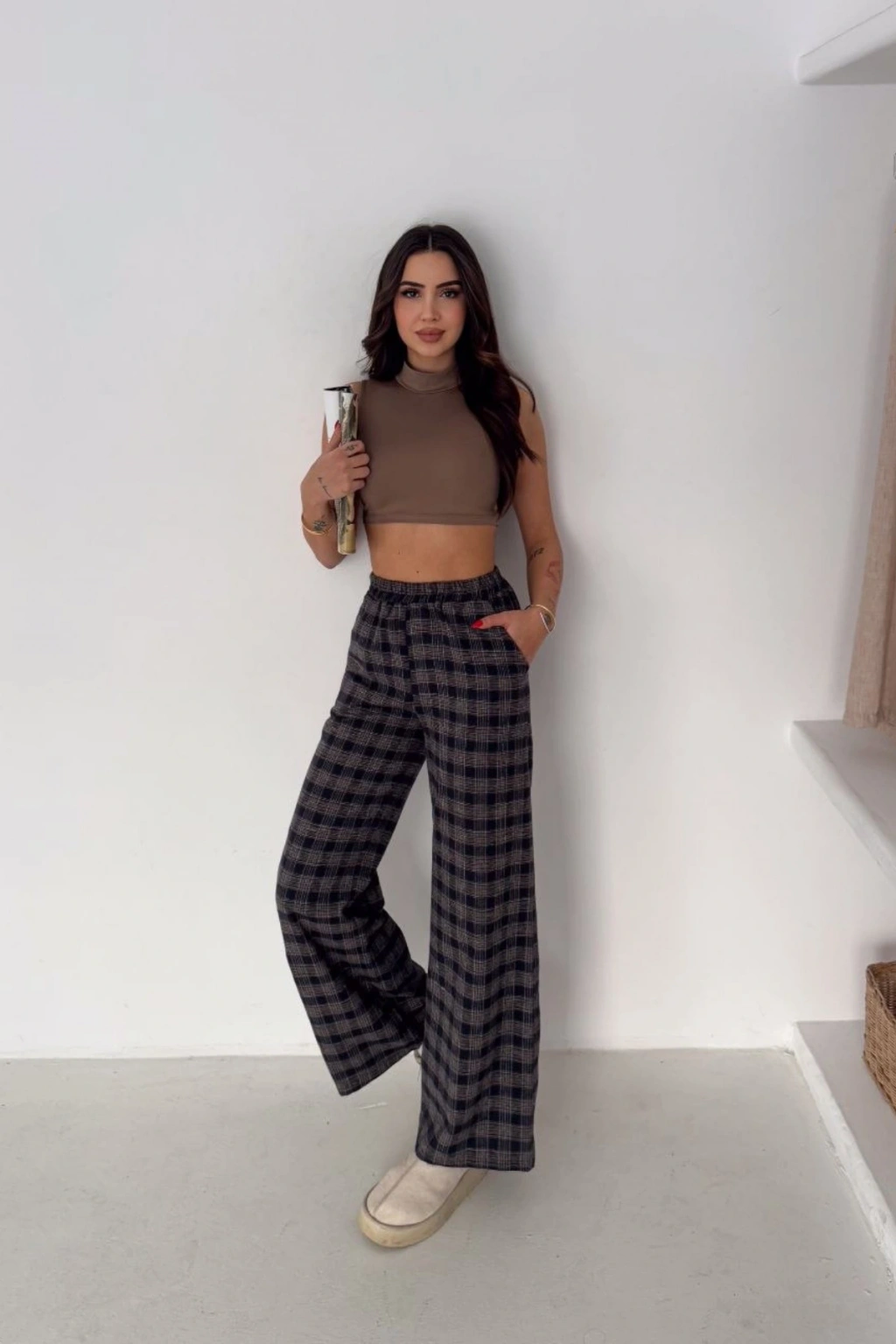 - Ekose deseniyle dikkat çeken bu pantolon, hem şık hem de rahat bir görünüm sunar.; - Yüksek bel tasarımı sayesinde vücut hatlarını zarifçe sarar ve modern bir siluet oluşturur.; - Bol kalıbı ile gün boyu konforlu bir kullanım sağlar; hareket özgürlüğünüzü kısıtlamaz.; - Tüm sezonlar için uygun olan bu pantolon, gardırobunuzun vazgeçilmez parçası haline gelir.; - Casual ortamlarda rahatlıkla tercih edebileceğiniz bu pantolon, günlük şıklığınızı tamamlar.; - Çift cepli tasarımı pratik kullanım imkanı sunarken, geniş paça kesimi modern bir stil vurgusu yapar.; - Orta kalınlıkta dokuma kumaşı ile mevsim geçişlerinde ideal bir seçimdir.; - Kemersiz tasarımı sayesinde bel kısmında doğal bir duruş sergiler ve esnek bel yapısıyla gün boyu rahatlık sağlar.; - Cool & Comfort persona ile tasarlanan bu pantolon, hem stil sahibi hem de konforlu bir