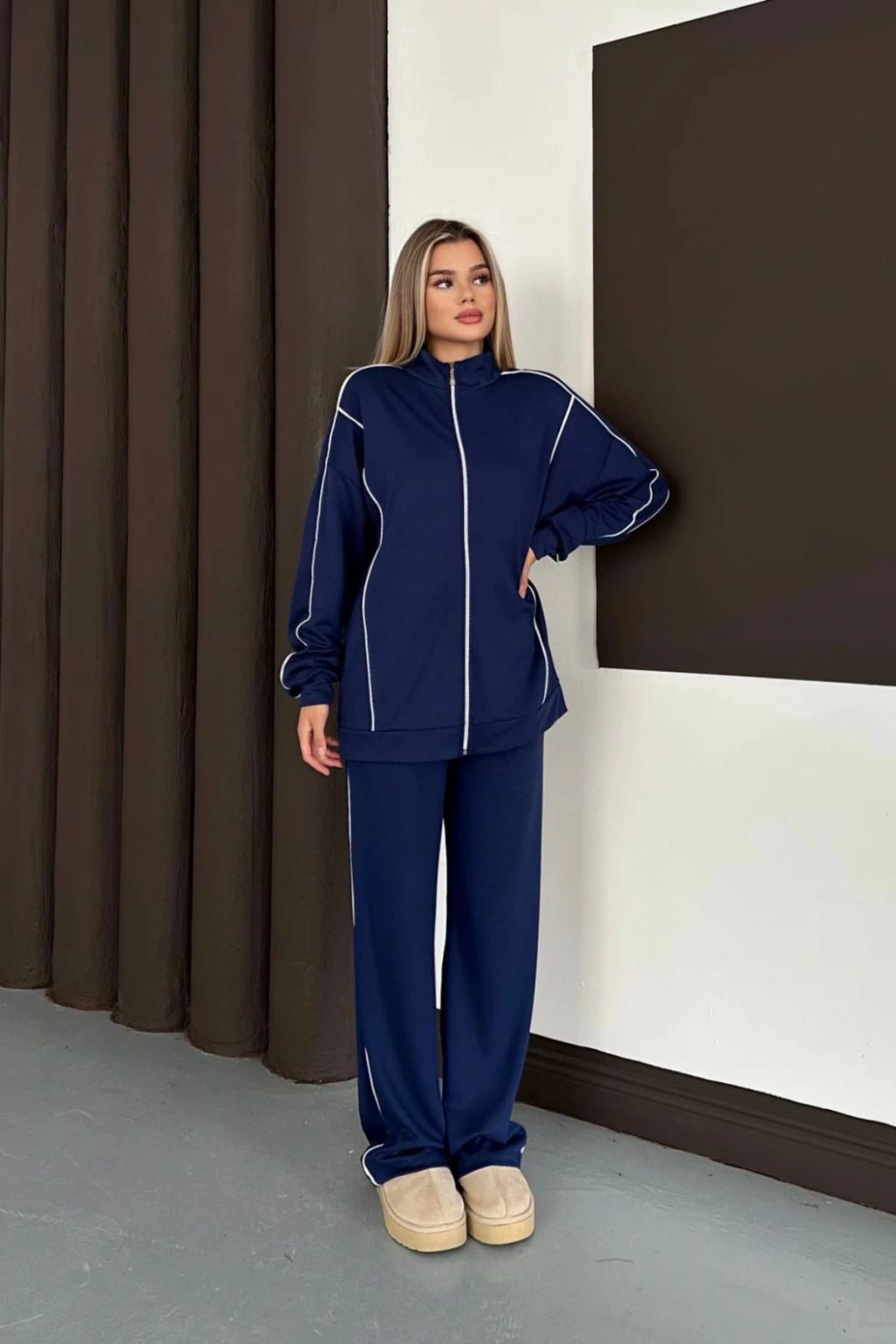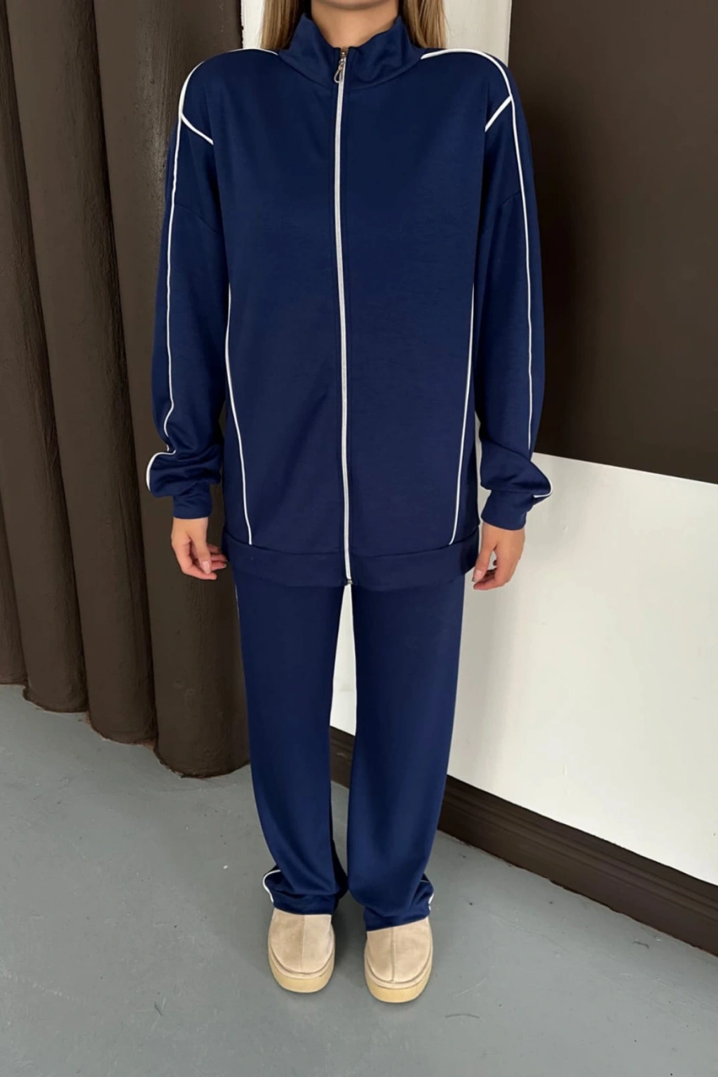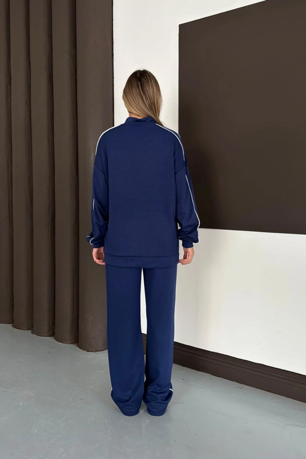 Kadın Lacivert Ara Biyeli Uzun Eşofman Takımı