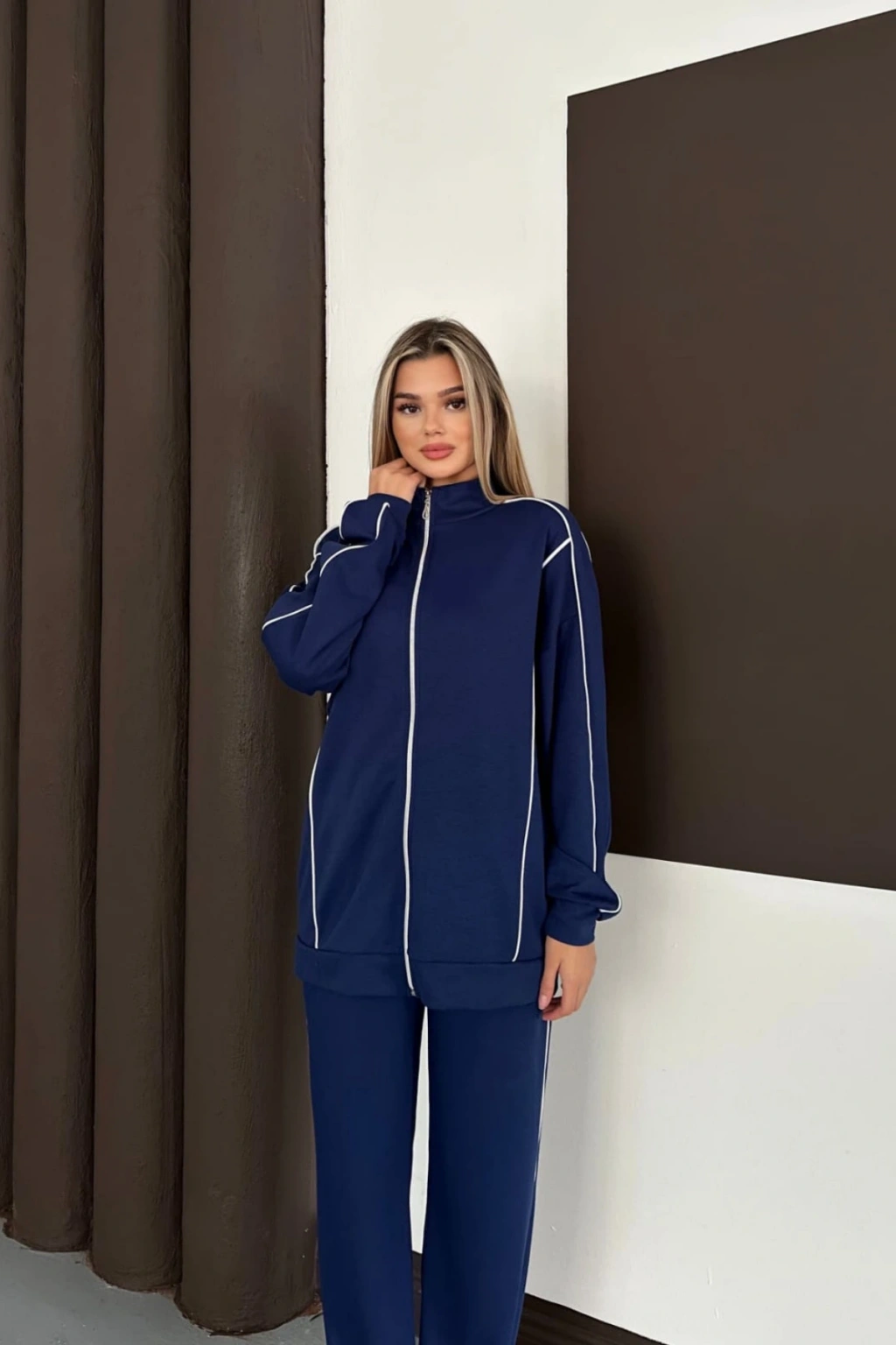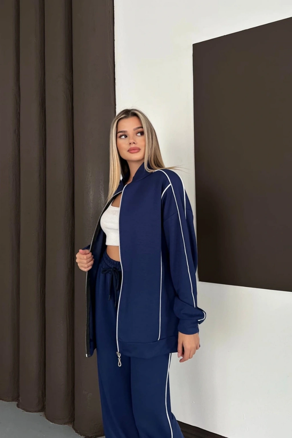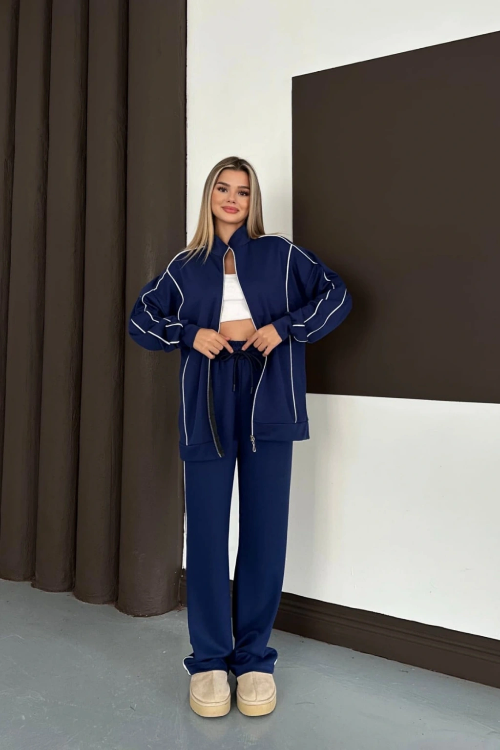 Kadın Lacivert Ara Biyeli Uzun Eşofman Takımı