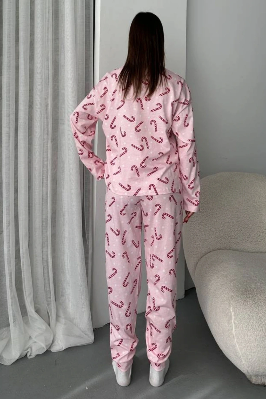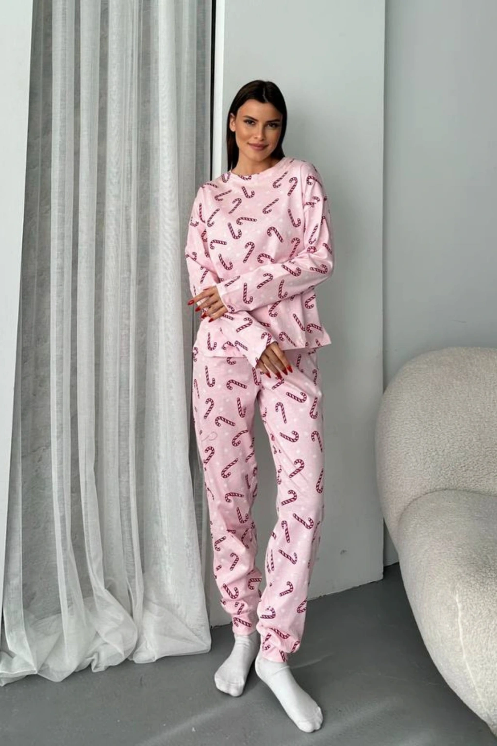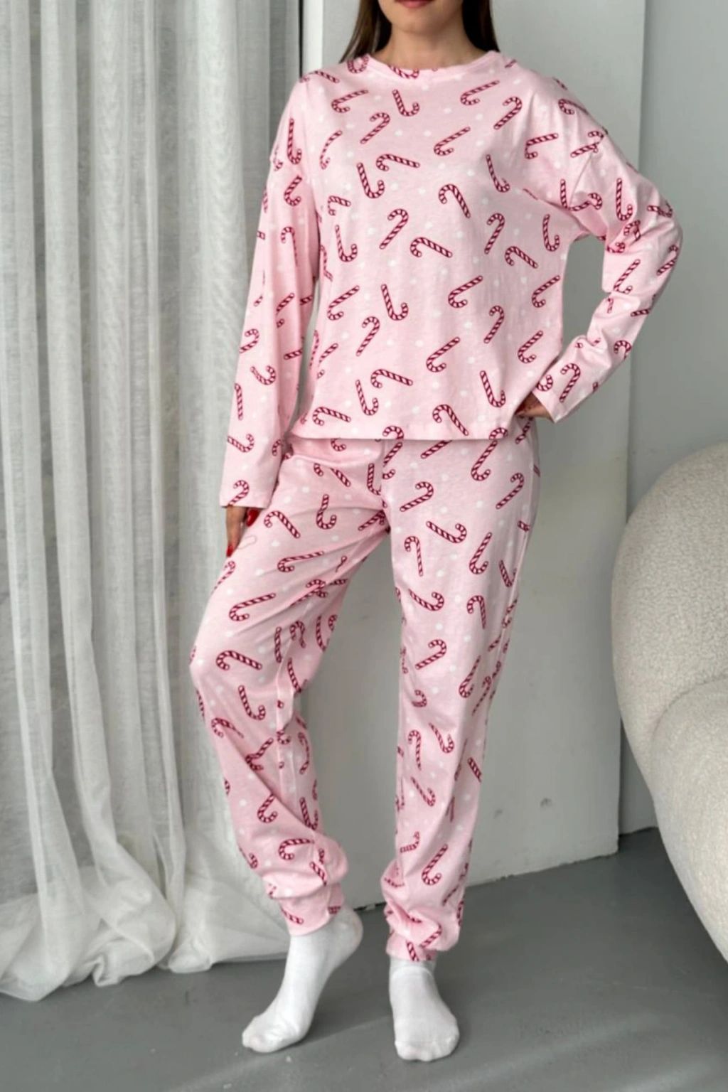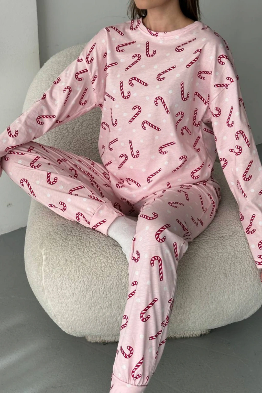 Kadın Şeker Desenli Alt Üst Pijama Takımı-Pembe