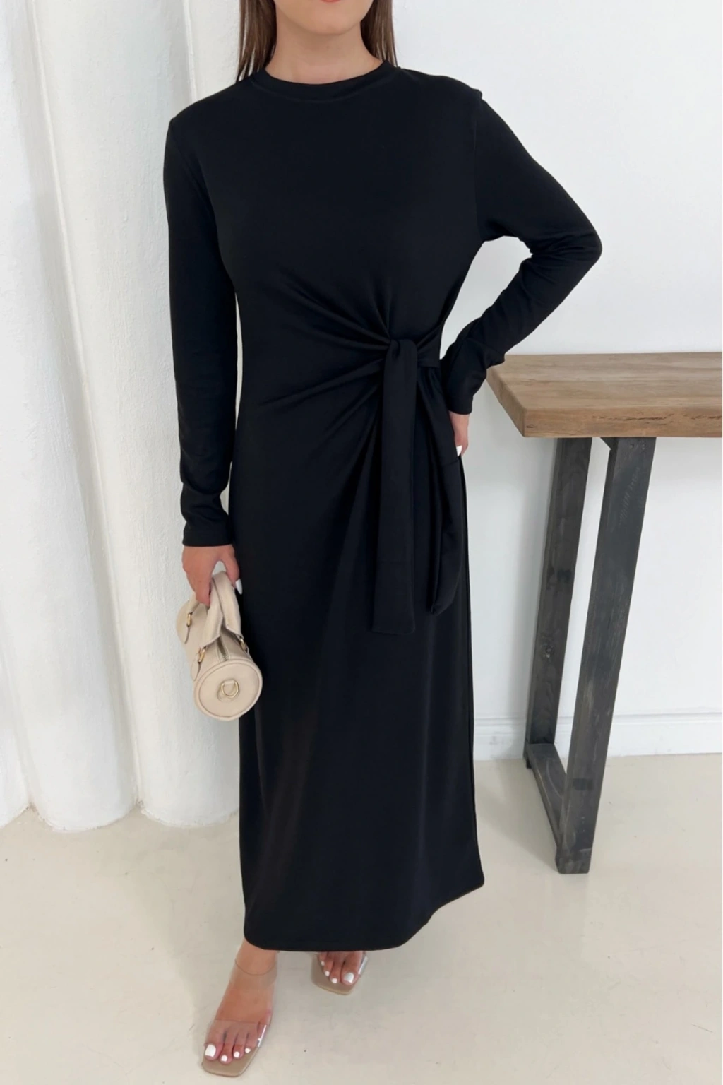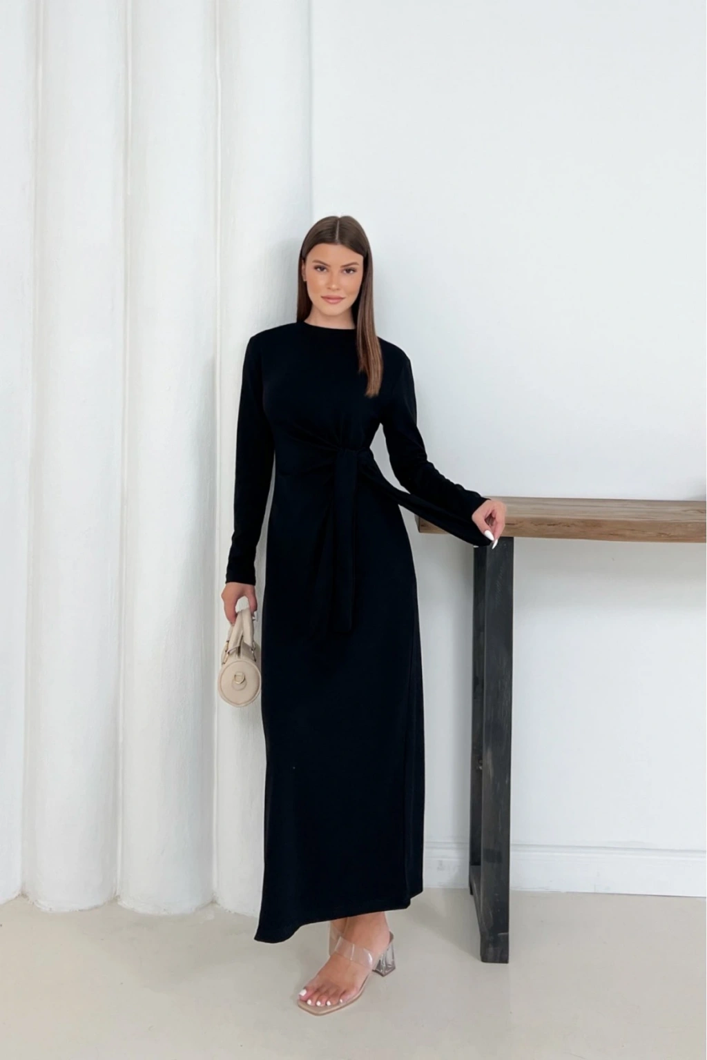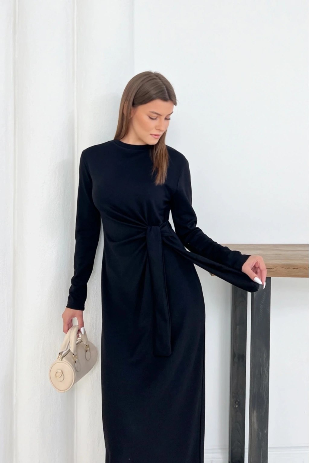 - Orta kalınlıkta modal kumaştan üretilmiş, rahatlıkla günlük kullanım için ideal.; - Basic siluetiyle her vücut tipine uyum sağlayarak şık bir görünüm sunar.; - Kapamasız tasarımı sayesinde pratik kullanım imkanı tanırken, kuşak detayı ile belinizi zarifçe vurgular.; - Sürdürülebilirlik konusuna önem vermeyen bu elbise, çevreye duyarlı tercihler yapmak isteyenler için uygun değildir.; - Casual koleksiyonun parçası olarak tasarlanmıştır; ilkbahar ve sonbahar mevsimleri için mükemmel bir seçenektir.; - Tekli paketiyle kolayca satın alınabilir ve ihtiyacınıza göre hemen kullanmaya başlayabilirsiniz.; - İç göstermeyen yapısıyla rahatlığınızdan ödün vermeden şıklığınızı korumanızı sağlar.; - Baskısız deseniyle sadelikten yana olanların beğenisini kazanacak şekilde dizayn edilmiştir.; - Uzun boyu sayesinde hem konforlu hem de estetik bir duruş sergilerken, yetişkin yaş grubuna hitap eder.; - TR menşeli olup yerel üretim avantajıyla ekonomimize katkıda bulunurken aynı zamanda kalite standartlarından da ödün vermez.; - Örme dokuma tipi ile esneklik kazandırarak hareket özgürlüğünüzü arttırır.; - Astarsız oluşuyla hafifliği ön plana çıkartarak gün boyu rahat etmenize yardımcı olur.; - Kuşak detayına sahip olmasıyla farklı kombinasyonlar oluşturmanız için esneklik sunarken, uzun kol boyu soğuk havalarda bile sizi sıcak tutacaktır.; - Bisiklet yakası modern ve minimalist tarzını yansıtırken, düz deseniyle kolayca diğer aksesuarlarla eşleştirilebilir.
