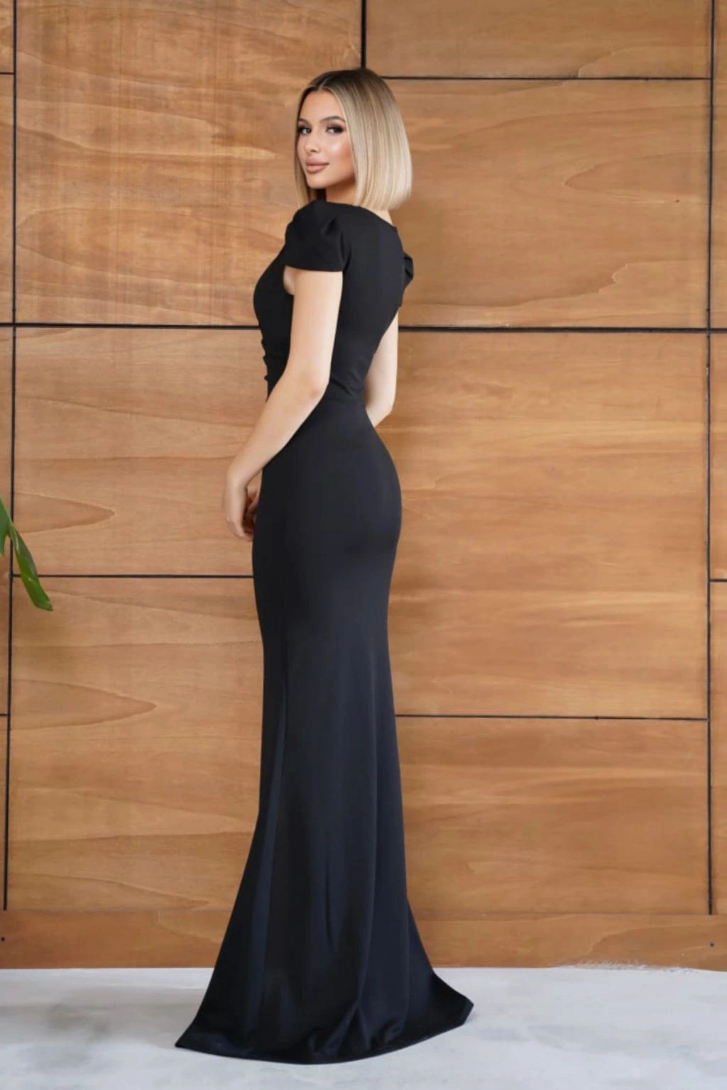 - Krep dokuma kumaşın zarif yapısı, elbisenin şık ve modern bir görünüm kazandırır.; - Yırtmaç detayı ile feminen ve hareket özgürlüğü sağlayan tasarım.; - Kapamasız tasarımı sayesinde rahat bir kullanım sunar ve kolay giyilip çıkarılabilir.; - Kısa kollu yapısı ile mevsim geçişlerinde ideal konforu sağlar.; - Düz deseni ve slim silueti ile her vücut tipine uyum sağlayarak zarif bir duruş sergiler.; - Astarsız yapısı hafiflik hissi verirken, slim fit kalıbı vücut hatlarını zarifçe sarar.; - Kemersiz tasarımı ile minimalist bir stil vurgular ve farklı aksesuarlarla kişiselleştirilebilir.; - Cepsiz olması, elbisenin şık görünümünü korurken pratiklikten ödün vermez.; - Party koleksiyonuna ait bu elbise, özel günlerde dikkat çekici bir stil sunar.; - Tüm sezonlar için uygun yapısıyla yılın her zamanında tercih edilebilir.; - V yaka detayı ile dekolte bölgesini zarifçe ön plana çıkarır.; - Cool & Comfort persona