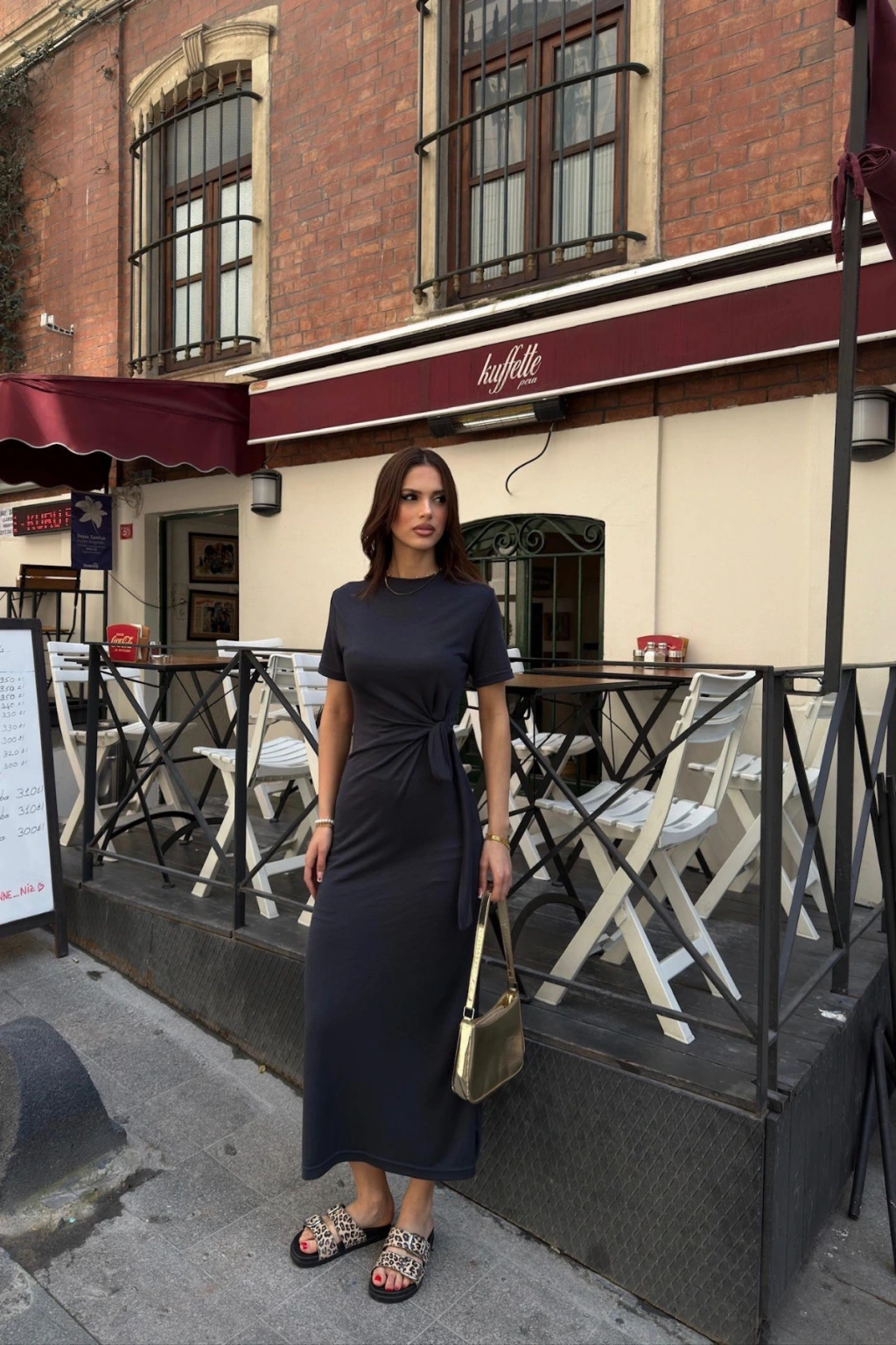 - Rahat kesimi ile günlük kullanım için ideal, siyah renkli modal kumaştan üretilmiş elbise.; - Yandan bağlama detayı sayesinde feminen bir görünüm sunar ve kişisel zevke göre ayarlanabilir.; - Büzgü detayı ile modern ve şık bir siluet oluştururken, kuşak detayı bel bölgesini vurgular.; - Astarsız yapısıyla hafif ve nefes alabilen bir kullanım sunar; iç göstermez.; - Basic koleksiyonun sadeliğiyle her ortamda rahatlıkla tercih edilebilir.; - Orta kalınlığındaki modal kumaşı mevsim geçişlerinde ideal konfor sağlar.; - Trend bir görünüm için kısa kollu ve bisiklet yaka tasarımıyla genç tarza hitap eder.; - Pamuklu materyali sayesinde cildinizle dost dokunuşlar yaşatır ve gün boyu rahat hissetmenizi sağlar.; - Midi boyu ile hem günlük hem de özel günlerde şıklığınızdan ödün vermeden stil sahibi olmanızı mümkün kılar.; - Comfort kalıbıyla vücudu saran ancak sıkmayan yapıya sahiptir, hareket özgürlüğünüzü kısıtlamaz.; - TR menşeli olmasıyla yerel üretim avantajını yakalarsınız.; - Yetişkin yaş grubuna uygun olarak tasarlanmıştır; zamansız parçalar arasında yerini alır.; - Trend ortamlarda dahi güncel moda akımlarıyla uyum içinde olmanız için idealdir.