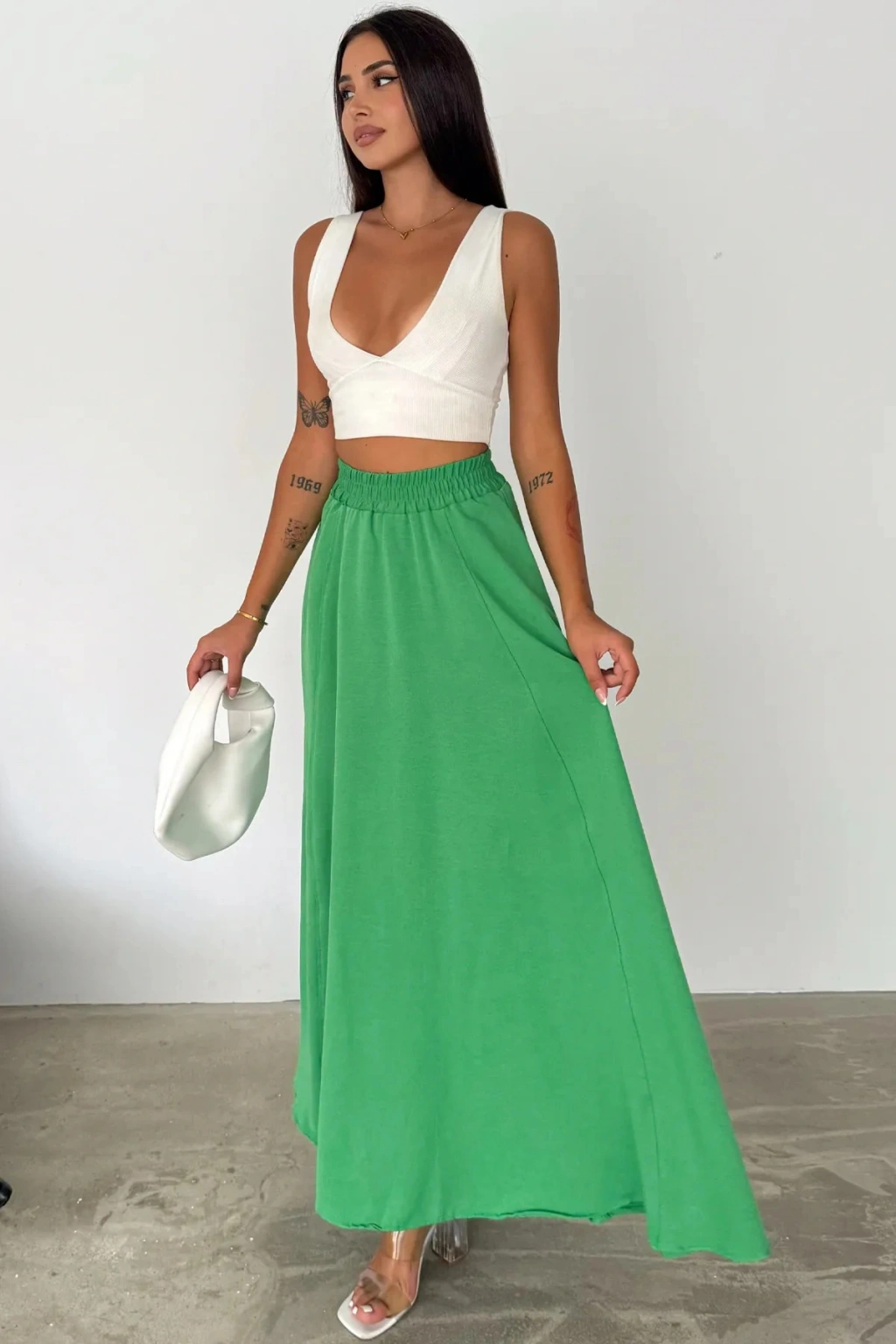 - Çift cepli tasarımı ile günlük kullanım için pratiklik sunar.; - Orta kalınlığı sayesinde mevsim geçişlerinde ideal bir konfor sağlar.; - Cep detayları, şıklığı ve fonksiyonelliği bir arada sunarak dikkat çeker.; - Kloş silueti ile feminen ve zarif bir görünüm kazandırır.; - Kemersiz yapısı, rahat bir kullanım imkanı tanırken şık duruşunu korur.; - Tüm yaş gruplarına hitap eden tasarımıyla geniş bir kullanıcı yelpazesine sahiptir.; - Tüm sezonlarda tercih edilebilen esneklikte bir ürün olarak gardırobunuzun vazgeçilmezi olur.; - Türkiye menşeli olması, yerel üretimi desteklerken kalite standartlarını korur.; - Uzun boyu ile bacakları saran ve şık bir siluet oluşturur.; - Dokuma kumaş tipi, dayanıklılığı ve konforu bir arada sunar.; - Yetişkin kadın ve kızlar için uygun tasarımıyla geniş bir kullanıcı kitlesine hitap eder.; - Düz deseniyle sadelikten yana olanların tercihi olurken kombinlemesi kolaydır.; - Kloş kalıbı sayesinde hareket özgürlüğünüzü kısıtlamaz.; - Astarsız yapısıyla rahatlık ve konforu ön planda tutar.; - Casual ve günlük ortamlarda rahatlıkla tercih edilebilir.; - Beli lastikli ek özellik ile pratik giyip çıkarma imkanı sağlar.