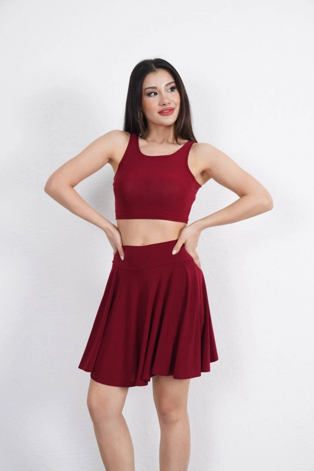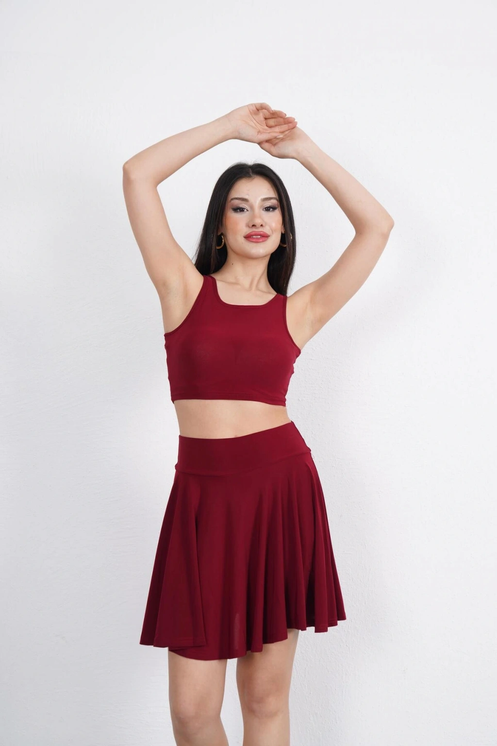 Sandy Kumaş Crop-Şort Etek İkili Takım