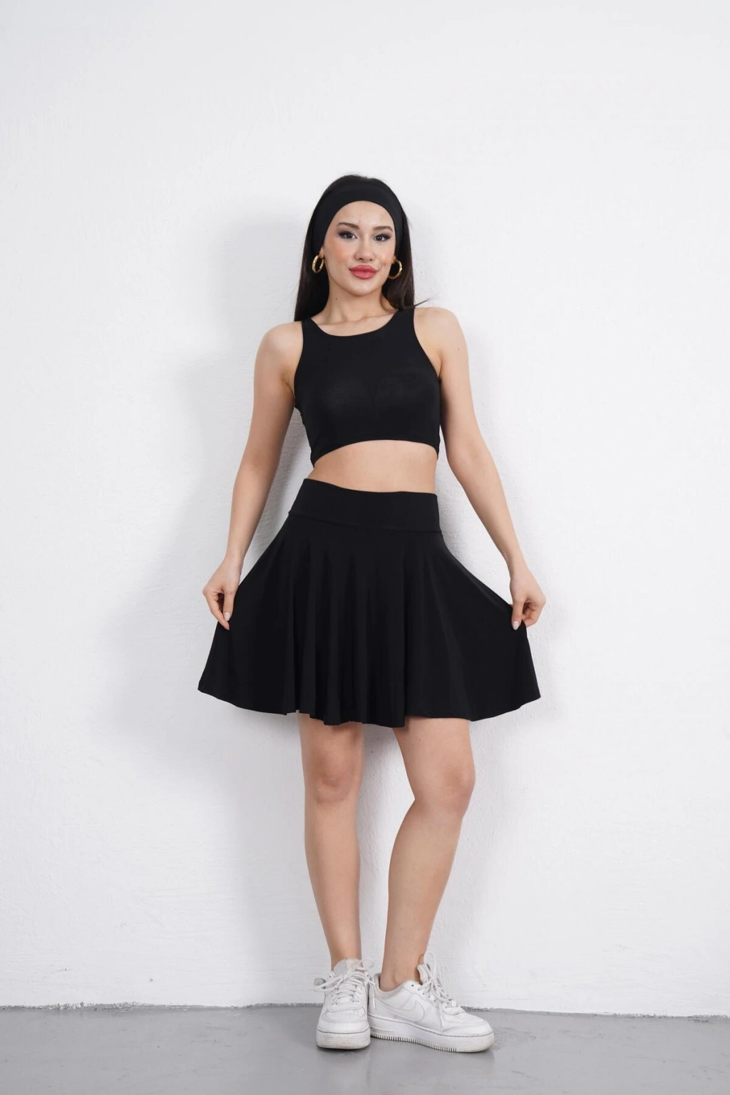Sandy Kumaş Siyah Crop-şort Etek Ikili Takım
