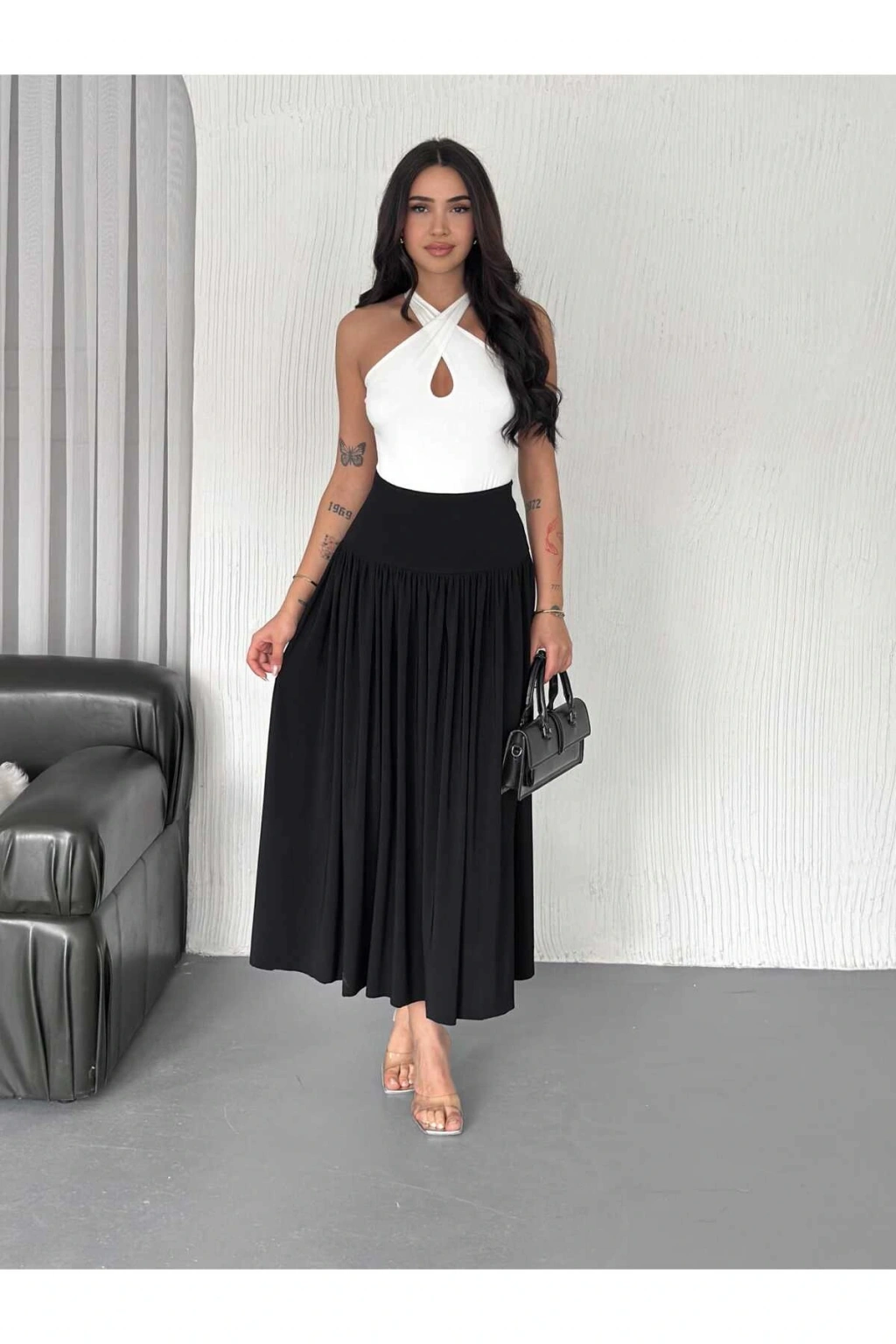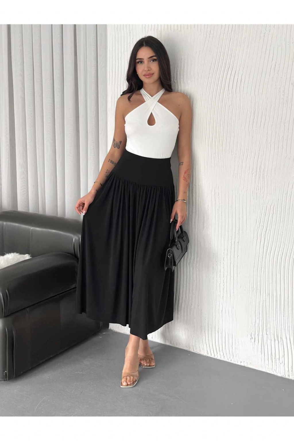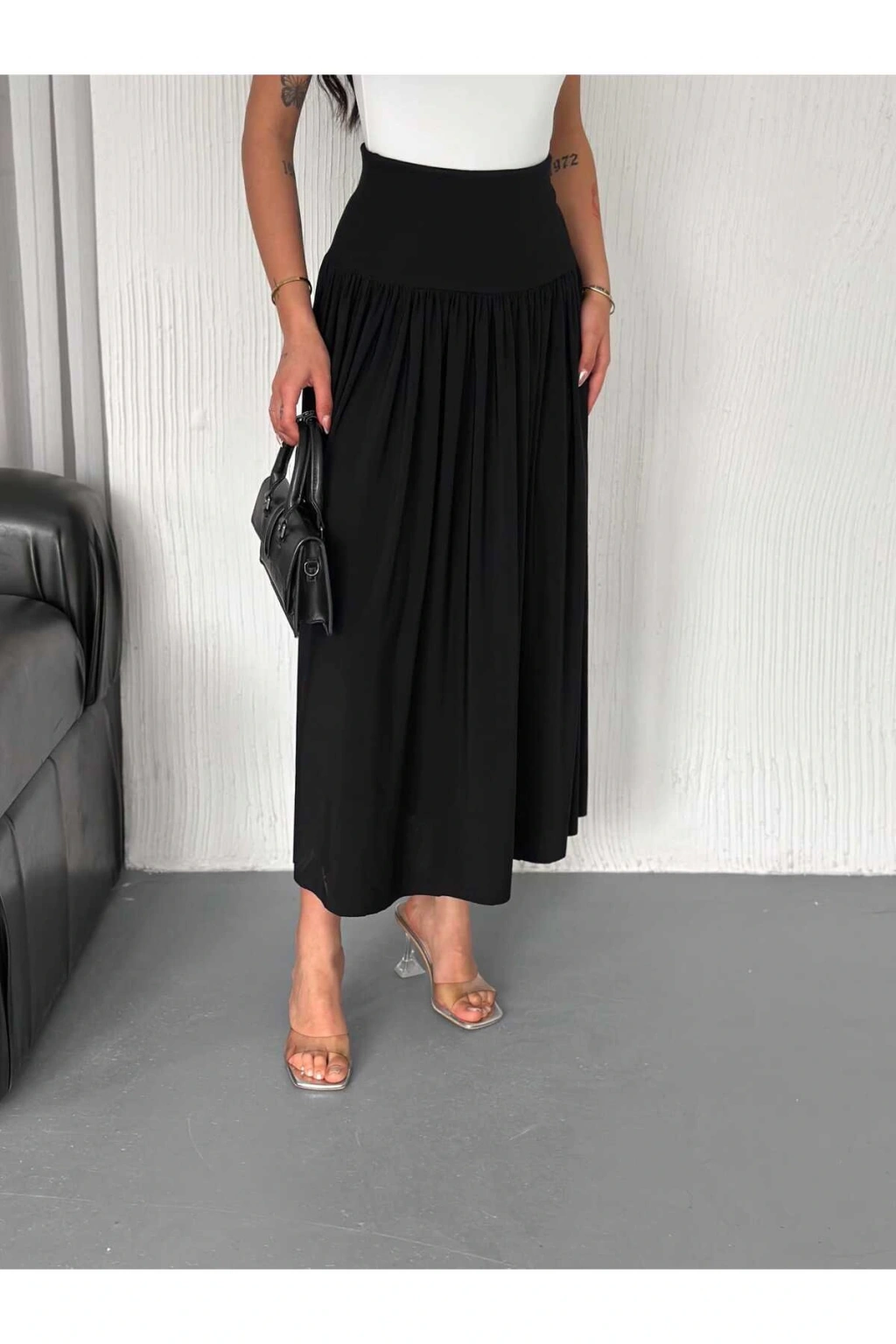 - Sandy kumaştan üretilmiş, yüksek bel tasarımı ile gün boyu rahatlık sunar.; - Düz kesimi sayesinde her türlü üst giyimle kolayca kombinlenebilir.; - Fırfırlı detayları ile şıklığınızı ön plana çıkarırken, casual tarzınıza hareket katıyor.; - Kemersiz yapısıyla pratik kullanım sağlar; ekstra aksesuar ihtiyacını ortadan kaldırır.; - Cepsiz tasarımı, minimalist bir görünüm arayanlar için idealdir.; - Orta kalınlığındaki dokusu mevsim geçişlerinde konforlu bir deneyim vaat eder.; - Kutusuz paketiyle avantajından faydalanabilirsiniz.; - Tüm sezonlarda tercih edebileceğiniz çok yönlülüğe sahiptir; yılın her zamanında gardırobunuzda yerini alır.; - Sürdürülebilirlik açısından bilinçli seçimler yapmak isteyenler için uygun değildir; ancak stil sahibi olmayı önemseyenler için mükemmeldir.; - Cool & comfort persona'ya hitap ederek günlük kullanımda rahatlık ve şıklığı bir arada sunar.; - Tekli paketi sayesinde ekstra maliyetten kaçınarak bütçenizi düşündürür.; - Beli lastikli silueti ile vücut hatlarınıza mükemmel uyum sağlayarak konforlu bir oturuş sunar.; - Midi boyu hem modern hem de zamansız bir görünüm kazandırırken farklı ayakkabı seçenekleriyle kombininize dinamizm katar.; - Dokuma kumaşı dayanıklılığı arttırarak uzun süreli kullanım imkanı tanır.; - Yetişkin yaş grubuna yönelik olarak tasarlanmıştır; herkes tarafından rahatlıkla tercih edilebilir.; - TR menşeli olmasıyla yerel üretimden gelen kaliteyi yansıtırken aynı zamanda uluslararası standartlara da uygundur.; - Kadın/kız cinsiyetine özel olarak hazırlanmış bu etek, feminen çizgilere sahip tasarımları sevenler için idealdir.; - Yıkama talimatlarına uyulduğunda formunu koruyacak şekilde üretilmiştir; böylece ilk günkü gibi yeni kalacaktır.; - Pamuk polyester karışım materyali nefes alabilir yapıda olup cilt dostudur ve uzun süreli giyimde rahatsızlık hissi yaratmaz.; - Yüksek bel kesimi sayesinde karın bölgesini toparlayarak daha fit bir görünüm elde etmenize yardımcı olur.; - Casual/günlük ortamlarda rahatça kullanılabilen bu etek, günlük aktivitelerinizde size eşlik ederken stilinizi tamamlar.; - Düz deseniyle sadelikten yana olanların vazgeçilmezi haline gelir; leke tutmayan yapısıyla bakımı kolaydır.; - Astarsız oluşu hafifliği arttırarak hareket özgürlüğü sağlarken aynı zamanda temiz bir görünüm sergiler.; - Relaxed kalıbıyla vücudu sarmayan geniş kesimi sayesinde gün içindeki tüm aktivitelerinizde size eşlik eder.