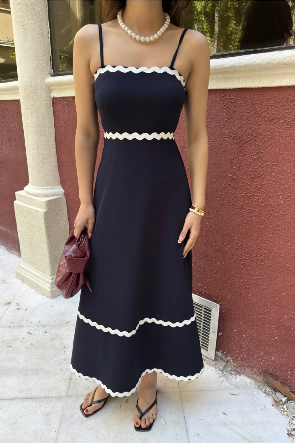 - Zarif şerit detayları ile süslenmiş, ince askılı tasarımıyla yaz aylarının vazgeçilmez parçası.; - Astarsız yapısı sayesinde hafif ve rahat bir kullanım sunar; tüm sezonlarda tercih edilebilir.; - Orta kalınlıkta kumaşı ile mevsim geçişlerinde ideal konfor sağlar.; - Tekli paket içeriğiyle kolayca kombinlenebilir ve pratik bir kullanım imkanı tanır.; - A kesim siluetiyle feminen hatları ön plana çıkaran zarif bir görünüm kazandırır.; - Kapamasız tasarımı ile modern ve şık bir duruş sergilerken, parti koleksiyonuna özel bir dokunuş katıyor.; - Sürdürülebilirlik detayına önem verilmeyen bu elbise, günlük kullanımdan özel davetlere kadar geniş bir yelpazede tercih edilebilir.; - Krep dokuma tipi sayesinde esnek yapıda olup vücut hatlarını nazikçe sararak estetik bir görünüm sunar.; - Cepsiz oluşuyla minimalist tasarım anlayışını benimseyenler için idealdir; fazla aksesuar ihtiyacını ortadan kaldırır.; - Baskısız deseniyle sadelikten yana olanların beğenisini toplarken, düz renk seçeneğiyle her tür aksesuarla uyum içinde olur.; - Kemersiz yapısıyla basit ama etkili bir stil oluştururken, seksi persona'ya sahip kadınların tarzını yansıtır.; - Regular fit kalıbıyla rahat hareket etme özgürlüğü verirken aynı zamanda şıklığından ödün vermez.; - Örme kumaşı yumuşak dokusuyla teninizde gün boyu konfor sağlar.; - Maxi boyu sayesinde hem şık hem de zarif bir görünüm elde edersiniz; uzun boylular için mükemmel seçimdir.; - Yetişkin yaş grubuna hitap eden bu elbise, her yaştan kadının gardrobunda yerini almayı hak ediyor.; - Türkiye menşeli olmasıyla yerel üretim avantajlarından faydalanırken kalite standartlarına uygunluğu garanti altına alınır.; -Pamuklu materyali cildinizle dosttur; nefes alabilir yapıda olduğu için terlemeyi minimize eder.; - Parti ortamları için ideal olan bu elbiseyle göz alıcı anlar yaşayabilirsiniz; enerjinizi yansıtacak şekilde tasarlanmıştır.; - İnce askılı kol boyu omuzları serbest bırakarak feminen çizgilere vurgu yaparken bronzlaşmış bacakların da ön plana çıkmasını sağlar.; -Düz deseniyle kolayca kombinlenebilir; farklı aksesuarlarla kişisel zevkinize göre özelleştirilebilir.