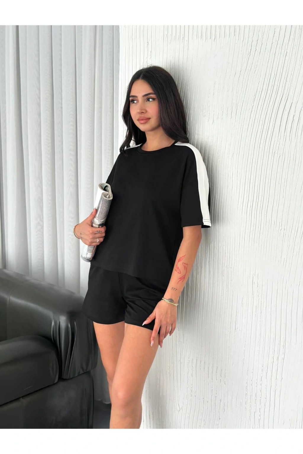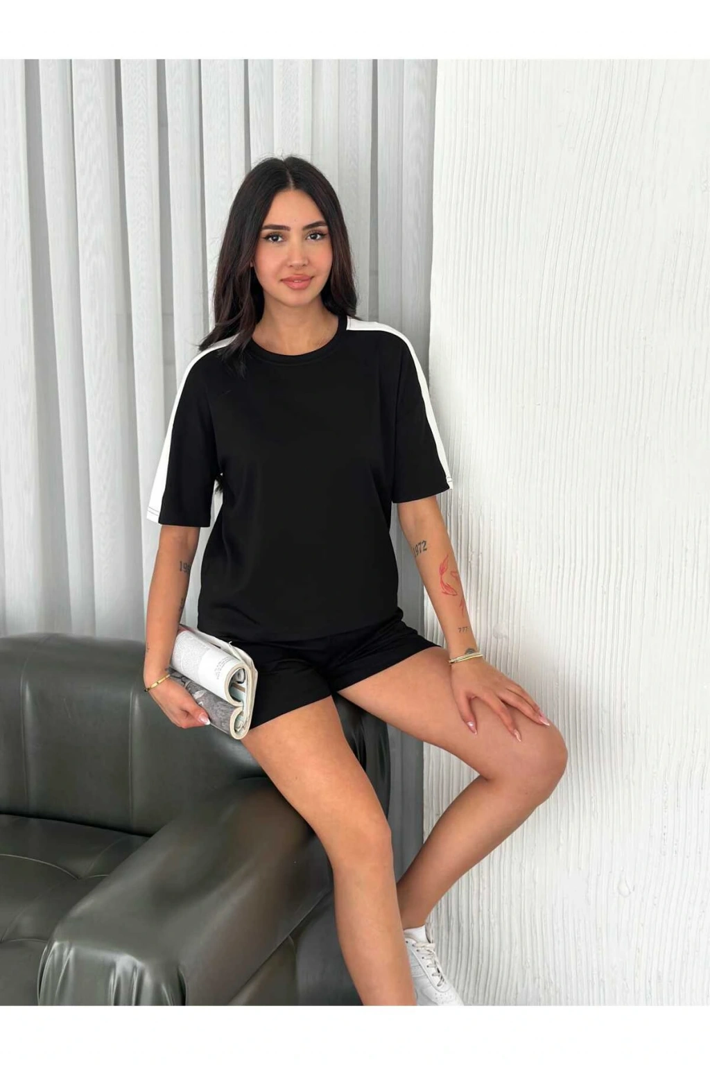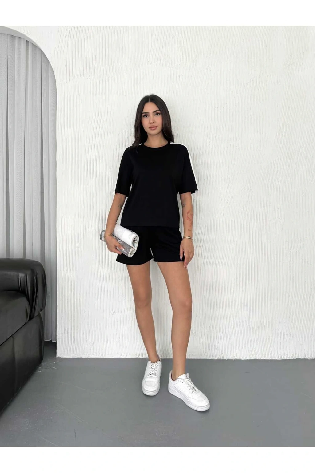 - Orta kalınlıkta kumaşı ile mevsim geçişlerinde ideal konfor sunar.; - Şerit detayı ile modern ve şık bir görünüm kazandırır.; - İki parçadan oluşan takım, pratik kullanım için tasarlanmıştır.; - Bağlama veya bağcık detayı sayesinde kişisel zevke göre ayarlama imkanı sağlar.; - Her mevsime uygun, casual tarzda günlük giyim için idealdir.; - Beli lastikli tasarımı ile rahat hareket etme özgürlüğü sunar.; - Baskısız deseniyle sade ve zamansız bir stil oluşturur.; - Çift cepli yapısı küçük eşyalarınız için pratik saklama alanları sunar.; - Lastikli bel detayı sayesinde gün boyu konforlu bir kullanım sağlar.; - Bağcıklı kemer/kuşak ile farklı kombin seçenekleri yaratma imkanına sahipsiniz.; - Bisiklet yakası rahatlıkla giyilip çıkartılabilen şık bir detaydır.; - Düz kesimiyle vücut hatlarınıza uyum sağlayarak rahat bir oturuş sunar.; - Dokuma kumaşı dayanıklılığı arttırarak uzun süreli kullanım vaat eder.; - Normal boy tasarımıyla her bedene uygunluk gösterir.; - Yetişkinler için idealdir; genç ve dinamik tarzınıza hitap eder.; - Türkiye'de üretilmiş olması yerel üretim desteğini teşvik ederken kalite standartlarını korur.; - Düşük kol tipiyle yaz aylarında serinlik hissi verirken stil sahibi görünmenizi sağlar.; - Casual ortamlarda rahatlıkla tercih edebileceğiniz bu takım, günlük şıklığınızın tamamlayıcısıdır.; - T-shirt-şort alt üst takımı olarak tasarlanmıştır; kombin yapmayı kolaylaştırır.; - Kısa kol boyu yaz aylarında serin kalmanız için idealdir.