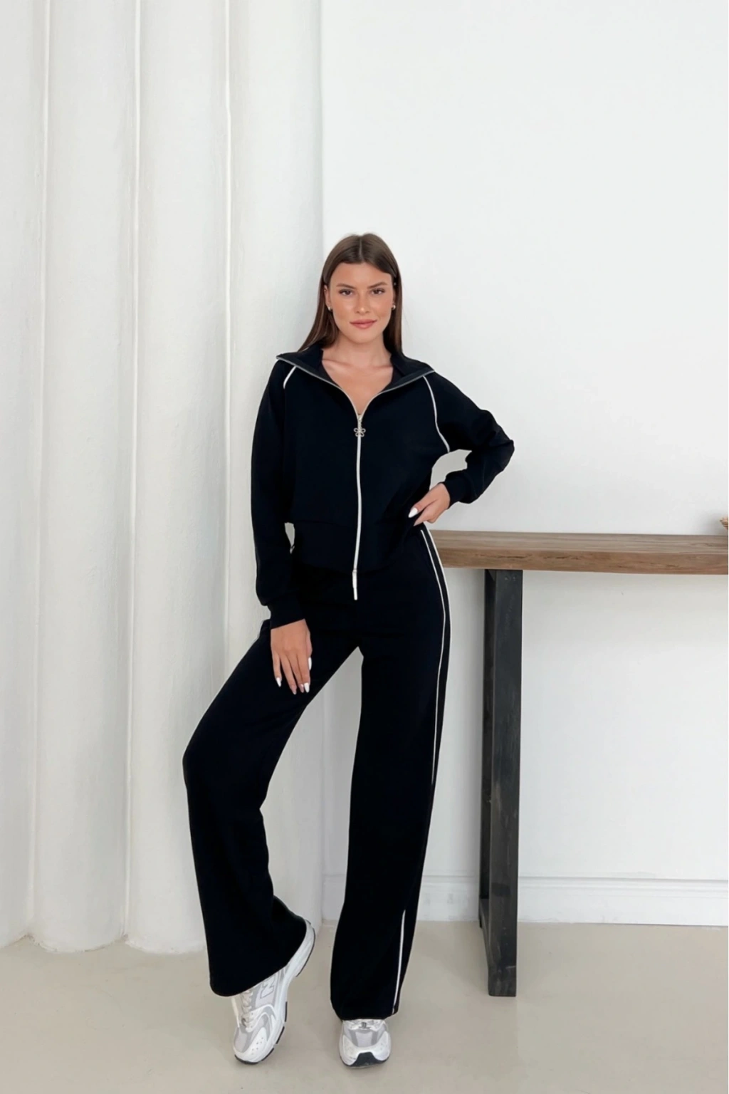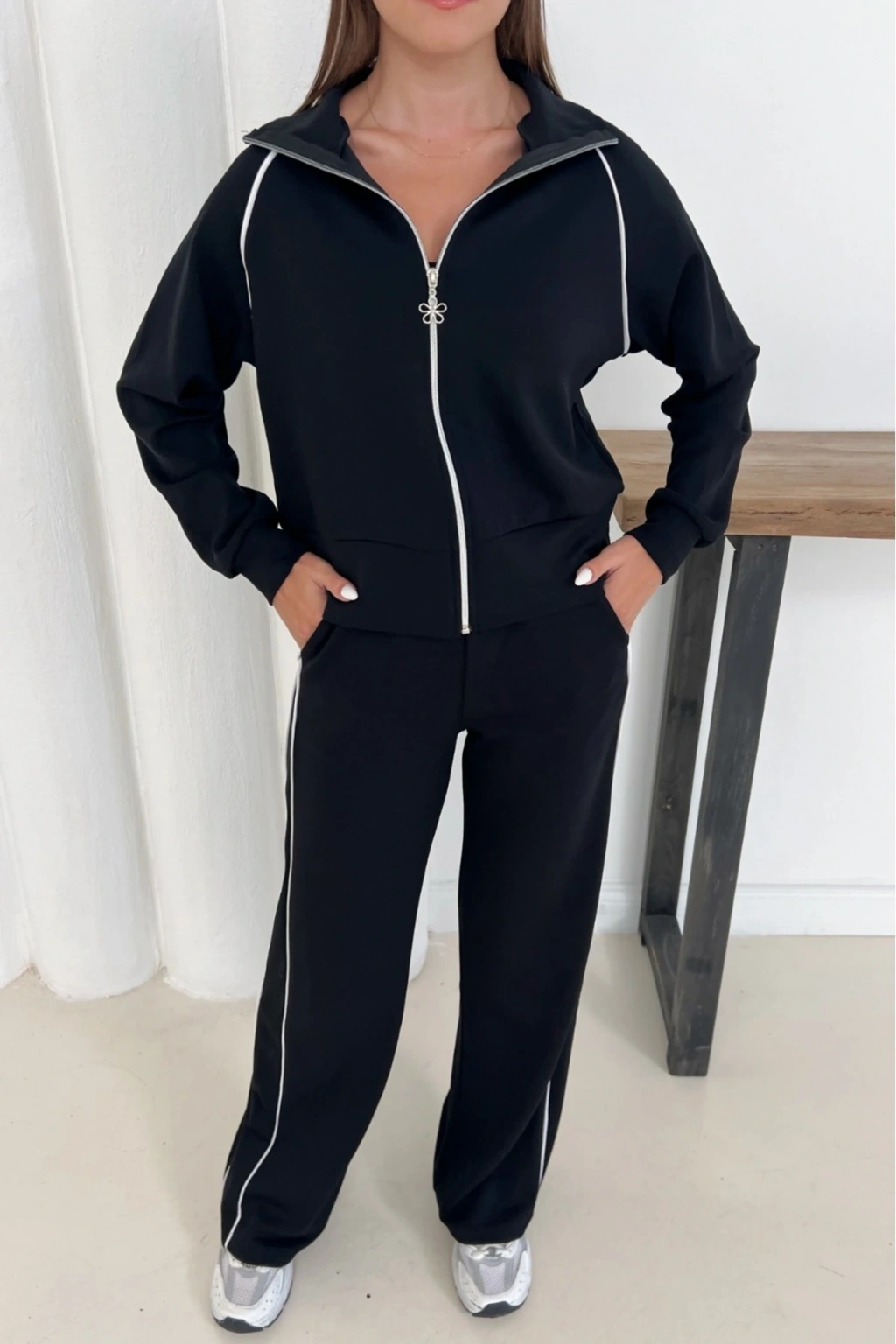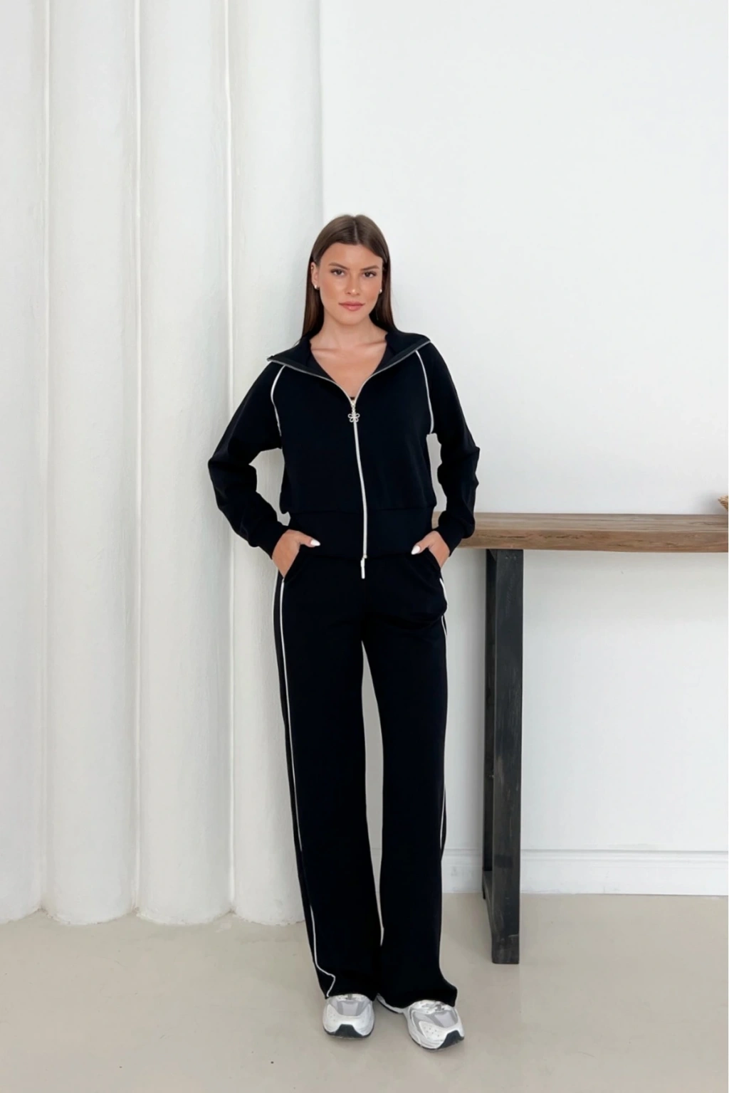 Siyah Modal Kumaş Şeritli Eşofman Takımı