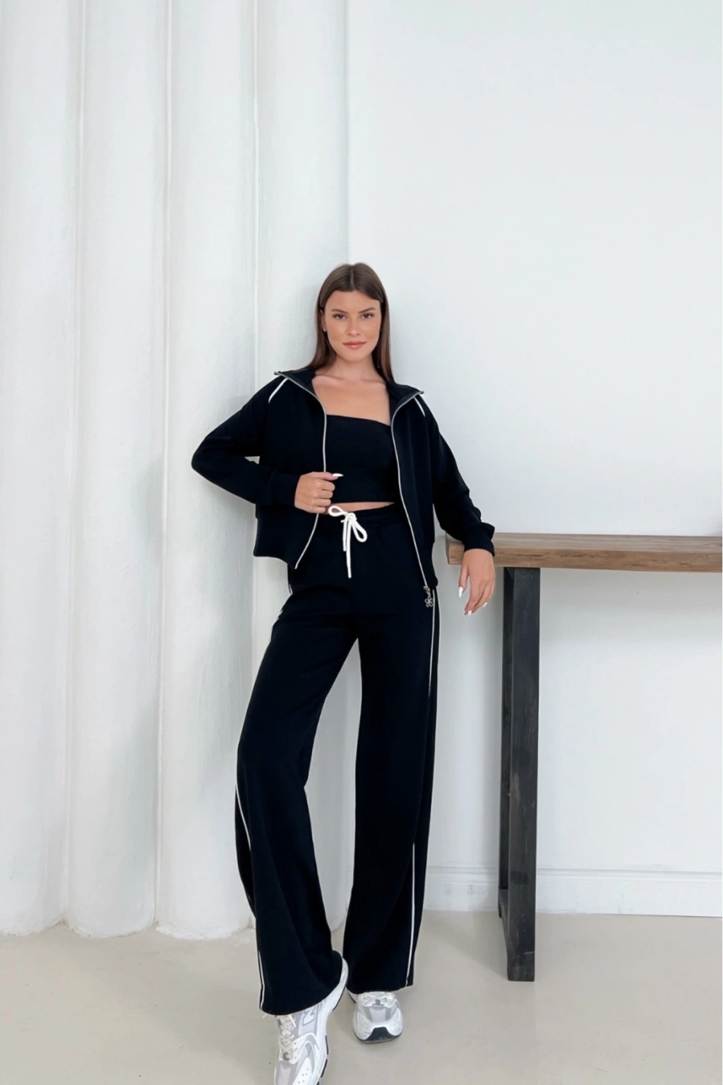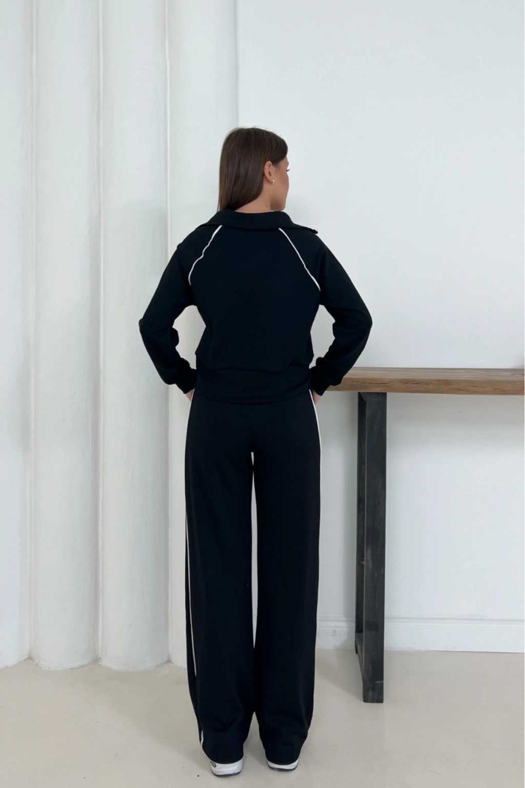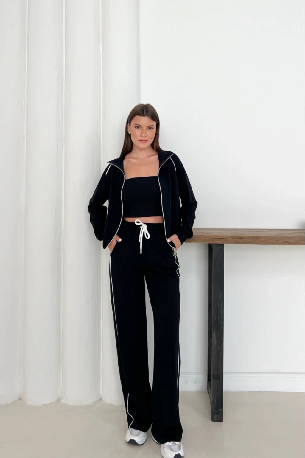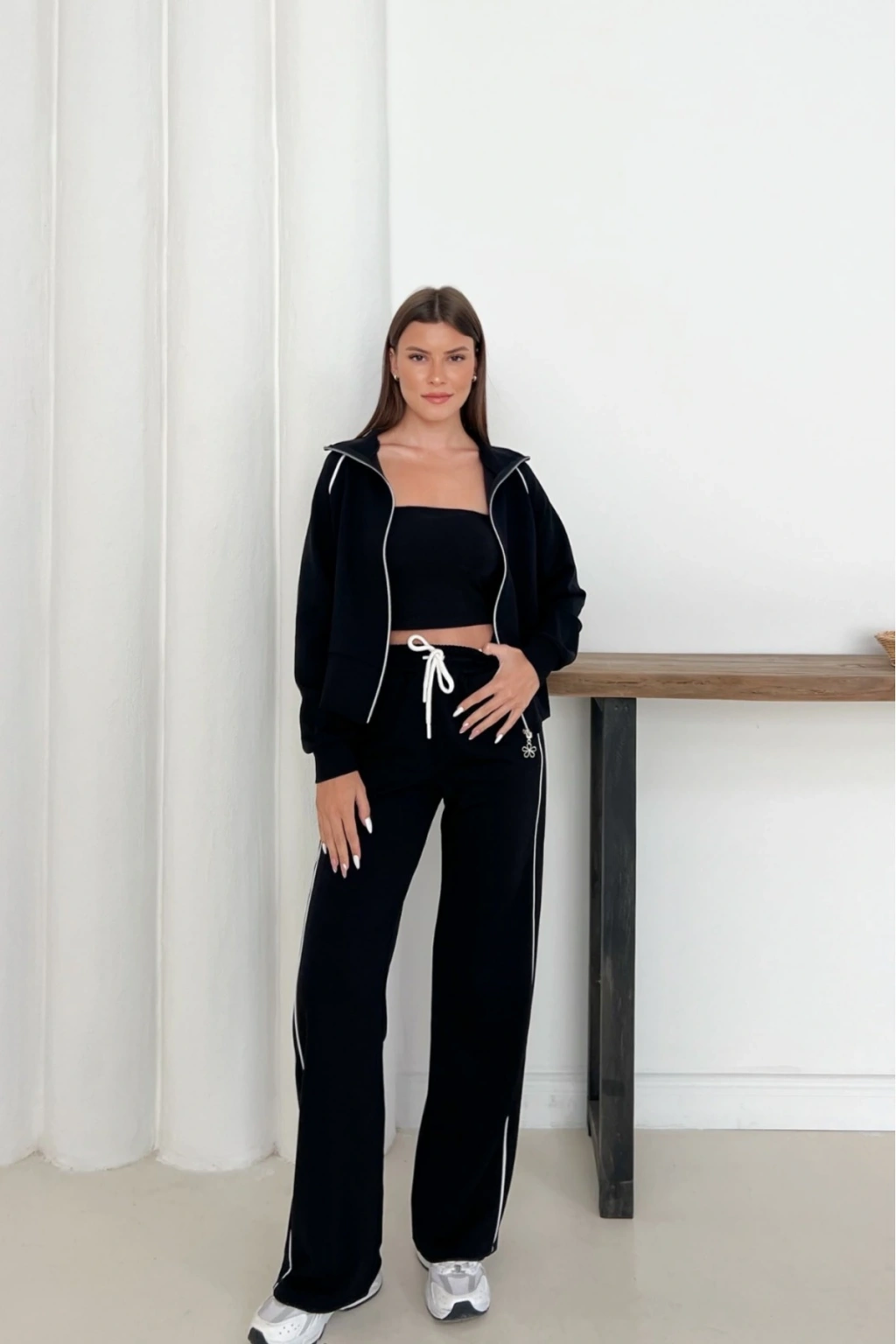 Siyah Modal Kumaş Şeritli Eşofman Takımı