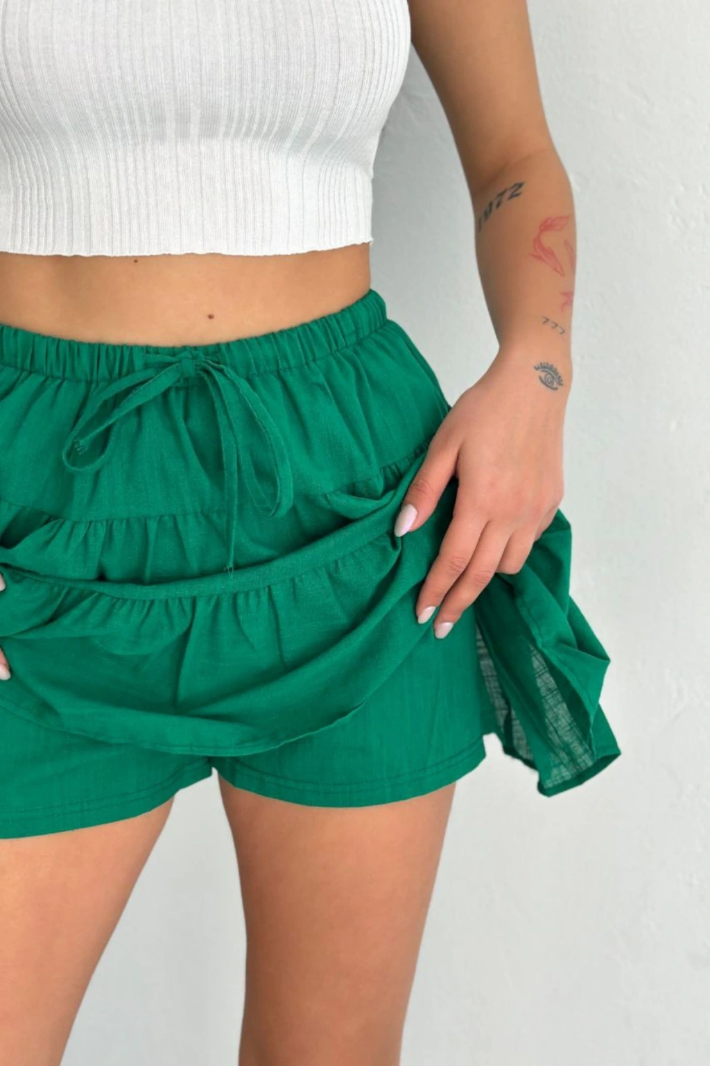 - Klasik ve zamansız tasarımıyla her gardıropta yerini alacak düz kesim keten şort etek.; - Günlük kullanım için ideal, bağcıklı bel detayına sahip rahatlık sunar.; - Flam keten dokuması sayesinde hafif ve nefes alabilen yapıya sahiptir.; - Cepsiz yapısı ile minimalist bir görünüm sağlar; pratikliği ön planda tutar.; - Orta kalınlığındaki kumaşı mevsim geçişlerinde konforlu bir deneyim sunar.; - Kutusuz paketiyle ekstra maliyetten tasarruf ederken, kolayca temin edilebilir.; - Her sezon tercih edebileceğiniz çok yönlülüğe sahip tasarım; işlevsellik ve stil dengesi sağlar.; - Sürdürülebilirlik bilincine hitap etmese de, dayanıklılığı ve uzun ömürlü kullanımıyla dikkat çeker.; - Cool & comfort persona'ya uygun olarak tasarlanmıştır; hem şık hem de rahat kombinler oluşturmanız için idealdir.; - Tekli paket içeriğiyle ihtiyacınız olan tek parça olarak gelir; ekstra eşyaya gerek duymadan kullanabilirsiniz.; - Mini boyu ile modern ve dinamik bir siluet çizerken, balon kalıbıyla feminen hatları ön plana çıkartır.; - Dokuma kumaşı sayesinde formunu korurken, keten materyalinin doğal güzelliğini yansıtır.; - Yetişkin yaş grubuna hitap eden bu parça, geniş kullanıcı kitlesine uyum sağlar.; - Türkiye menşeli olmasıyla yerel üretim avantajını yakalarsınız; kalite standartlarına güvenebilirsiniz.; - Kadın ve kız çocukları için uygundur; farklı yaş gruplarından kadınların gardrobunda yerini alabilir.; - Beli lastikli tasarım sayesinde vücuda mükemmel otururken hareket özgürlüğü tanır.; - Astarlı yapısıyla iç göstermez ve daha profesyonel bir görünüm kazandırır.; - Şık balon kalıbı ile trendleri takip edenlerin beğenisini kazanacak zarif bir duruş sergiler.