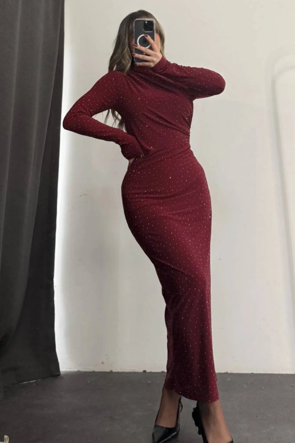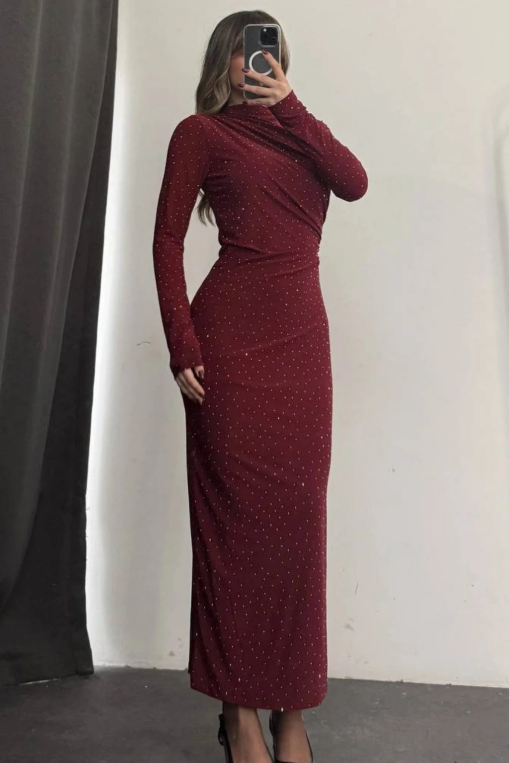 - Uzun kollu tasarımı ile mevsim geçişlerinde ve serin havalarda şıklığınızdan ödün vermeden konforlu bir kullanım sunar.; - İnce yapısı sayesinde hafif ve rahat bir deneyim sağlar, hareket özgürlüğünüzü kısıtlamaz.; - Şık ve gece ortamları için ideal olan bu elbise, zarif detaylarıyla göz alıcı bir görünüm kazandırır.; - Baskısız yüzeyi ile sade ve zamansız bir stil sunar; herhangi bir aksesuarla kolayca kombinlenebilir.; - Cepsiz tasarımı ile minimalist bir görünüm elde edilirken, fermuar veya düğme gibi pratik kapama şekilleri mevcuttur.; - Astarlı yapısı sayesinde vücut hatlarınıza mükemmel uyum sağlayarak feminen siluetinizi ön plana çıkarır.; - Kemersiz olması, belinizi serbest bırakarak rahat bir oturuş sağlar ve farklı kemerlerle kişiselleştirme imkanı tanır.; - Sandy materyali, yumuşak dokusuyla teninizde hoş bir his bırakırken dayanıklılığıyla uzun süreli kullanım vaat eder.; - Tüm sezonlar için uygun olan bu elbise, gardrobunuzdaki