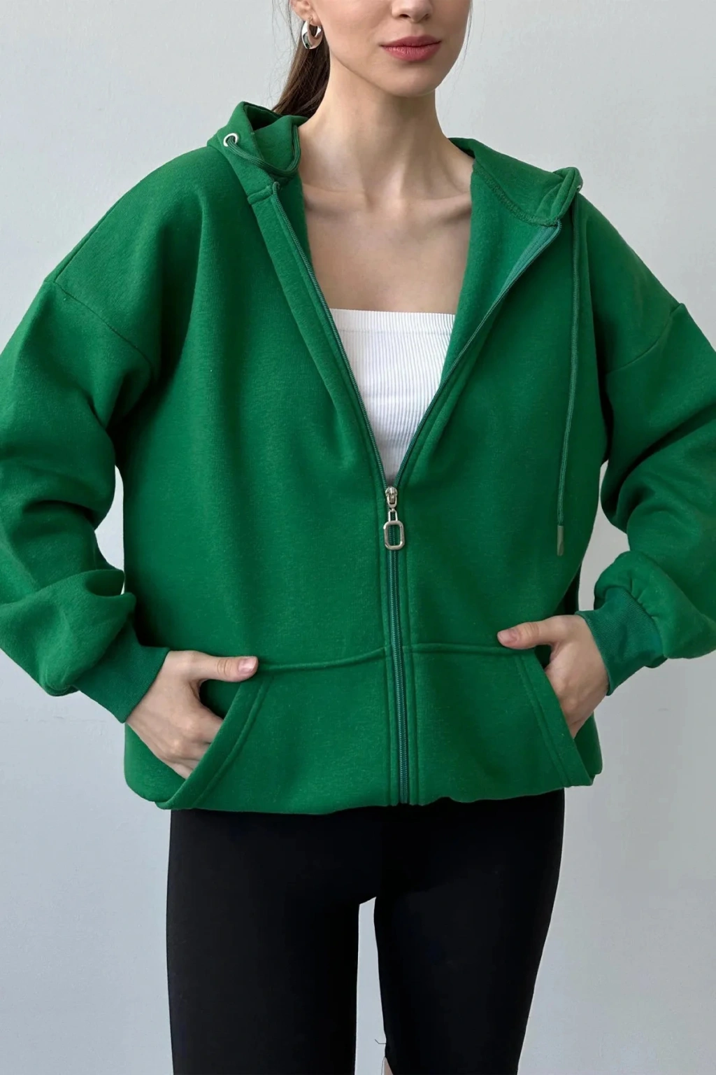 - Üç iplik penye şardonlu dokuma tipi ile üretilmiş, kalın yapısı sayesinde soğuk havalarda sıcak tutar.; - Kanguru cep tasarımı, ellerinizi sıcak tutarken eşyalarınızı güvenle taşımanız için pratik bir çözüm sunar.; - Fermuar detaylı tasarımı ile kolayca giyilip çıkartılabilir ve şık bir görünüm sağlar.; - Basic koleksiyonun bir parçası olarak, her türlü günlük kombinle uyum sağlayacak sade ve zamansız bir stil sunar.; - Cool & Comfort kişiliğiyle rahatlığı ön planda tutan bu hırka, günlük kullanım için idealdir.; - Düz deseni ve kapüşonlu yaka tipiyle modern ve şık bir görünüm kazandırırken, uzun kolları ile mevsim koşullarına uygun koruma sağlar.; - Bağcıklı ek özellikleriyle kişisel konforunuzu artırırken, kemersiz yapısıyla rahat hareket etme özgürlüğü tanır.; - Tüm yaş gruplarına hitap eden tasarımıyla geniş bir kullanıcı yelpazesine sahiptir; herkes için uygunluk gösterir.; - Kış sezonunda ideal bir seçim olan bu hırka, Türkiye menşeli üretim kalitesiyle öne çıkarken regular boy kesimiyle vücut hatlarını sarmadan rahatlık sunar.; - Örme kumaş tipi sayesinde esneklik ve konforu bir arada yaşatırken, uzun kol boyu soğuk günlerde ekstra koruma sağlar.; - Yetişkin kadın/kız cinsiyet ayrımı gözetmeksizin herkes tarafından tercih edilebilecek geniş kullanıcı kitlesine sahiptir.