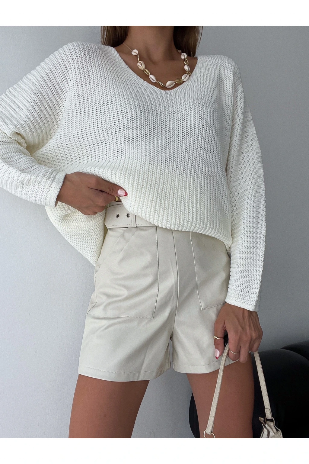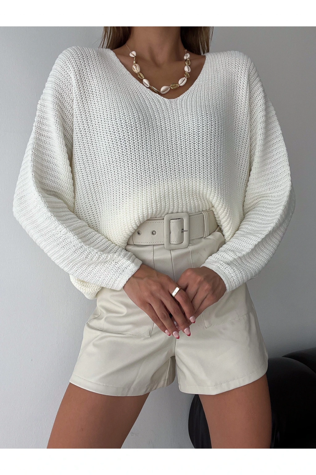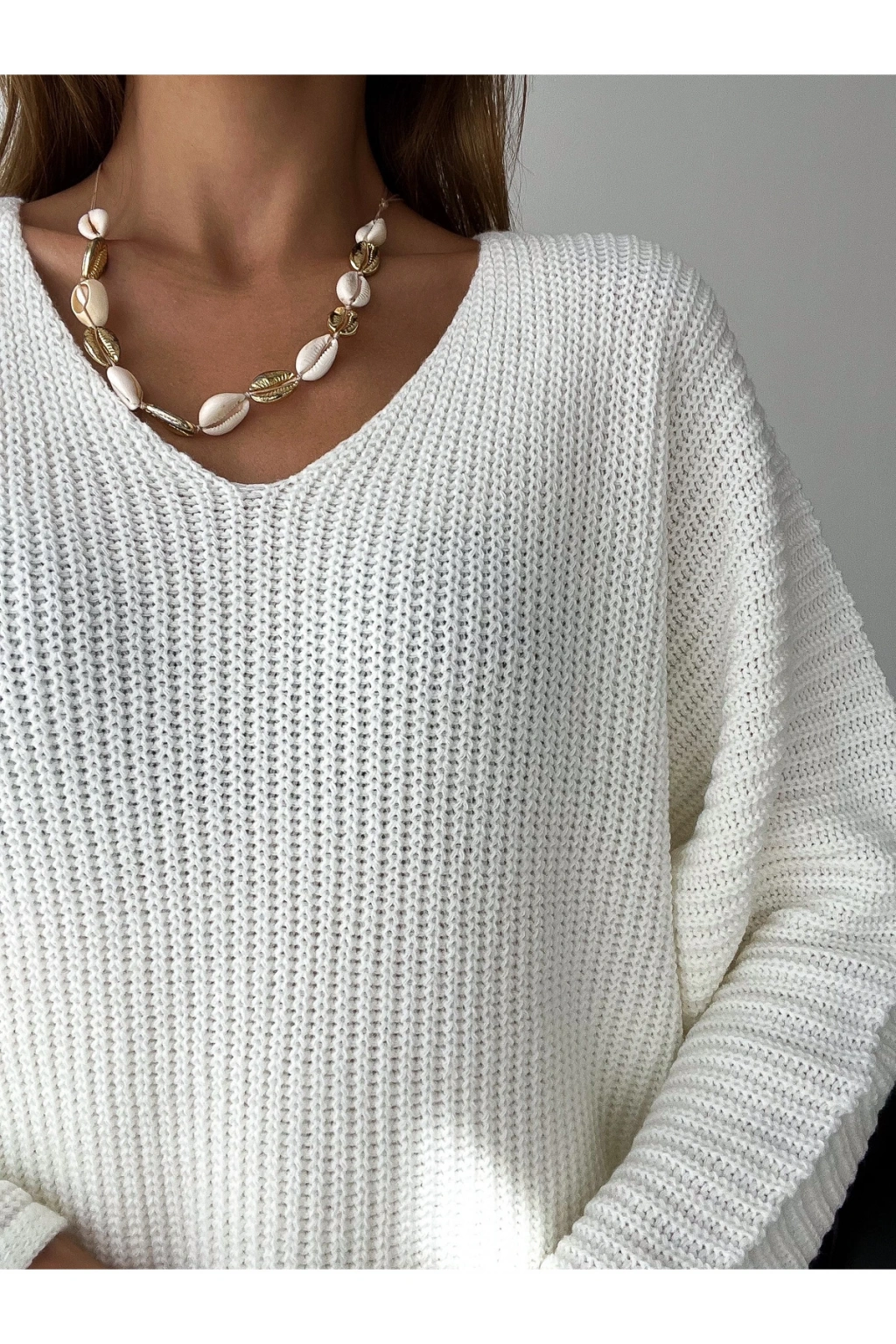 V Yaka Detaylı Modern ve Sade Örgü Kazak Modeli