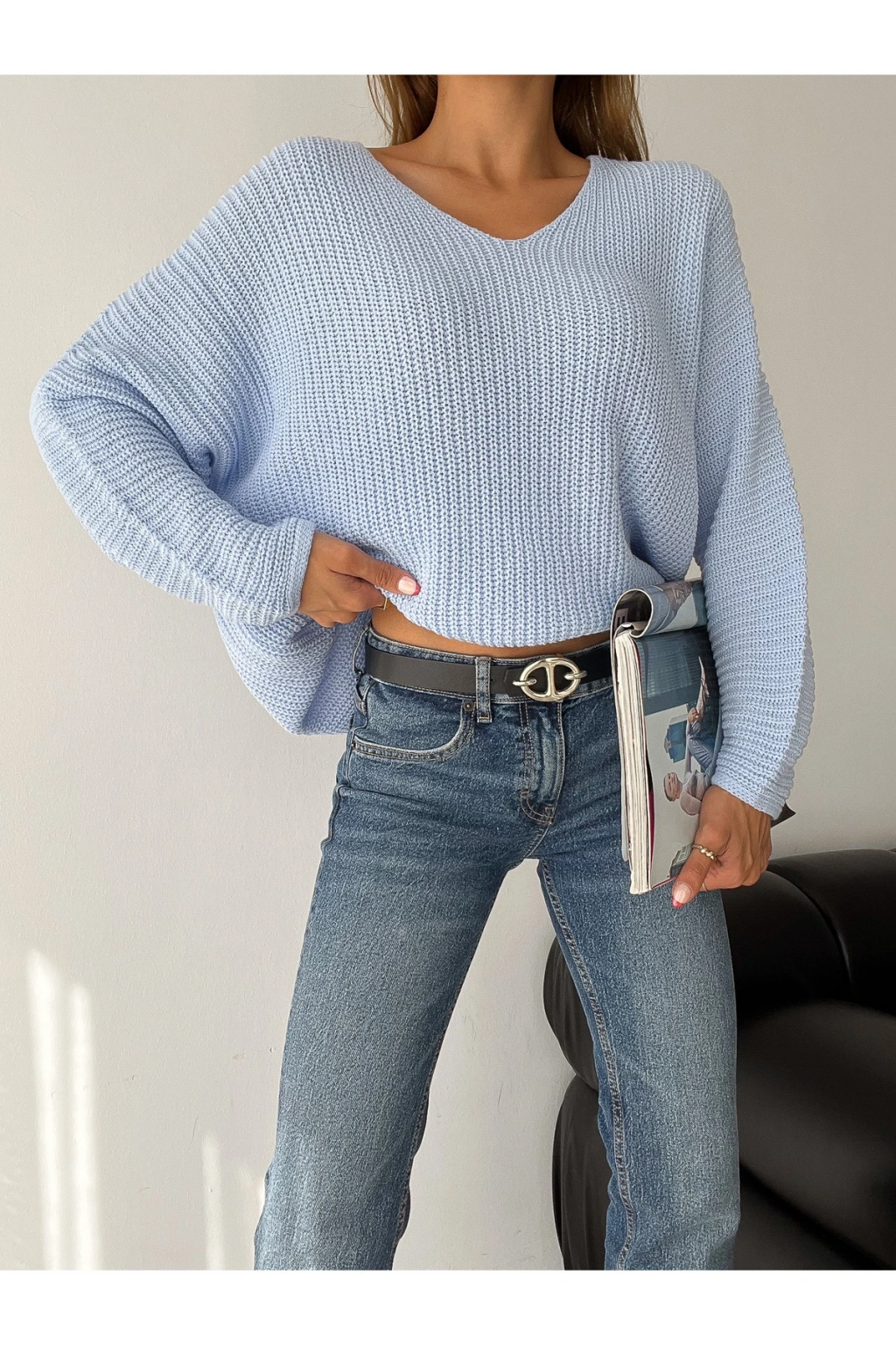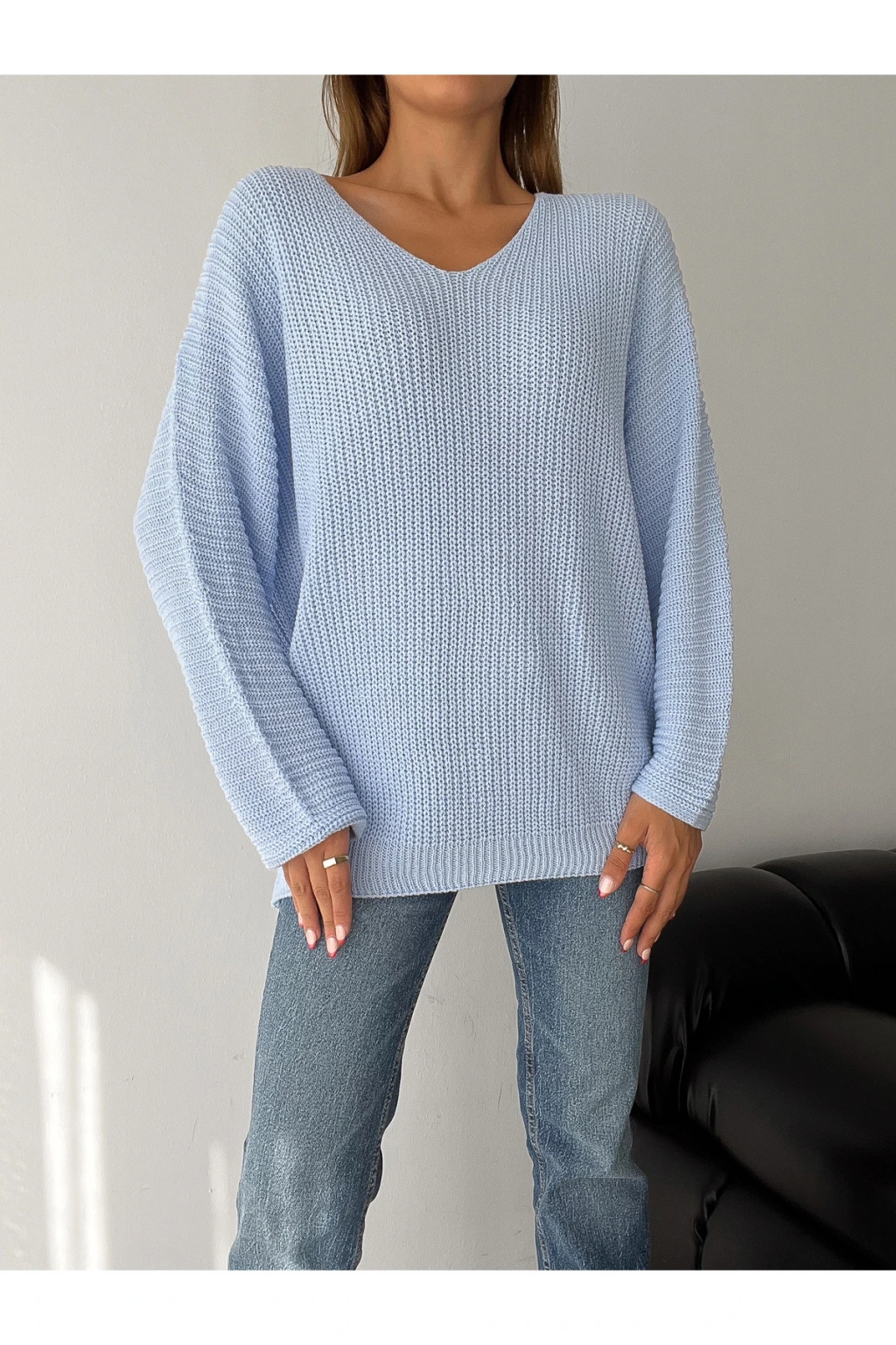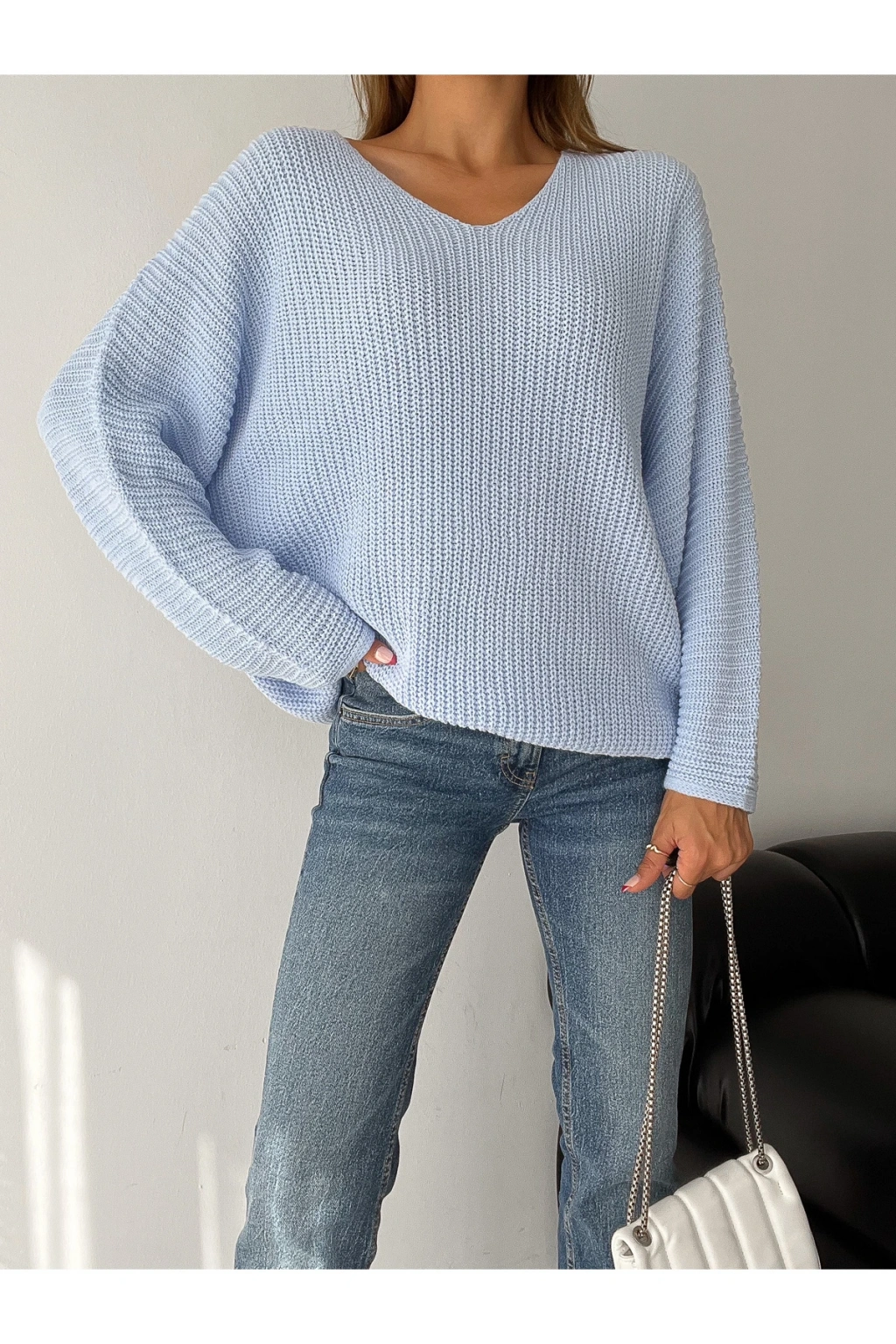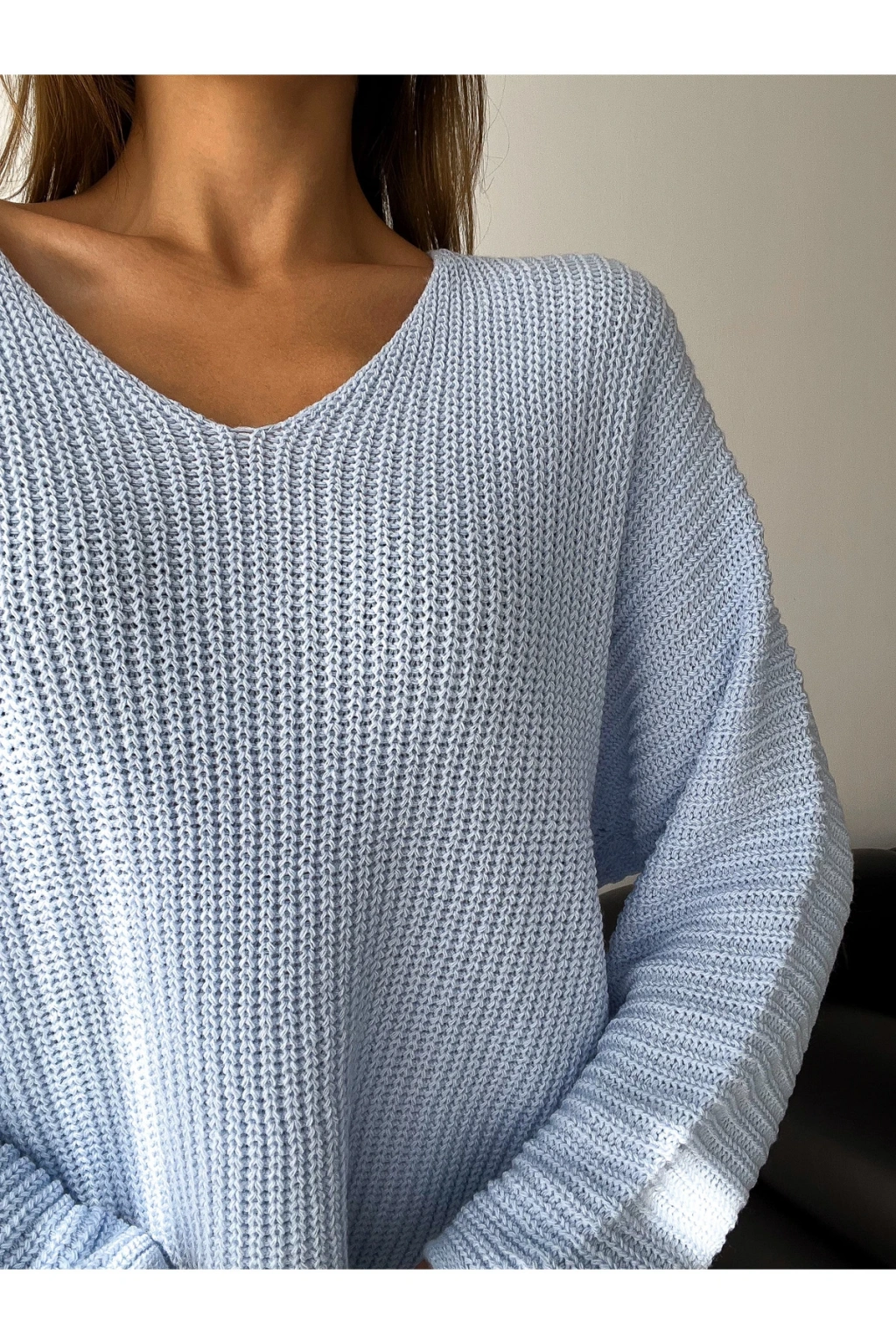 V Yaka Detaylı Modern ve Sade Örgü Kazak Modeli
