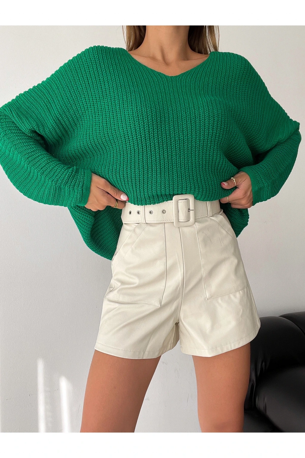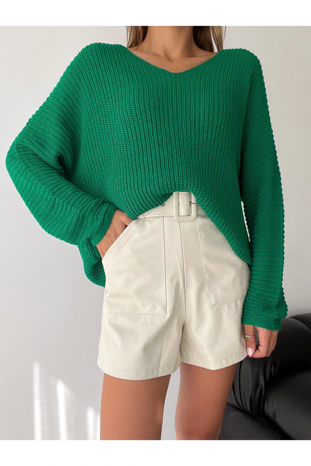 V Yaka Detaylı Modern ve Sade Örgü Kazak Modeli