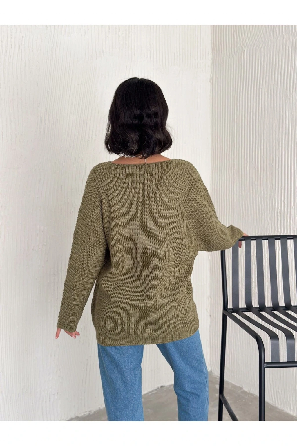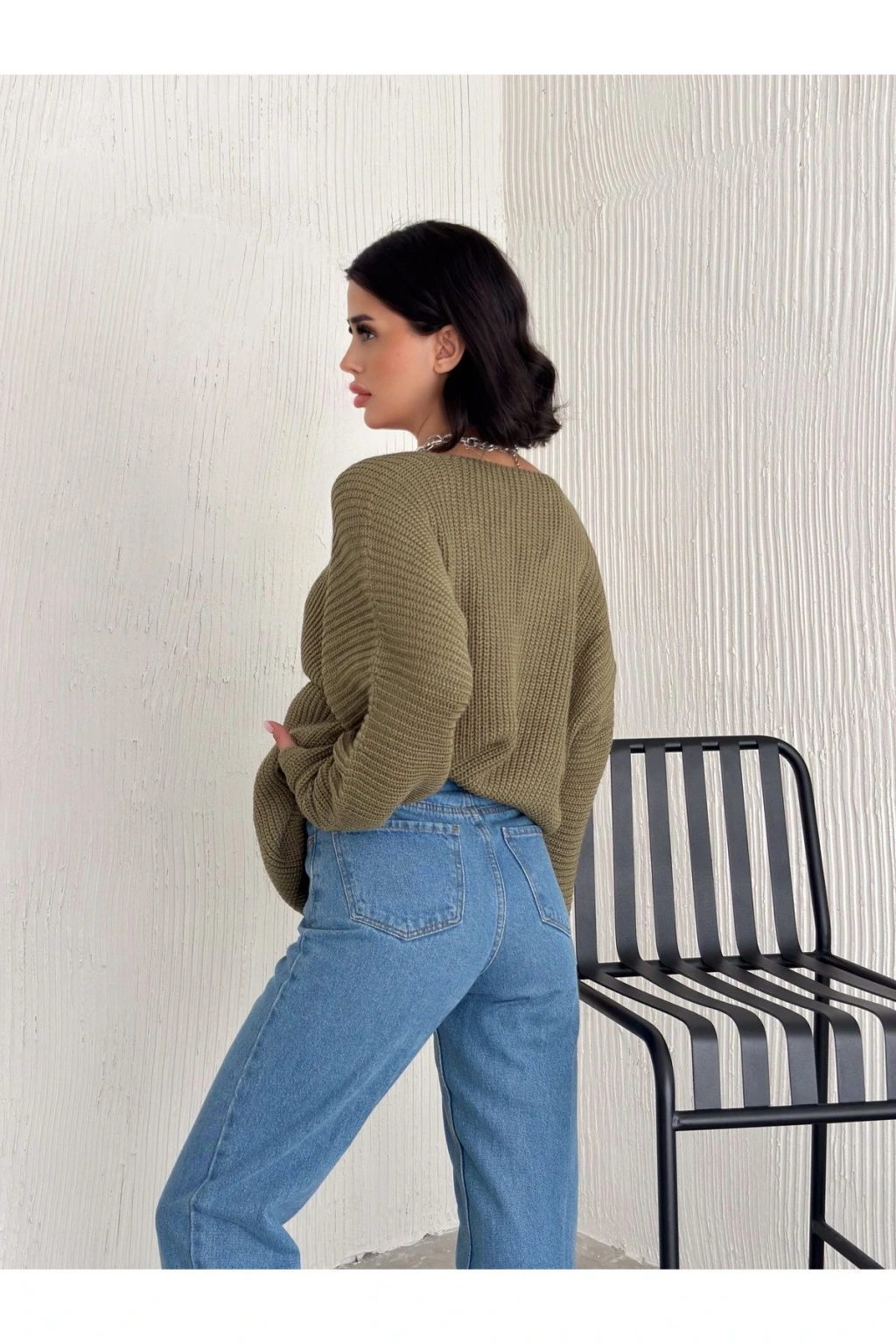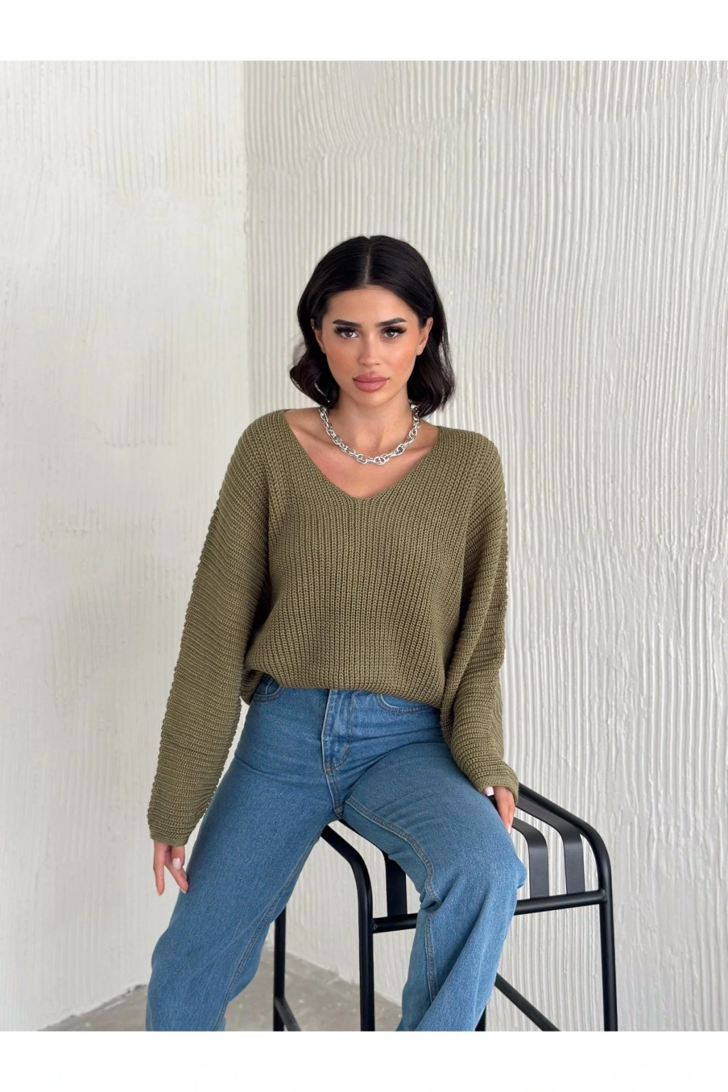 V Yaka Detaylı Modern ve Sade Örgü Kazak Modeli