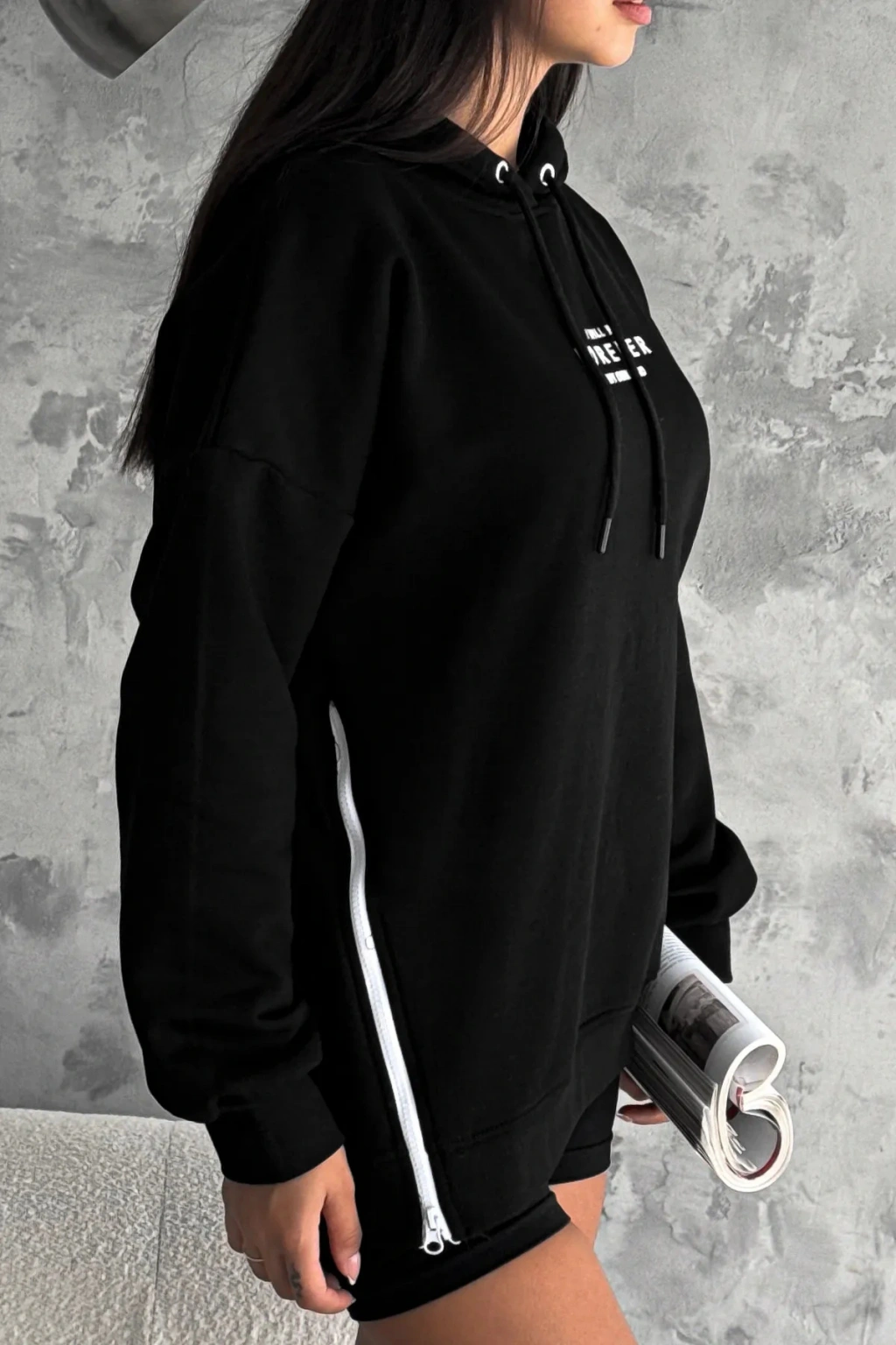 - Fermuar detaylı tasarımı ile pratik kullanım sunar ve kolayca giyilip çıkarılabilir.; - Cepsiz yapısı, günlük eşyalarınızı yanınızda taşımanız için idealdir.; - Fermuarlı kapama şekli sayesinde rahat bir kullanım sağlar ve şık bir görünüm kazandırır.; - Basic koleksiyonunun bir parçası olarak, zamansız ve her ortama uyum sağlayan bir stil sunar.; - Fashion Forward kişiliğe sahip bu sweatshirt, modern ve trend bir görünüm arayanlar için idealdir.; - Basic silueti ile sade ve şık bir duruş sergilerken, her türlü kombinle uyum sağlar.; - Günlük ortamlarda rahatlıkla tercih edilebilecek tasarımıyla konforlu bir deneyim sunar.; - Transfer baskı tekniği ile üretilen baskısı, canlı ve net desenler oluştururken dayanıklılığı arttırır.; - Sürdürülebilirlik detayının bulunmaması, ürünün çevresel etkisine dair endişeleri artırabilir.; - Ek özellik bulunmamasına rağmen, temel ihtiyaçları karşılayan temel bir parça olarak öne çıkar.; - Tüm yaş gruplarına hitap eden geniş kullanıcı yelpazesi ile herkes için uygundur.; - Kış sezonunda sıcak tutacak şekilde tasarlanmıştır; soğuk havalarda vazgeçilmez bir parça haline gelir.; - Türkiye menşeli olması yerel ekonomiye destek verirken kaliteli üretim standartlarını korur.; - Regular boy kesimiyle vücuda tam otururken rahat hareket etme özgürlüğü tanır.; - Oversize kalıbı sayesinde geniş ve rahat bir kullanım sunarken trend bir görünüm sağlar.; - Örme kumaş tipi, esneklik ve konforlu bir deneyim vaat eder.; - Yetişkin kadın/kız cinsiyet ayrımı gözetmeksizin geniş bir kullanıcı kitlesine hitap eder.; - Standart kol tipiyle klasik sweatshirt tarzını benimseyenler için uygundur.; - Pamuklu materyali cildinizle dost dokunuşlar sunarken nefes alabilir yapıda olmasıyla konfor sağlar.; - Kapüşonlu yaka tipi ile hem stil sahibi hem de fonksiyonel bir aksesuar olarak öne çıkar.; - Baskılı deseniyle dikkat çekici detaylara sahip olup, günlük kombinlerinize dinamizm katar.; - Uzun kol boyu mevsim koşullarına uygun koruma sağlarken şıklığından ödün vermez.; - 3 iplik şardonlu dokuma tipi dayanıklılığı arttırarak uzun süreli kullanım imkanı tanır.