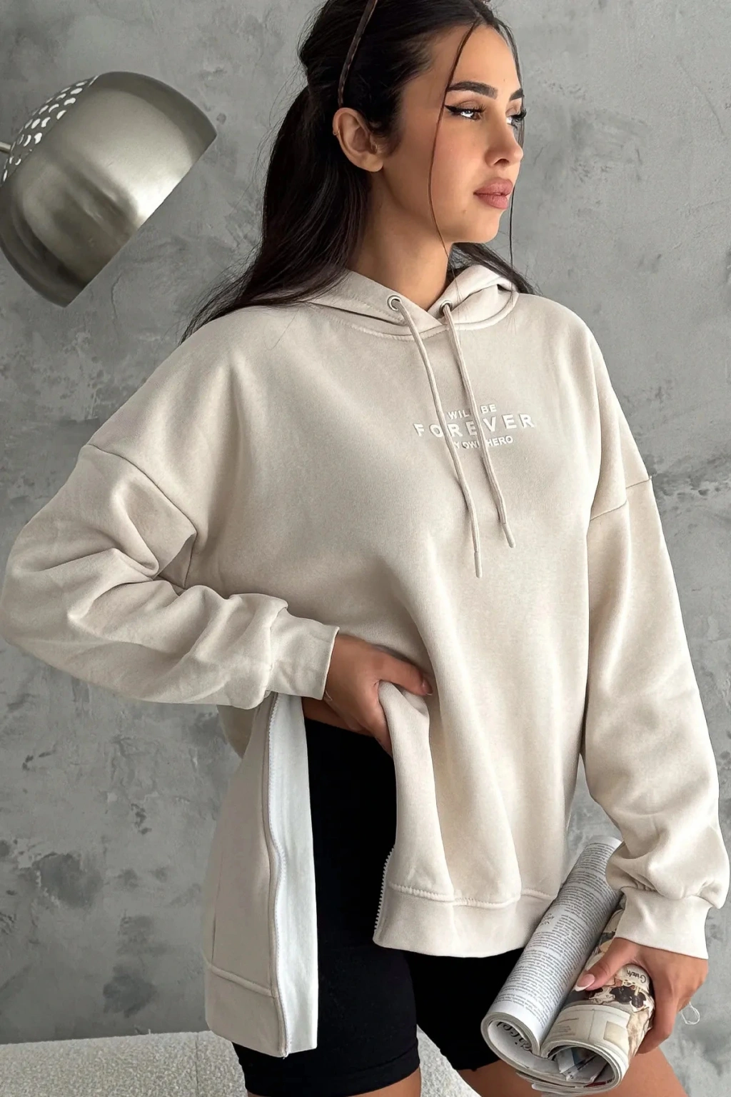 - Fermuar detaylı tasarımı ile pratik kullanım sunar ve kolayca giyilip çıkarılabilir.; - Cepsiz yapısı, günlük eşyalarınızı yanınızda taşımanız için idealdir.; - Fermuarlı kapama şekli sayesinde rahat bir kullanım sağlar ve şık bir görünüm kazandırır.; - Basic koleksiyonunun bir parçası olarak, zamansız ve her ortama uyum sağlayan bir stil sunar.; - Fashion Forward kişiliğe sahip bu sweatshirt, modern ve trend bir görünüm arayanlar için idealdir.; - Basic silueti ile sade ve şık bir duruş sergilerken, her türlü kombinle uyum sağlar.; - Günlük ortamlarda rahatlıkla tercih edilebilecek tasarımıyla konforlu bir deneyim sunar.; - Transfer baskı tekniği ile üretilen baskısı, canlı ve net desenler oluştururken dayanıklılığı arttırır.; - Sürdürülebilirlik detayının bulunmaması, ürünün çevresel etkisine dair endişeleri artırabilir.; - Ek özellik bulunmamasına rağmen, temel ihtiyaçları karşılayan temel bir parça olarak öne çıkar.; - Tüm yaş gruplarına hitap eden geniş kullanıcı yelpazesi ile herkes için uygundur.; - Kış sezonunda sıcak tutacak şekilde tasarlanmıştır; soğuk havalarda vazgeçilmez bir parça haline gelir.; - Türkiye menşeli olması yerel ekonomiye destek verirken kaliteli üretim standartlarını korur.; - Regular boy kesimiyle vücuda tam otururken rahat hareket etme özgürlüğü tanır.; - Oversize kalıbı sayesinde geniş ve rahat bir kullanım sunarken trend bir görünüm sağlar.; - Örme kumaş tipi, esneklik ve konforlu bir deneyim vaat eder.; - Yetişkin kadın/kız cinsiyet ayrımı gözetmeksizin geniş bir kullanıcı kitlesine hitap eder.; - Standart kol tipiyle klasik sweatshirt tarzını benimseyenler için uygundur.; - Pamuklu materyali cildinizle dost dokunuşlar sunarken nefes alabilir yapıda olmasıyla konfor sağlar.; - Kapüşonlu yaka tipi ile hem stil sahibi hem de fonksiyonel bir aksesuar olarak öne çıkar.; - Baskılı deseniyle dikkat çekici detaylara sahip olup, günlük kombinlerinize dinamizm katar.; - Uzun kol boyu mevsim koşullarına uygun koruma sağlarken şıklığından ödün vermez.; - 3 iplik şardonlu dokuma tipi dayanıklılığı arttırarak uzun süreli kullanım imkanı tanır.