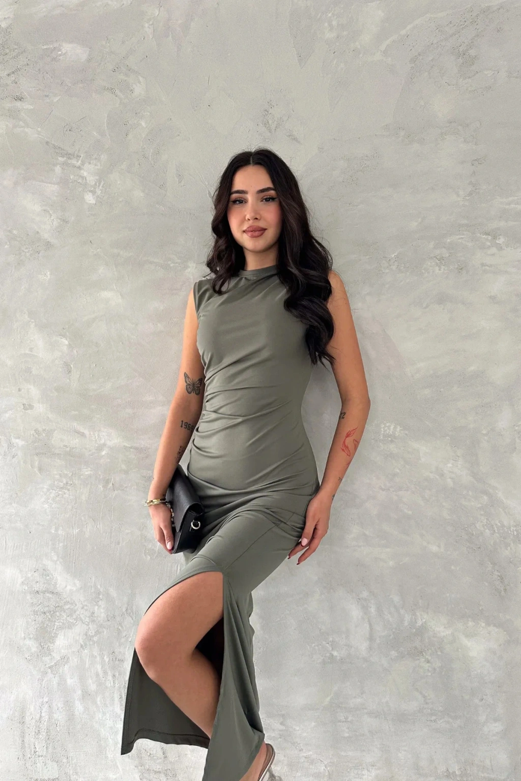 - Zarif yırtmaç detaylarıyla dikkat çeken bu elbise, her türlü özel anınızda şıklığınızı tamamlar.; - Pratik kullanım sunan fermuarlı kapama özelliği ile kolayca giyilip çıkarılabilir.; - Astar gerektirmeyen yapısı sayesinde iç göstermez ve rahat bir kullanım sağlar.; - Slim fit kesimiyle vücut hatlarınıza mükemmel uyum sağlayarak feminen bir siluet oluşturur.; - Midi boyu ile hem günlük hem de özel günlerde tercih edebileceğiniz ideal uzunluktadır.; - Dokuma kumaşı dayanıklılığı artırırken, micro dokuma tipi hafifliğiyle konforlu bir deneyim sunar.; - Kolsuz tasarımıyla yaz ayları için idealdir; serin tutar ve hareket özgürlüğü tanır.; - Bisiklet yakası modern ve zarif bir görünüm kazandırırken, düz deseniyle sadelikten yana olanların tercihi olur.; - Polyester karışımlı materyali sayesinde uzun süreli kullanım vaat ederken, tüm yaş gruplarına hitap eder.; - Mezuniyet veya balo gibi özel etkinlikler için ideal olan bu elbise, seksi kişiliğinizi ön plana çıkarmak için mükemmeldir.