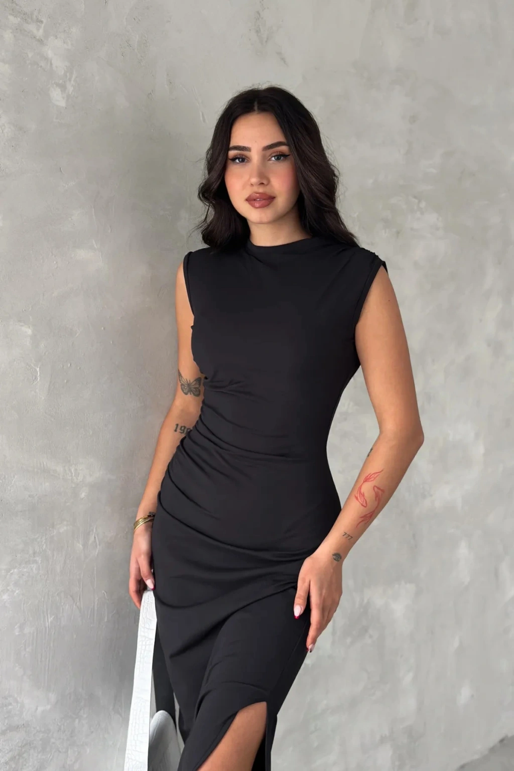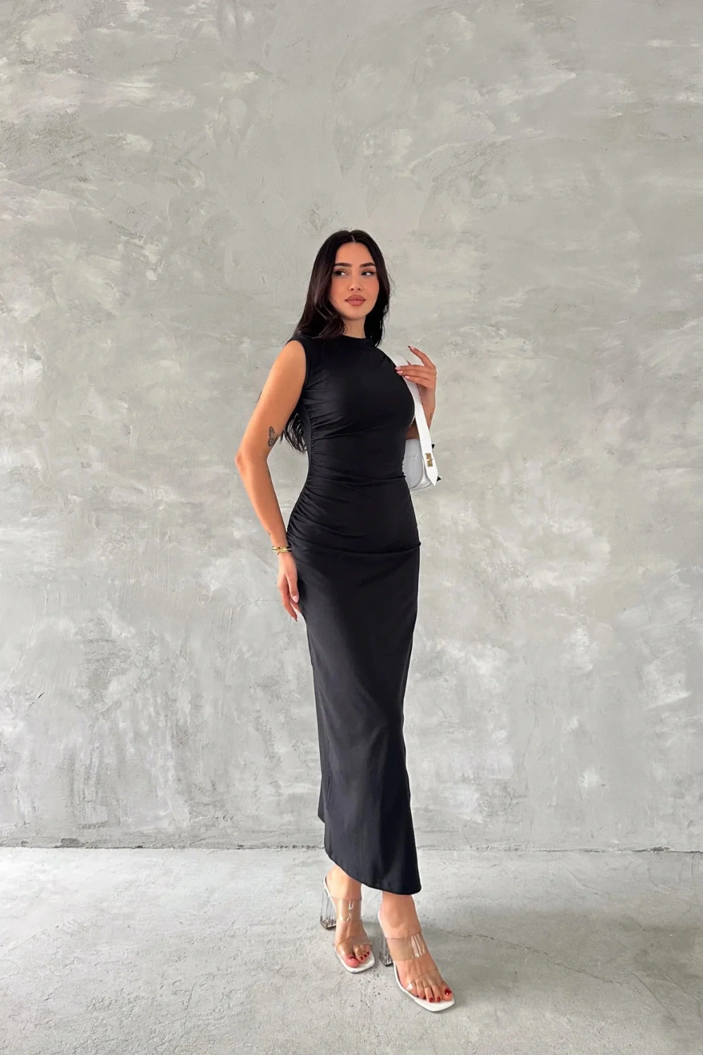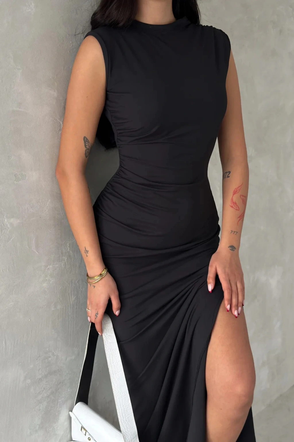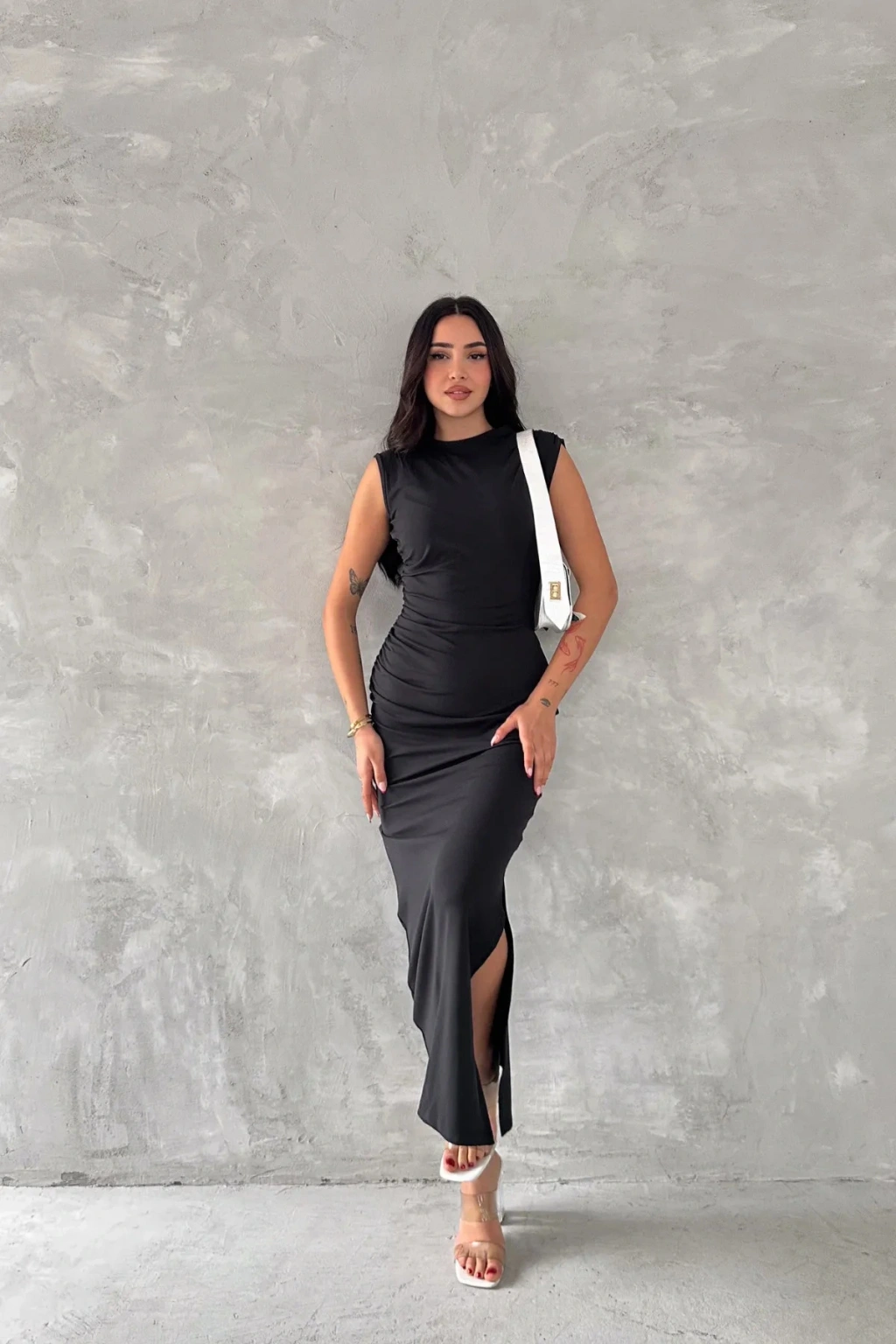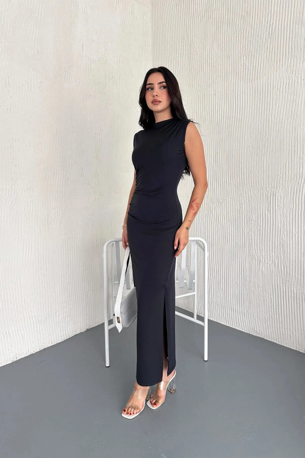 - Zarif yırtmaç detaylarıyla dikkat çeken bu elbise, her türlü özel anınızda şıklığınızı tamamlar.; - Pratik kullanım sunan fermuarlı kapama özelliği ile kolayca giyilip çıkarılabilir.; - Astar gerektirmeyen yapısı sayesinde iç göstermez ve rahat bir kullanım sağlar.; - Slim fit kesimiyle vücut hatlarınıza mükemmel uyum sağlayarak feminen bir siluet oluşturur.; - Midi boyu ile hem günlük hem de özel günlerde tercih edebileceğiniz ideal uzunluktadır.; - Dokuma kumaşı dayanıklılığı artırırken, micro dokuma tipi hafifliğiyle konforlu bir deneyim sunar.; - Kolsuz tasarımıyla yaz ayları için idealdir; serin tutar ve hareket özgürlüğü tanır.; - Bisiklet yakası modern ve zarif bir görünüm kazandırırken, düz deseniyle sadelikten yana olanların tercihi olur.; - Polyester karışımlı materyali sayesinde uzun süreli kullanım vaat ederken, tüm yaş gruplarına hitap eder.; - Mezuniyet veya balo gibi özel etkinlikler için ideal olan bu elbise, seksi kişiliğinizi ön plana çıkarmak için mükemmeldir.