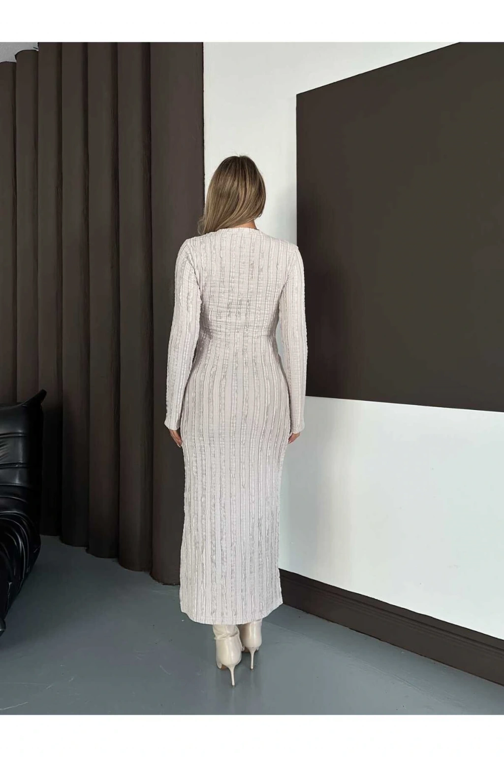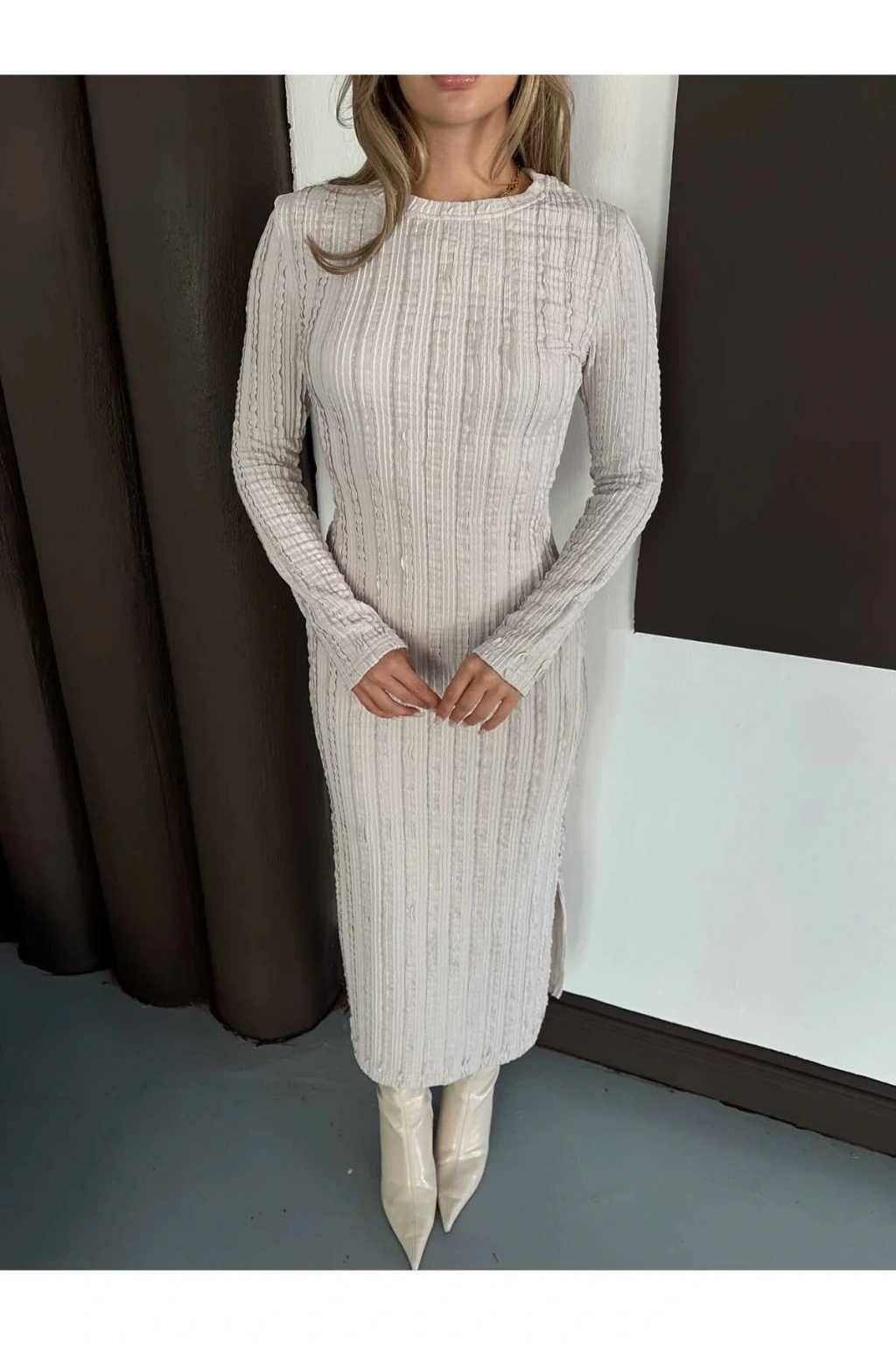 - Uzun kollu tasarımı ile mevsim geçişlerinde ve serin havalarda konforlu bir kullanım sunar.; - Düz kesimi sayesinde rahat bir oturuş sağlar ve günlük kullanım için idealdir.; - Casual tarzıyla her ortamda şıklığınızı korumanızı sağlar; arkadaş buluşmalarından günlük aktivitelere kadar.; - Yırtmaç detayı ile feminen ve modern bir görünüm kazandırırken, hareket özgürlüğünüzü kısıtlamaz.; - Bisiklet yaka tasarımı, sade ve şık bir boyun hattı sunarak zarif bir duruş sergiler.; - Tüm sezonlarda rahatlıkla tercih edebileceğiniz bu elbise, gardırobunuzun vazgeçilmez parçası olacak.; - Yırtmaç detayının eklenmesiyle elbisenin silueti daha dinamik ve çekici hale gelir.; - Slim kalıbı sayesinde vücut hatlarınıza uyum sağlayarak şık bir görünüm sunar.; - Dokuma kumaşı dayanıklılığı arttırarak uzun süreli kullanım vaad eder.; - Türk menşeli olmasıyla yerel üretimi desteklerken kaliteli işçilikten de faydalanabilirsiniz.; - Yetişkinler için tasarlanmış bu