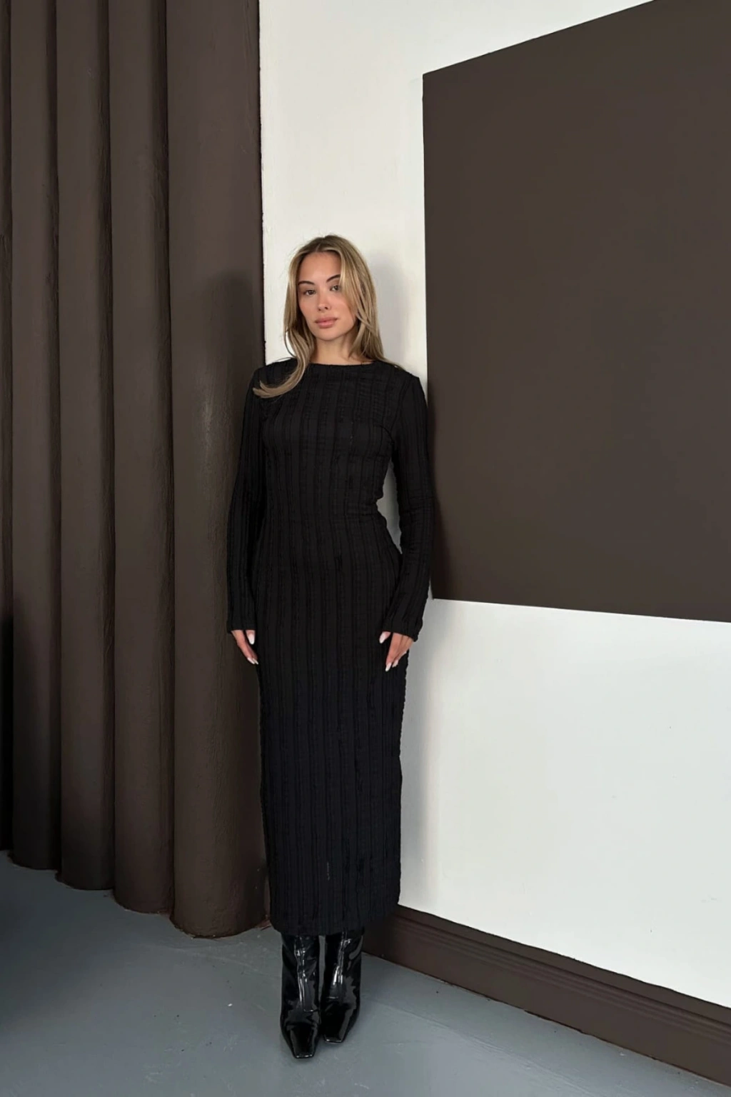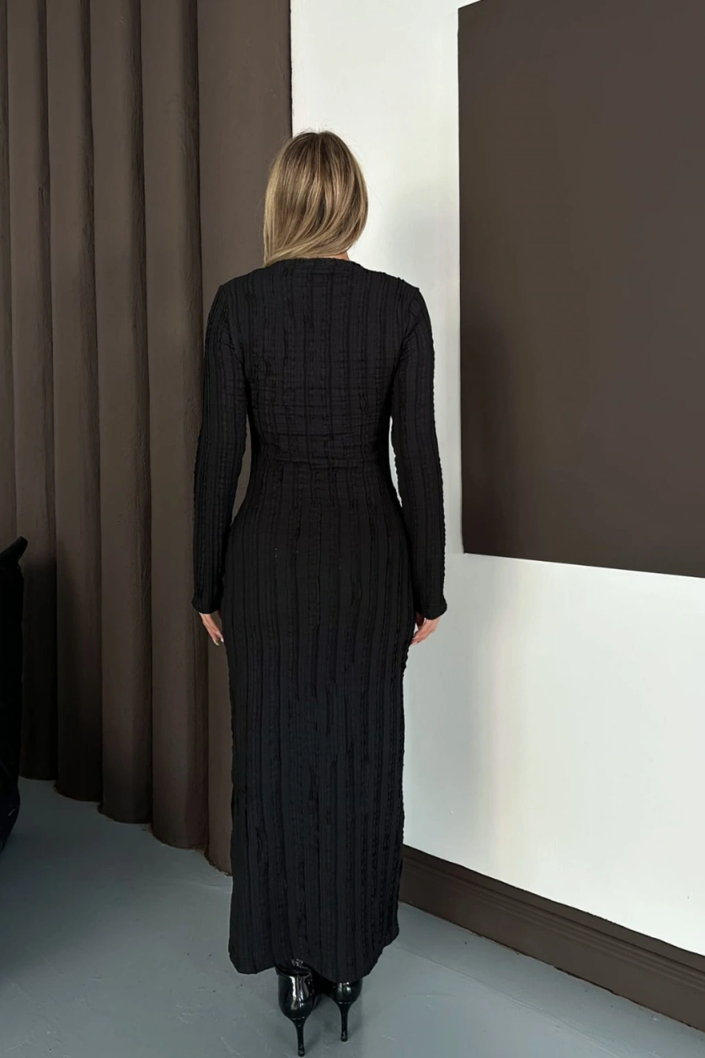 - Uzun kollu tasarımı ile mevsim geçişlerinde ve serin havalarda konforlu bir kullanım sunar.; - Düz kesimi sayesinde rahat bir oturuş sağlar ve günlük kullanım için idealdir.; - Casual tarzıyla her ortamda şıklığınızı korumanızı sağlar; arkadaş buluşmalarından günlük aktivitelere kadar.; - Yırtmaç detayı ile feminen ve modern bir görünüm kazandırırken, hareket özgürlüğünüzü kısıtlamaz.; - Bisiklet yaka tasarımı, sade ve şık bir boyun hattı sunarak zarif bir duruş sergiler.; - Tüm sezonlarda rahatlıkla tercih edebileceğiniz bu elbise, gardırobunuzun vazgeçilmez parçası olacak.; - Yırtmaç detayının eklenmesiyle elbisenin silueti daha dinamik ve çekici hale gelir.; - Slim kalıbı sayesinde vücut hatlarınıza uyum sağlayarak şık bir görünüm sunar.; - Dokuma kumaşı dayanıklılığı arttırarak uzun süreli kullanım vaad eder.; - Türk menşeli olmasıyla yerel üretimi desteklerken kaliteli işçilikten de faydalanabilirsiniz.; - Yetişkinler için tasarlanmış bu