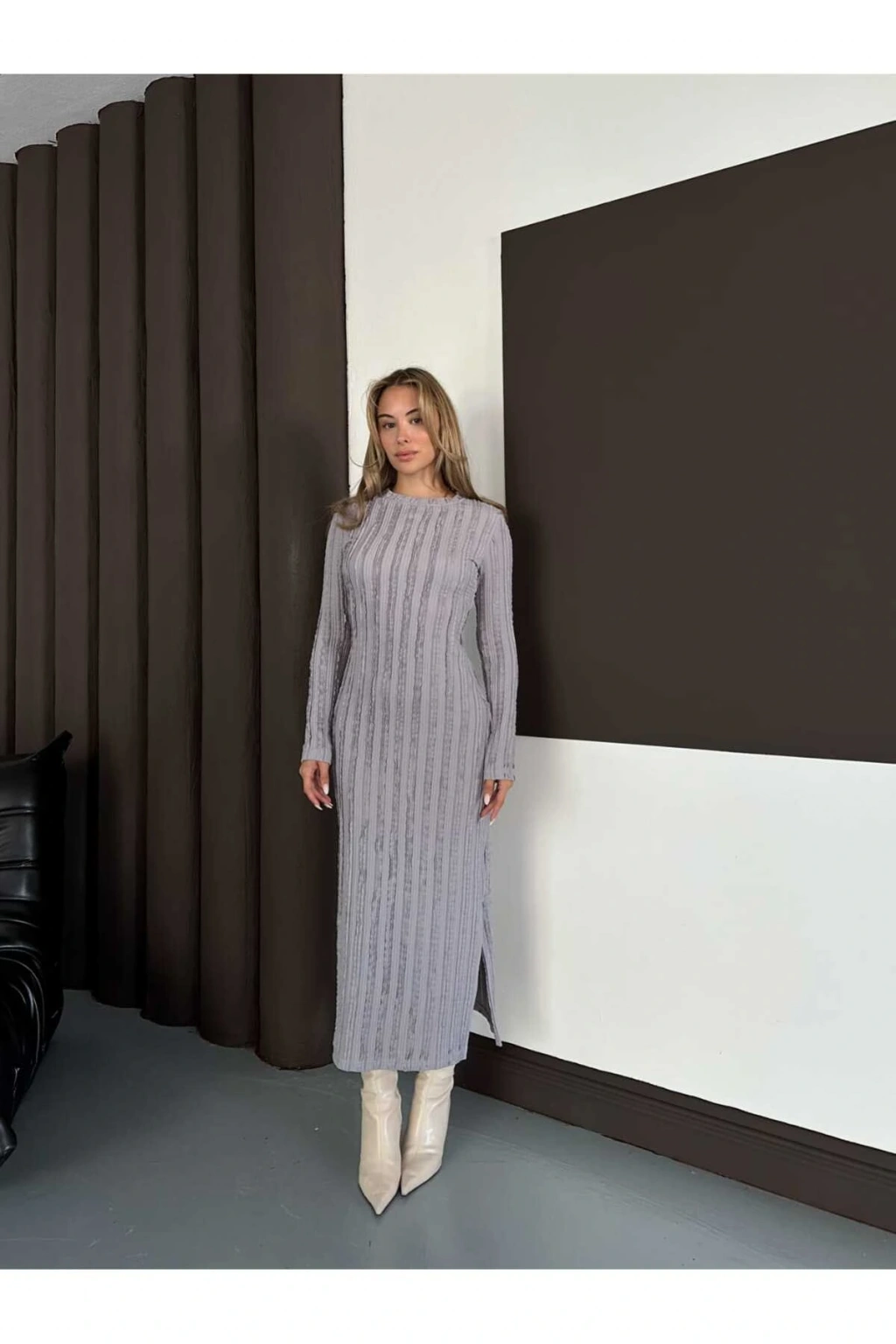 - Uzun kollu tasarımı ile mevsim geçişlerinde ve serin havalarda konforlu bir kullanım sunar.; - Düz kesimi sayesinde rahat bir oturuş sağlar ve günlük kullanım için idealdir.; - Casual tarzıyla her ortamda şıklığınızı korumanızı sağlar; arkadaş buluşmalarından günlük aktivitelere kadar.; - Yırtmaç detayı ile feminen ve modern bir görünüm kazandırırken, hareket özgürlüğünüzü kısıtlamaz.; - Bisiklet yaka tasarımı, sade ve şık bir boyun hattı sunarak zarif bir duruş sergiler.; - Tüm sezonlarda rahatlıkla tercih edebileceğiniz bu elbise, gardırobunuzun vazgeçilmez parçası olacak.; - Yırtmaç detayının eklenmesiyle elbisenin silueti daha dinamik ve çekici hale gelir.; - Slim kalıbı sayesinde vücut hatlarınıza uyum sağlayarak şık bir görünüm sunar.; - Dokuma kumaşı dayanıklılığı arttırarak uzun süreli kullanım vaad eder.; - Türk menşeli olmasıyla yerel üretimi desteklerken kaliteli işçilikten de faydalanabilirsiniz.; - Yetişkinler için tasarlanmış bu